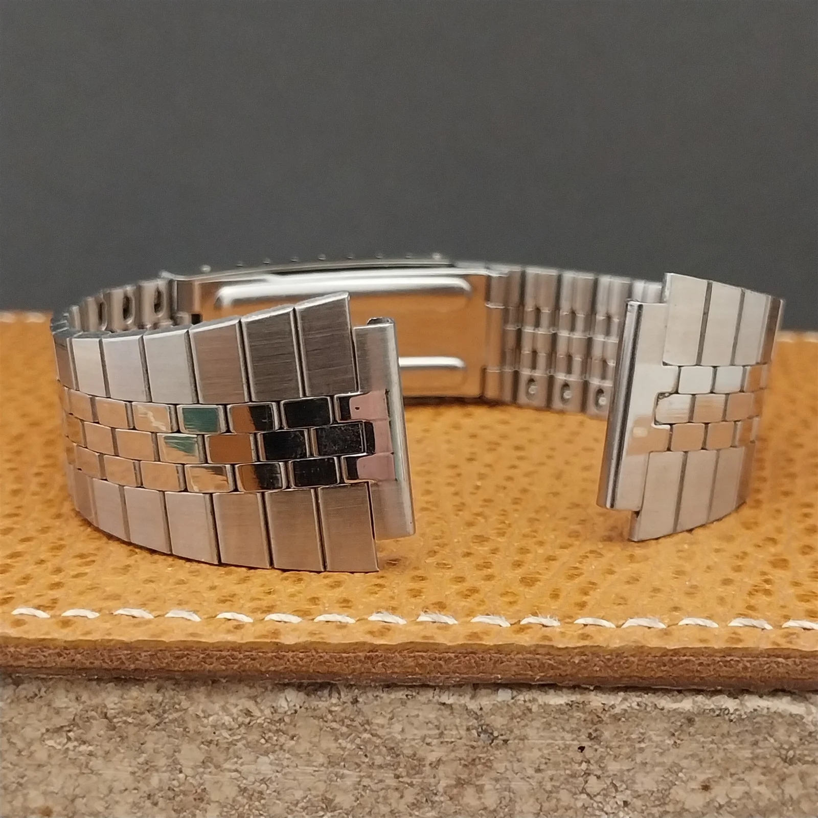 ·NOS unused 1970s-1980s old-stock brushed & polished stainless steel deployment watch bracelet.