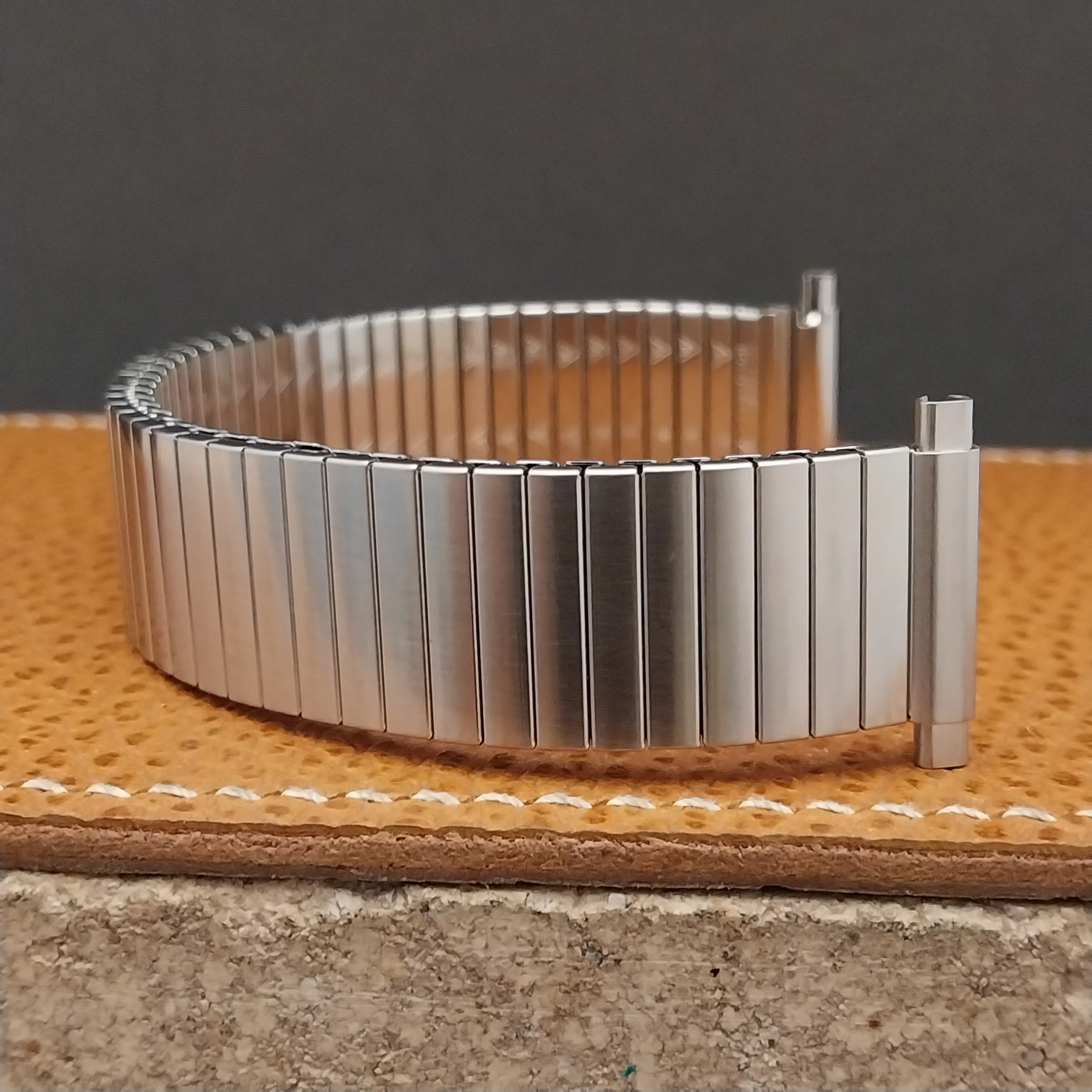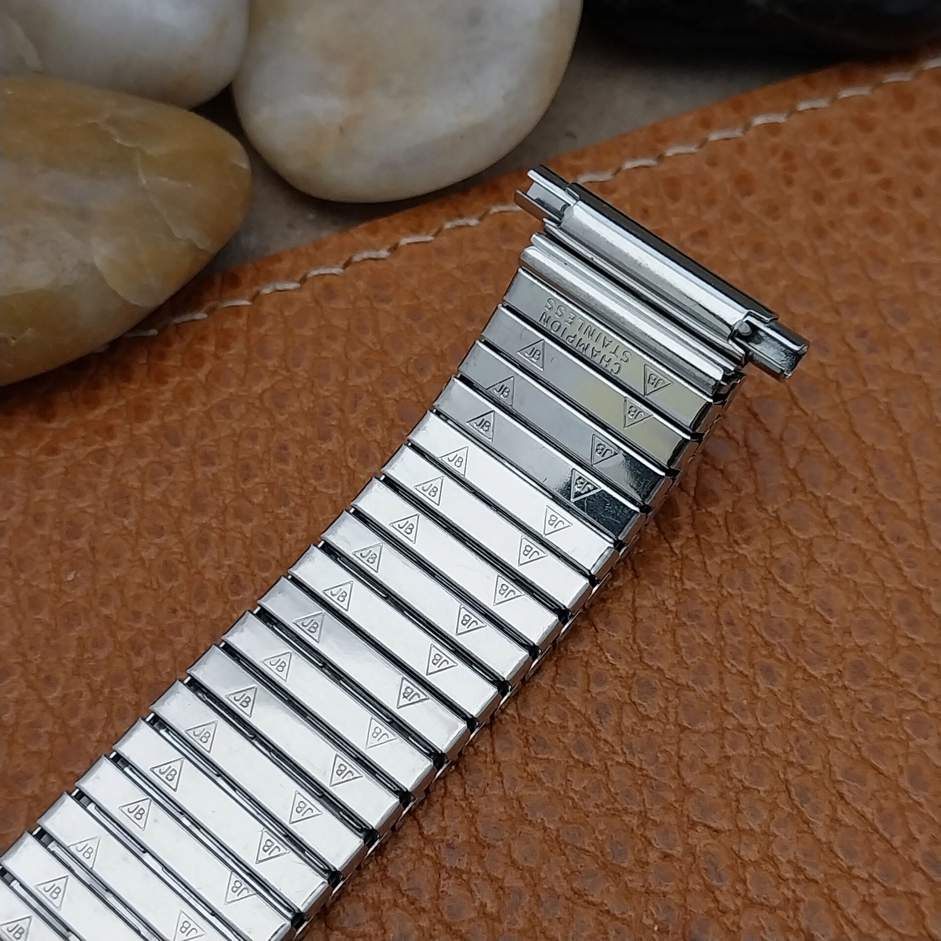 ·NOS unused 1970s old stock brushed stainless steel JB Champion expansion watch bracelet.