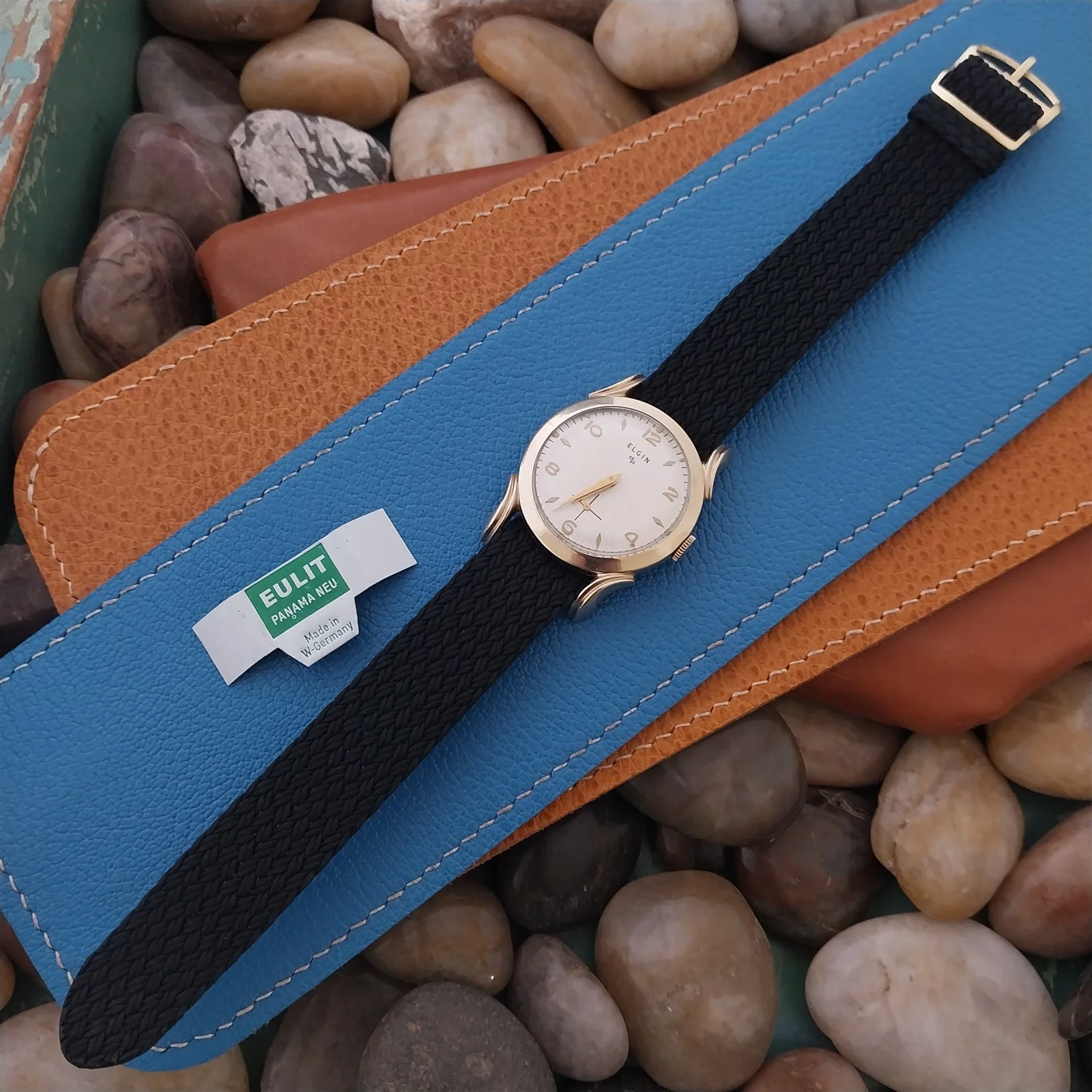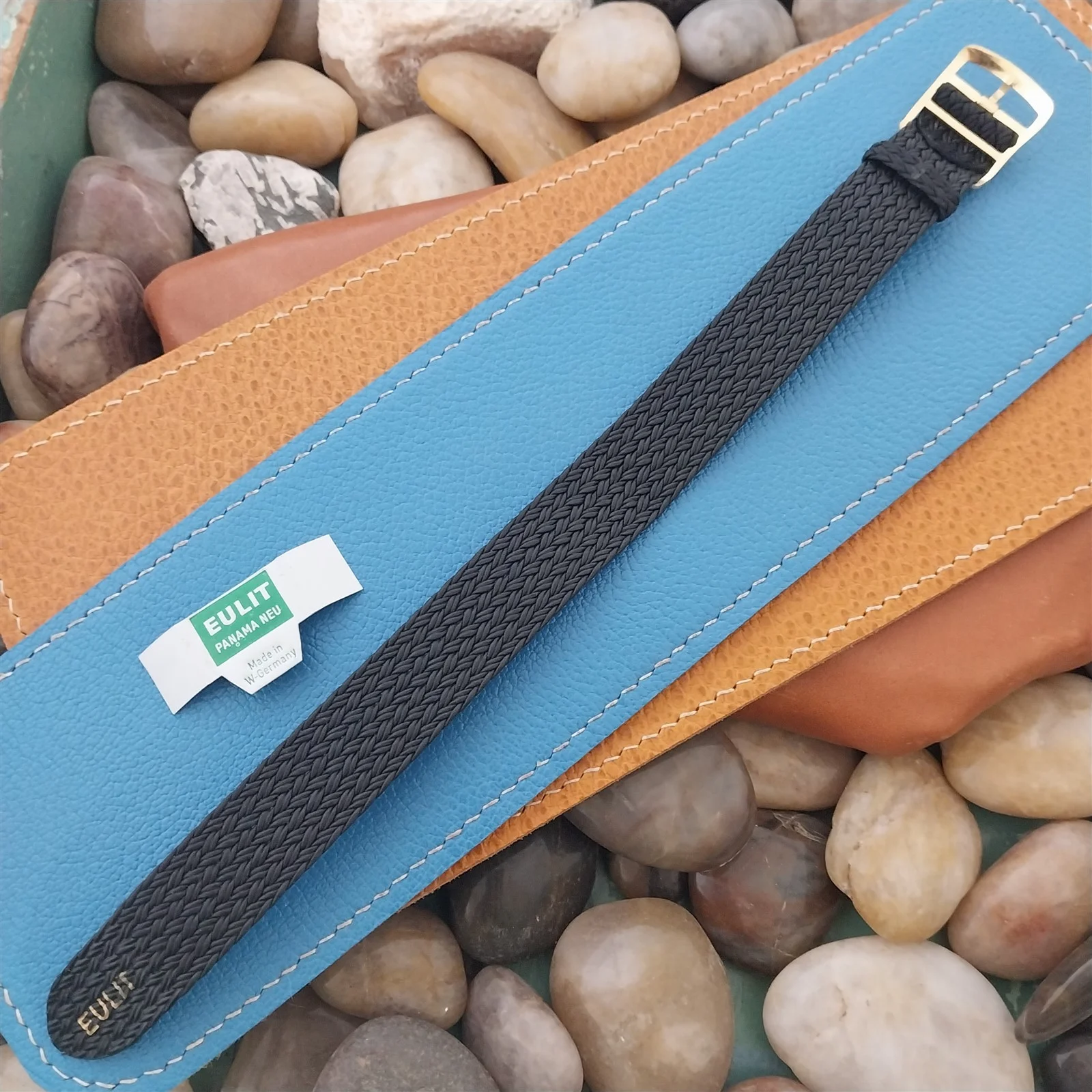 ·NOS unused 1960s-1970s old-stock Eulit Panama Neu black Perlon double-weave single pass watch strap.