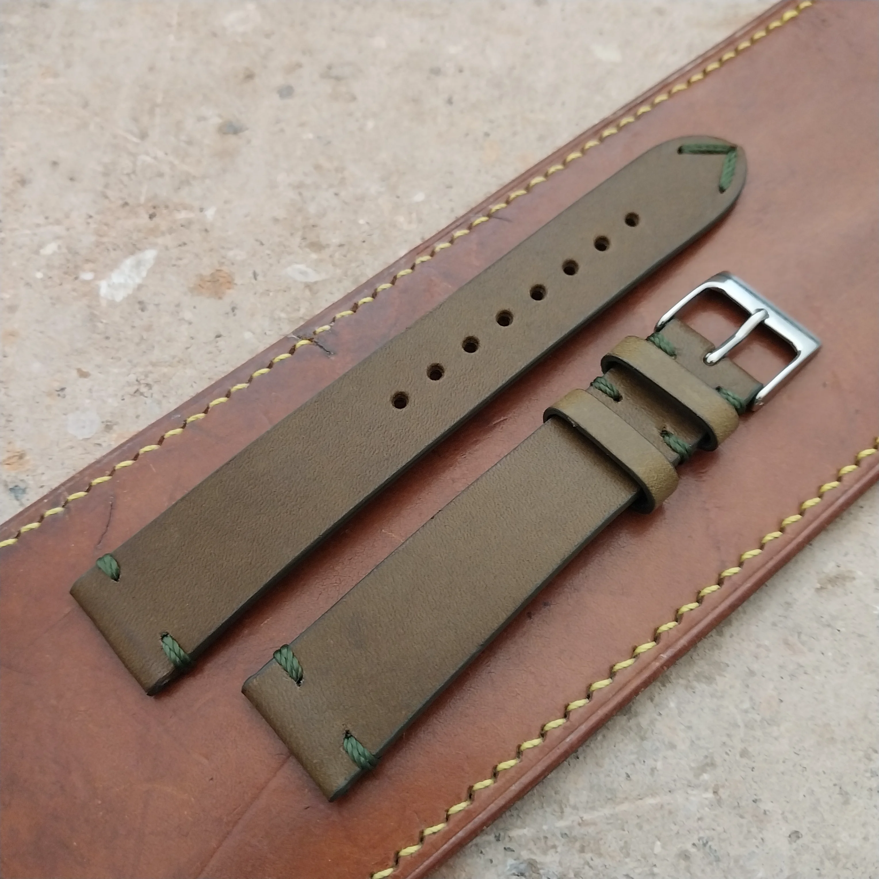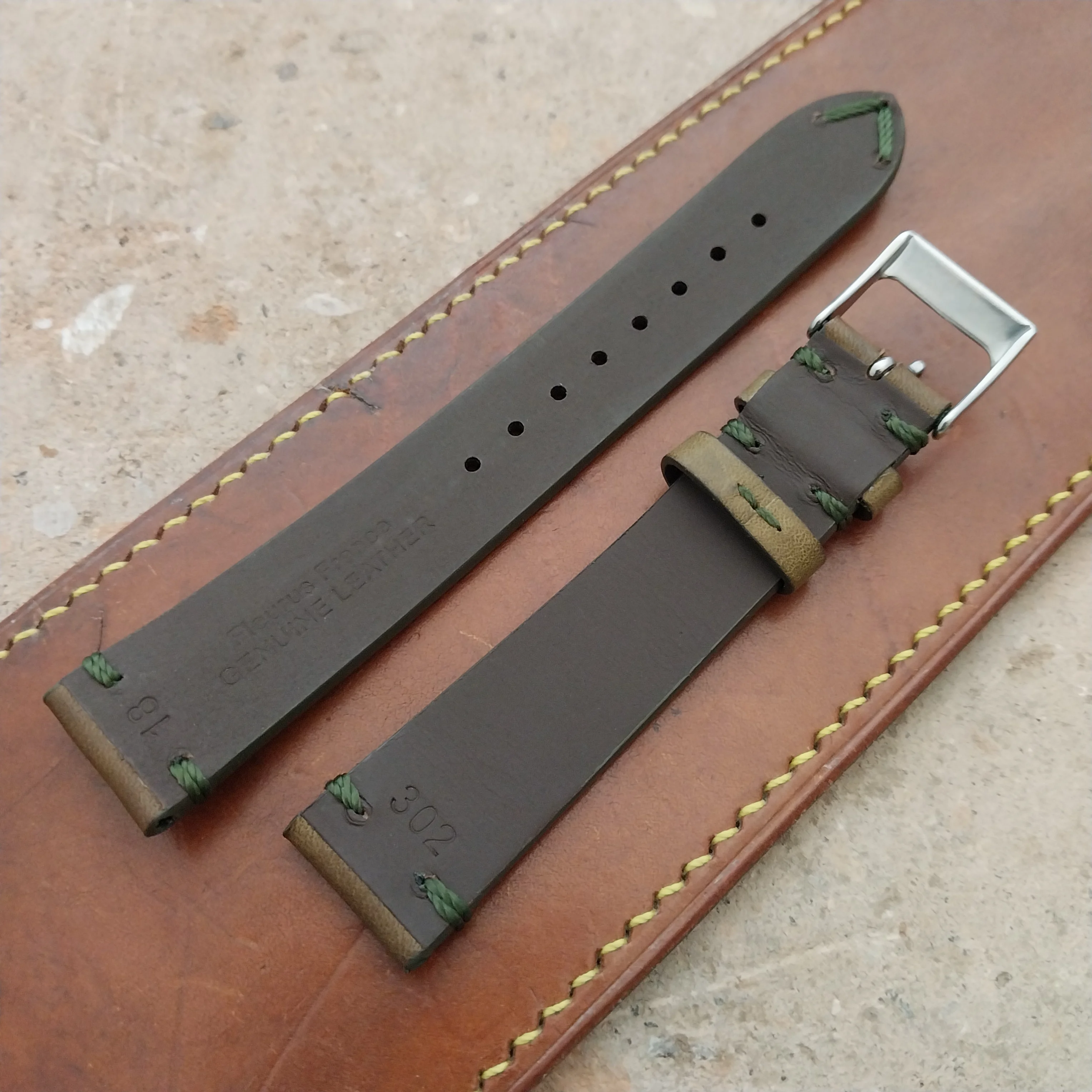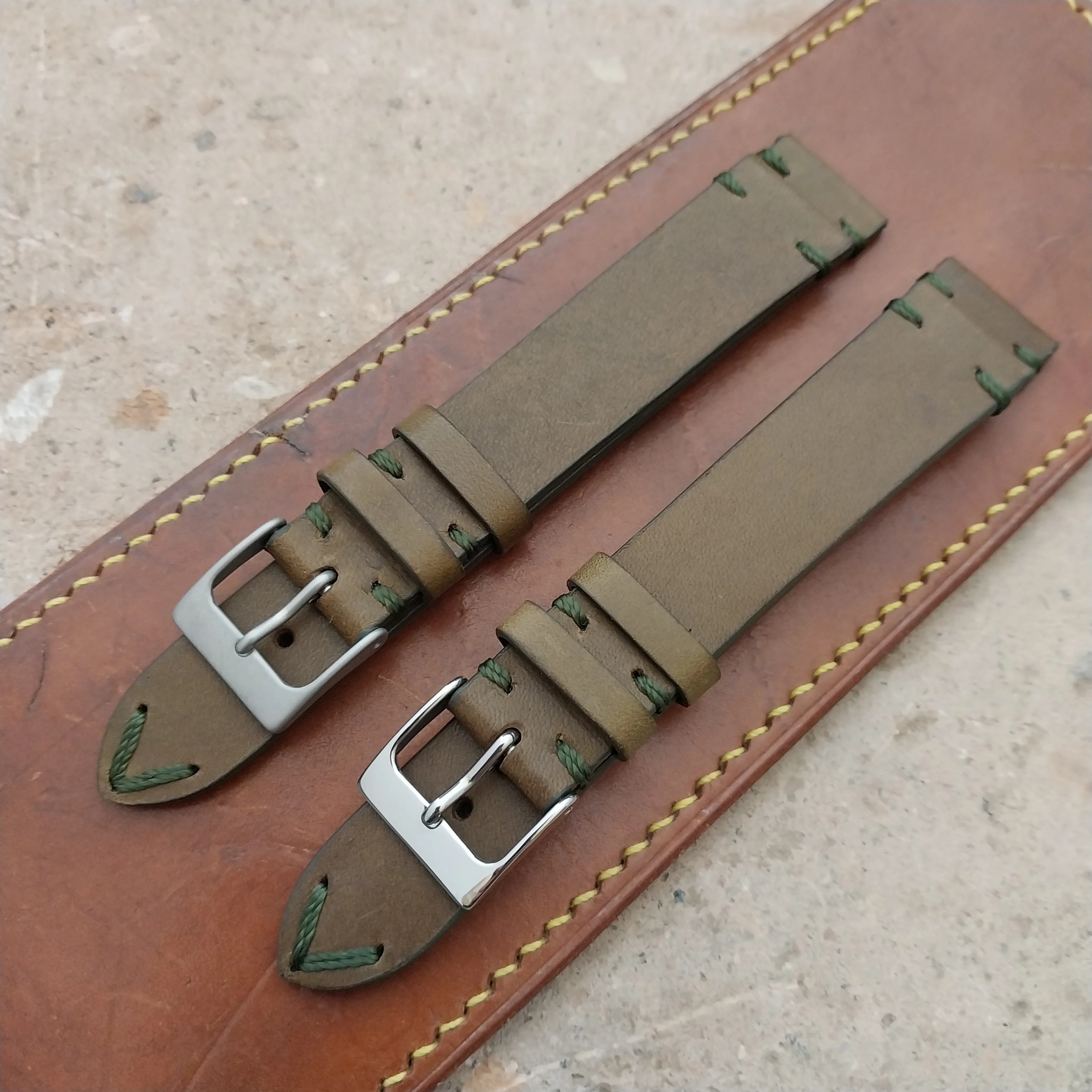 ·Fleurus Army Green "Vintage" Leather Two-Stitch Straps