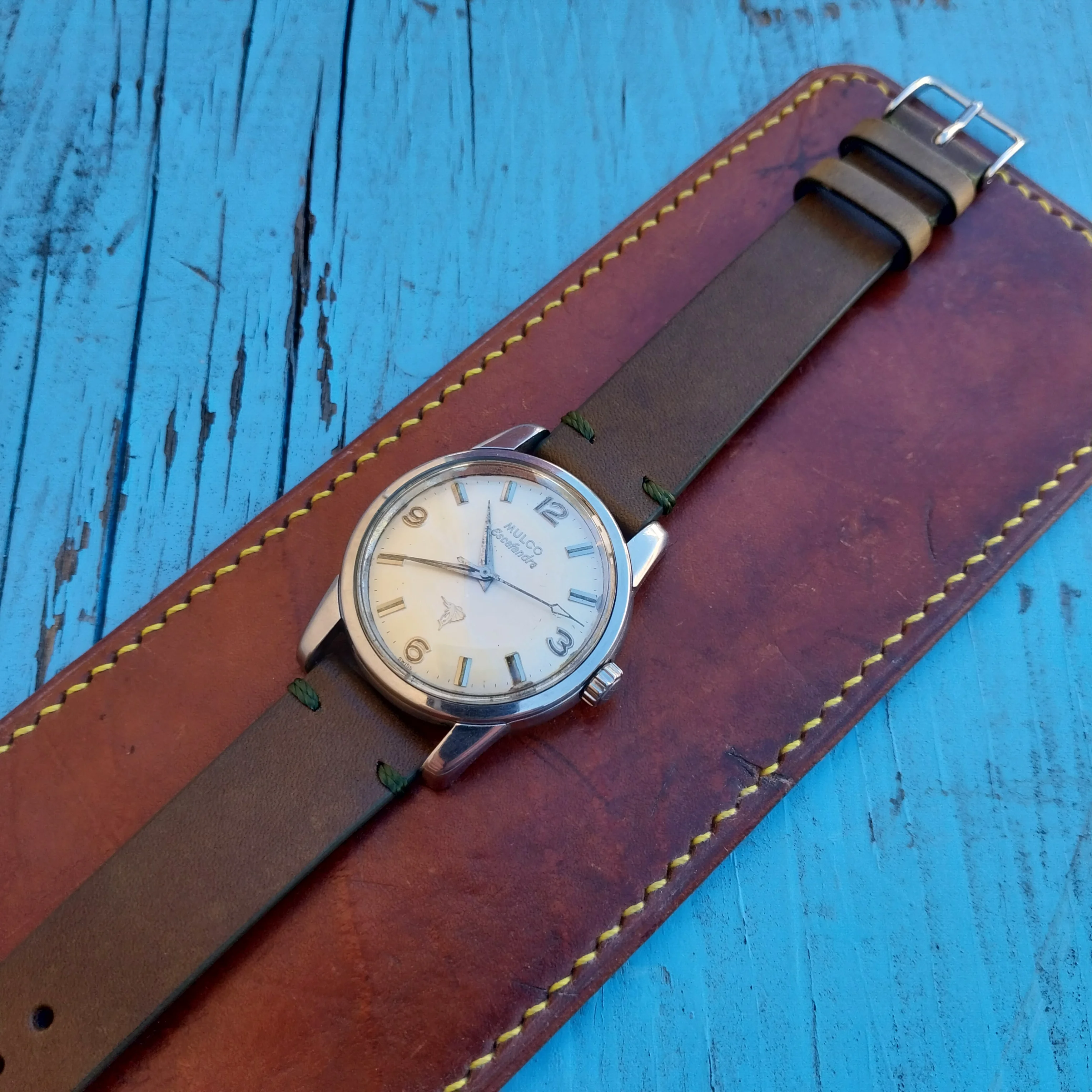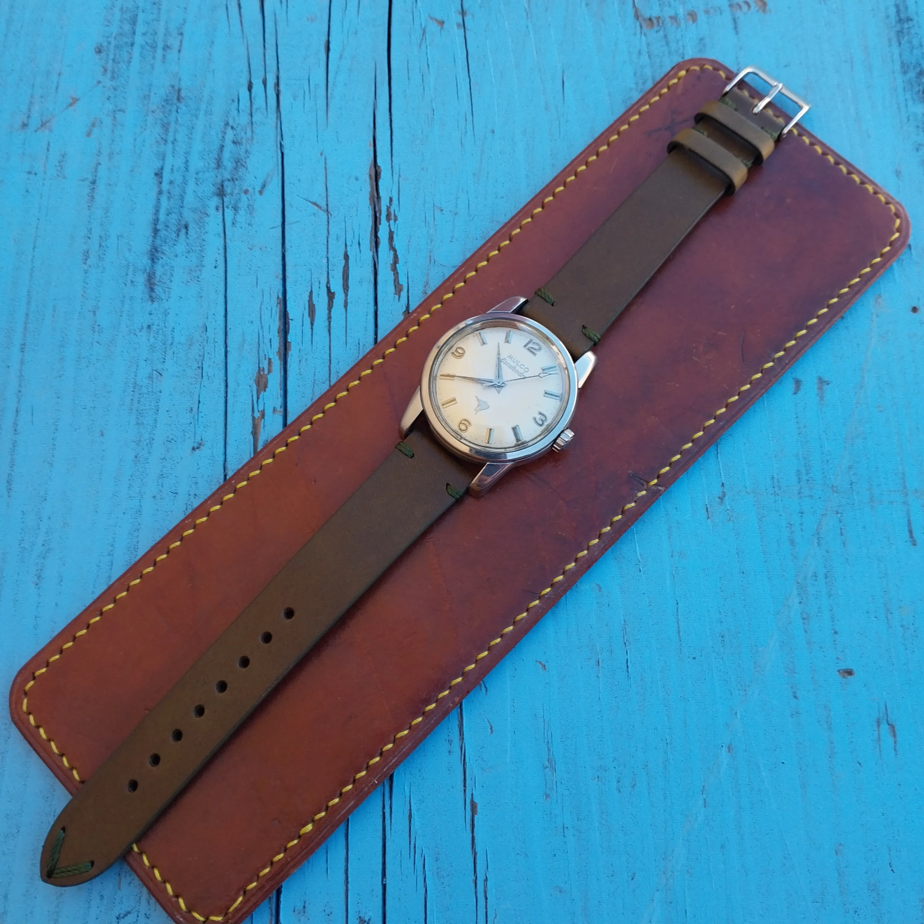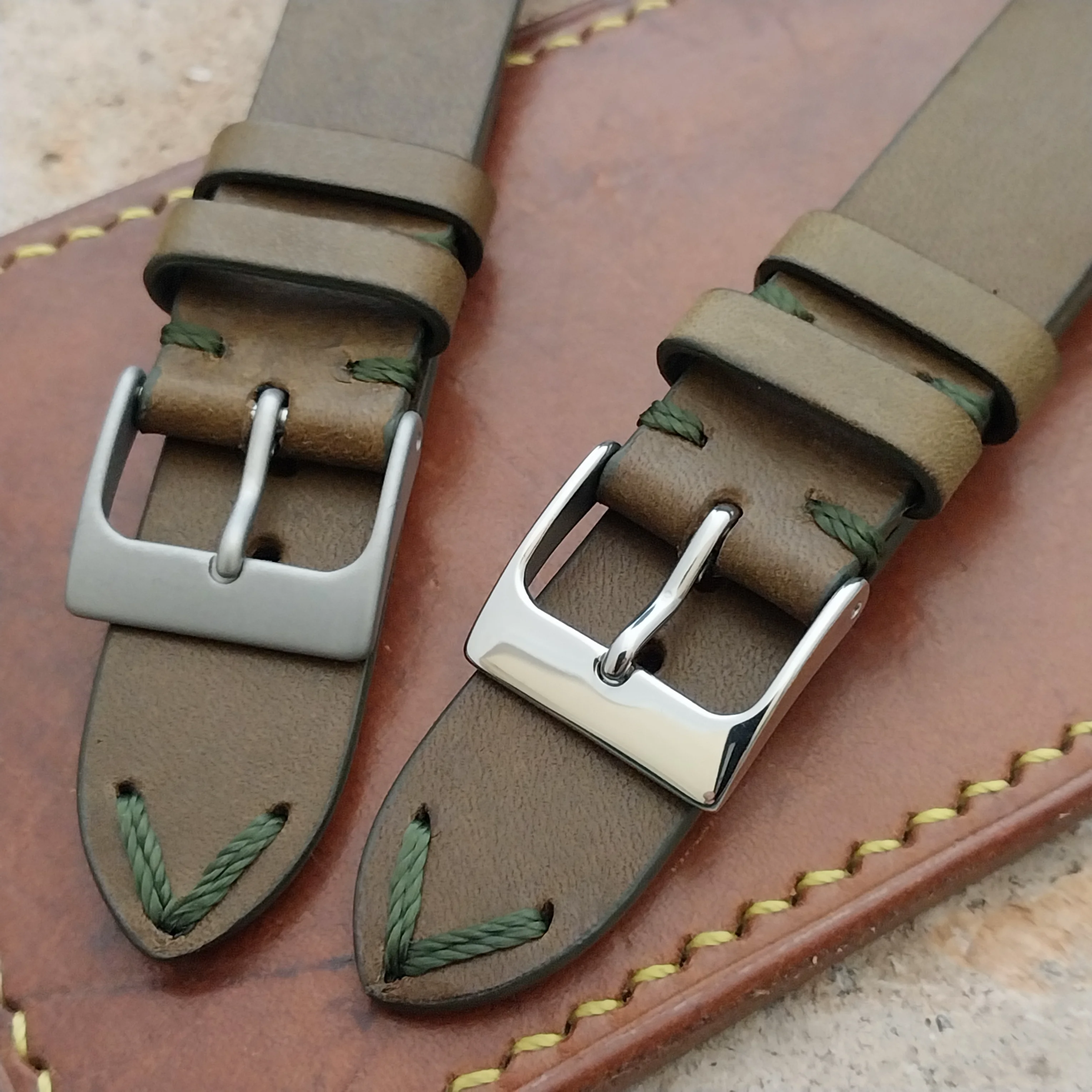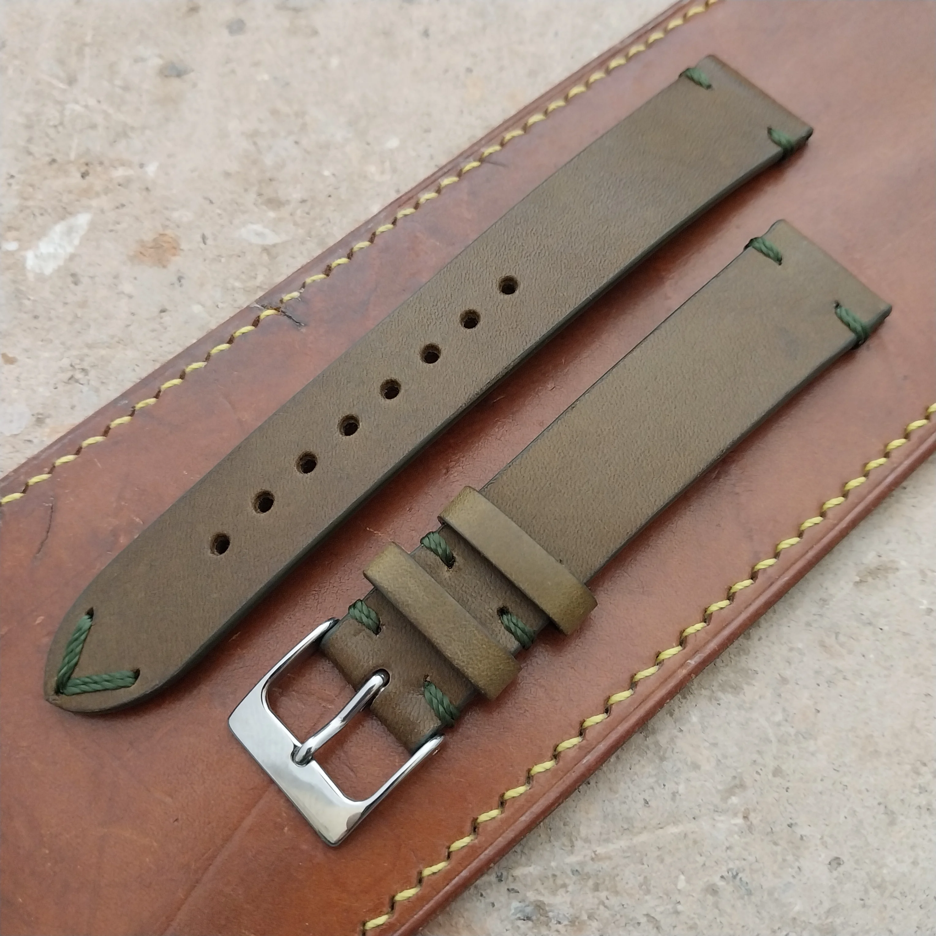 ·Fleurus Army Green "Vintage" Leather Two-Stitch Straps