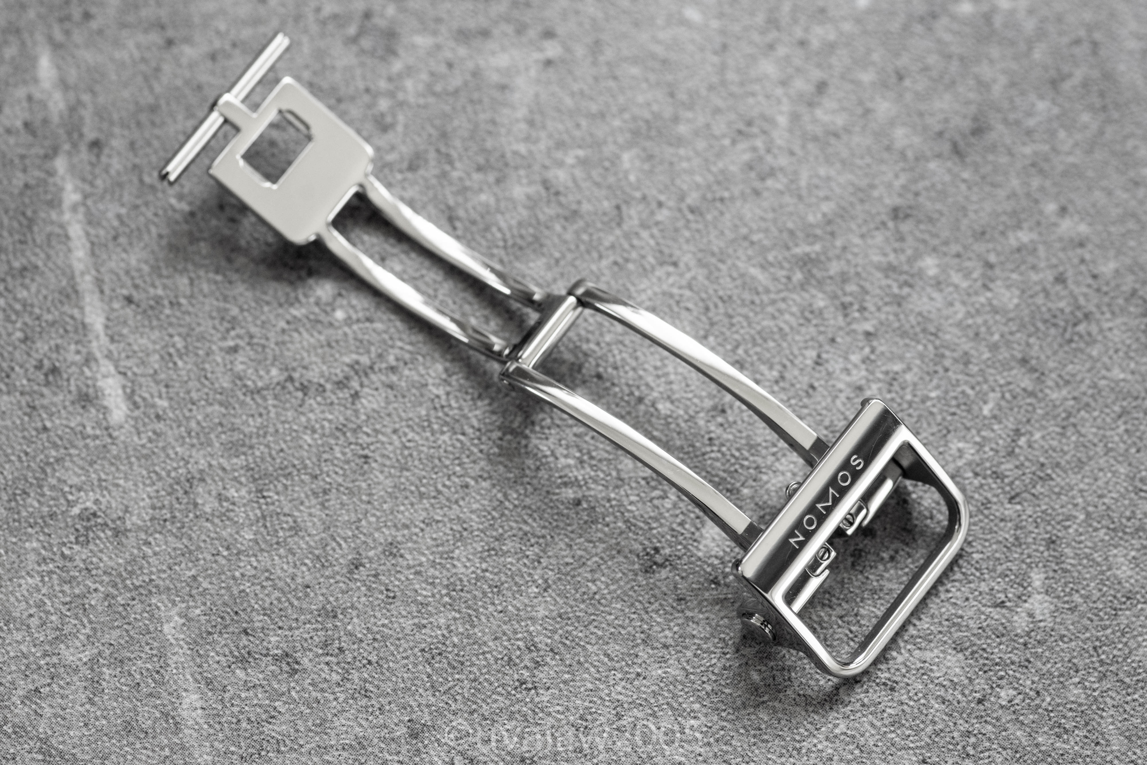 ·For sale is a gently worn 18mm Nomos deployant clasp. Designed to fit 19/20mm Nomos straps or other straps that taper to 18mm at the buckle. Read more here. Last photo borrowed from Nomos for illustrative purposes.