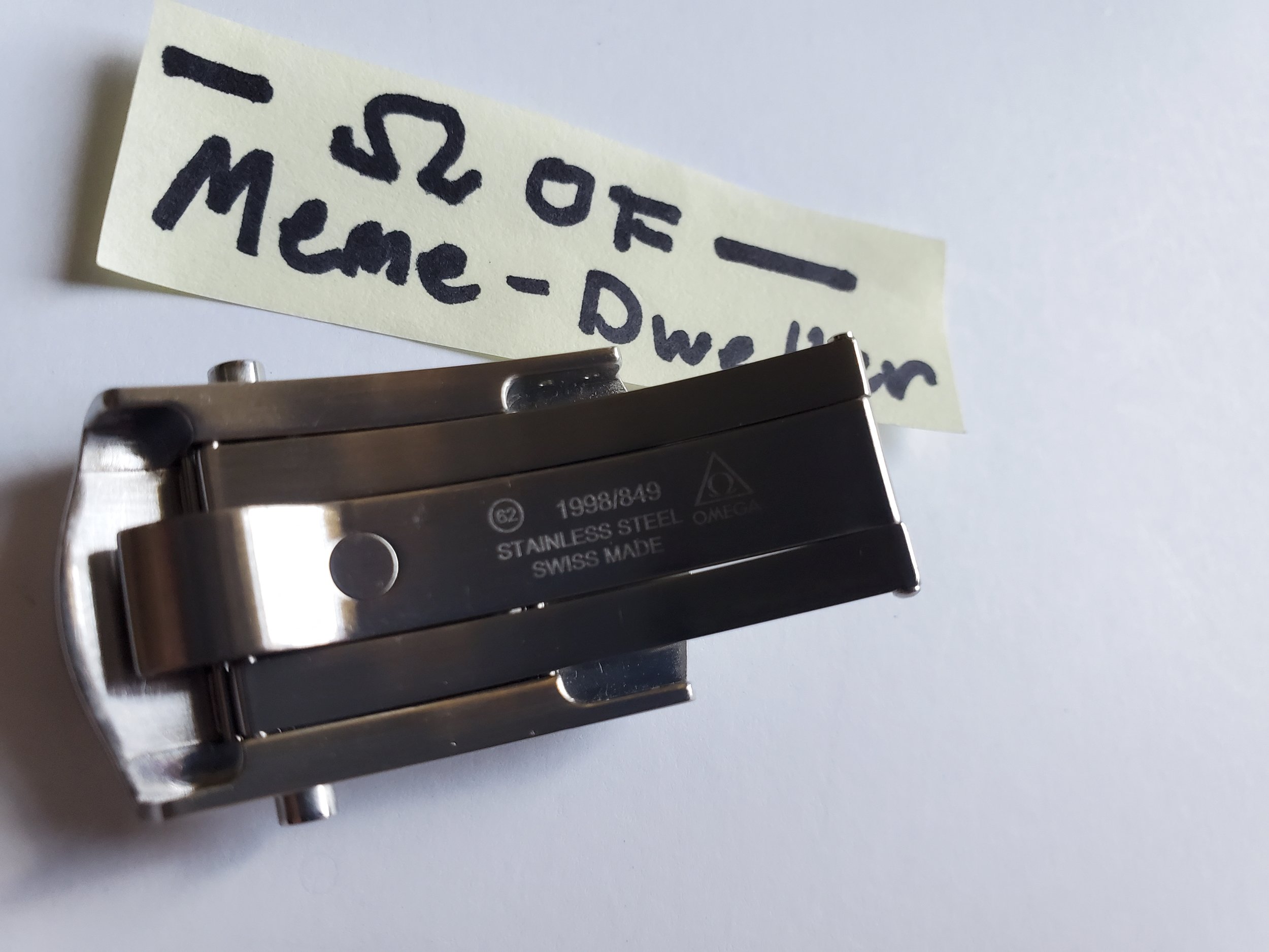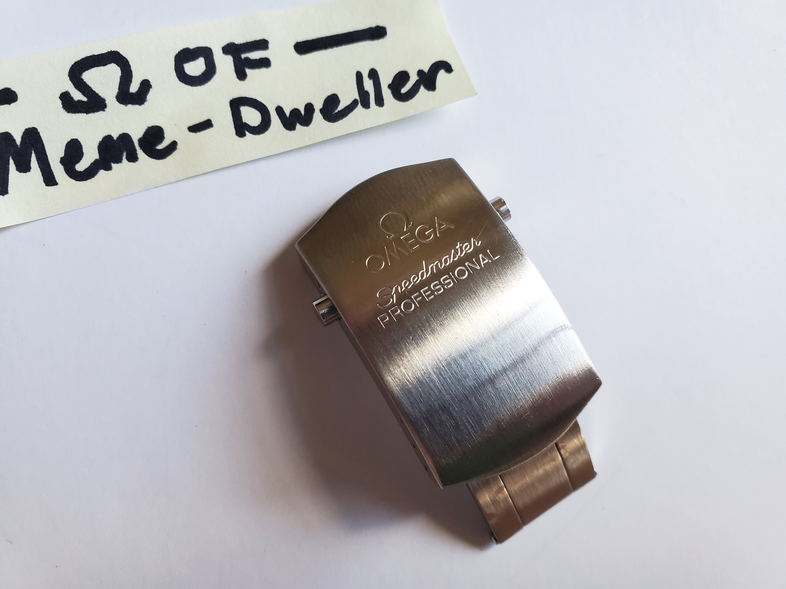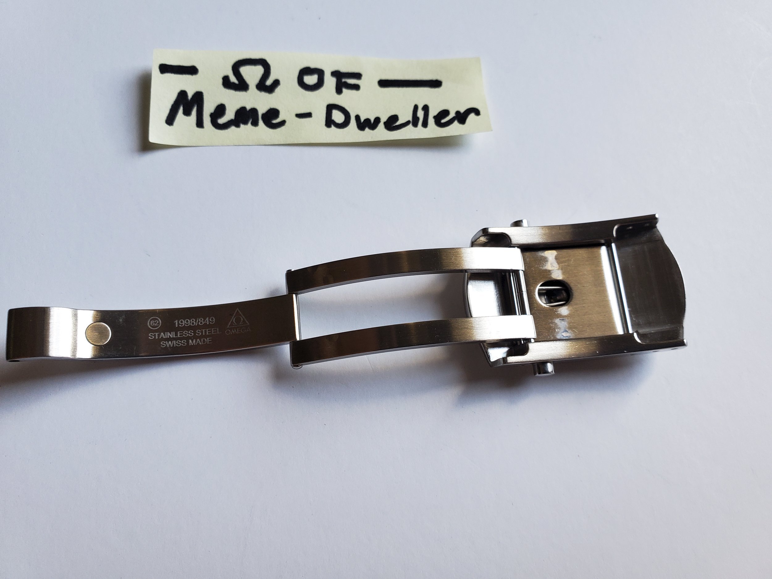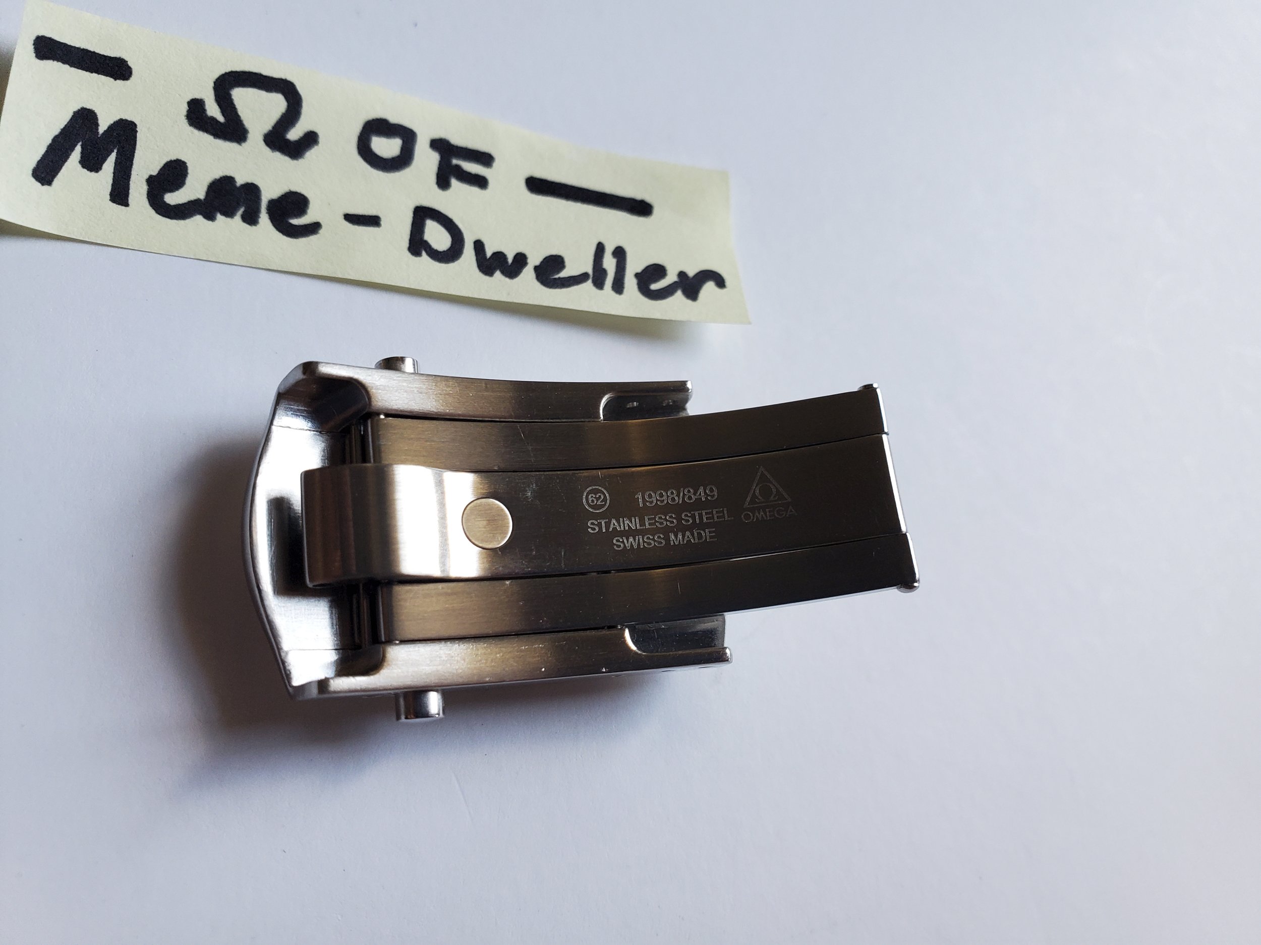 ·Up for sale is a pre-owned 18mm push button folding clasp for the 20mm Omega Speedmaster Professional 1998 bracelet. Fits 1998/849 and 1998/840. In great condition with minor scratches that my camera has a hard time picking up. Please ensure compatibility with your watch before purchase.