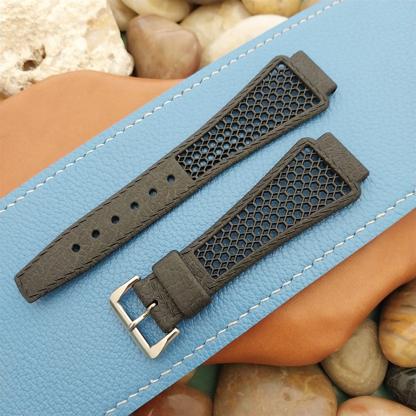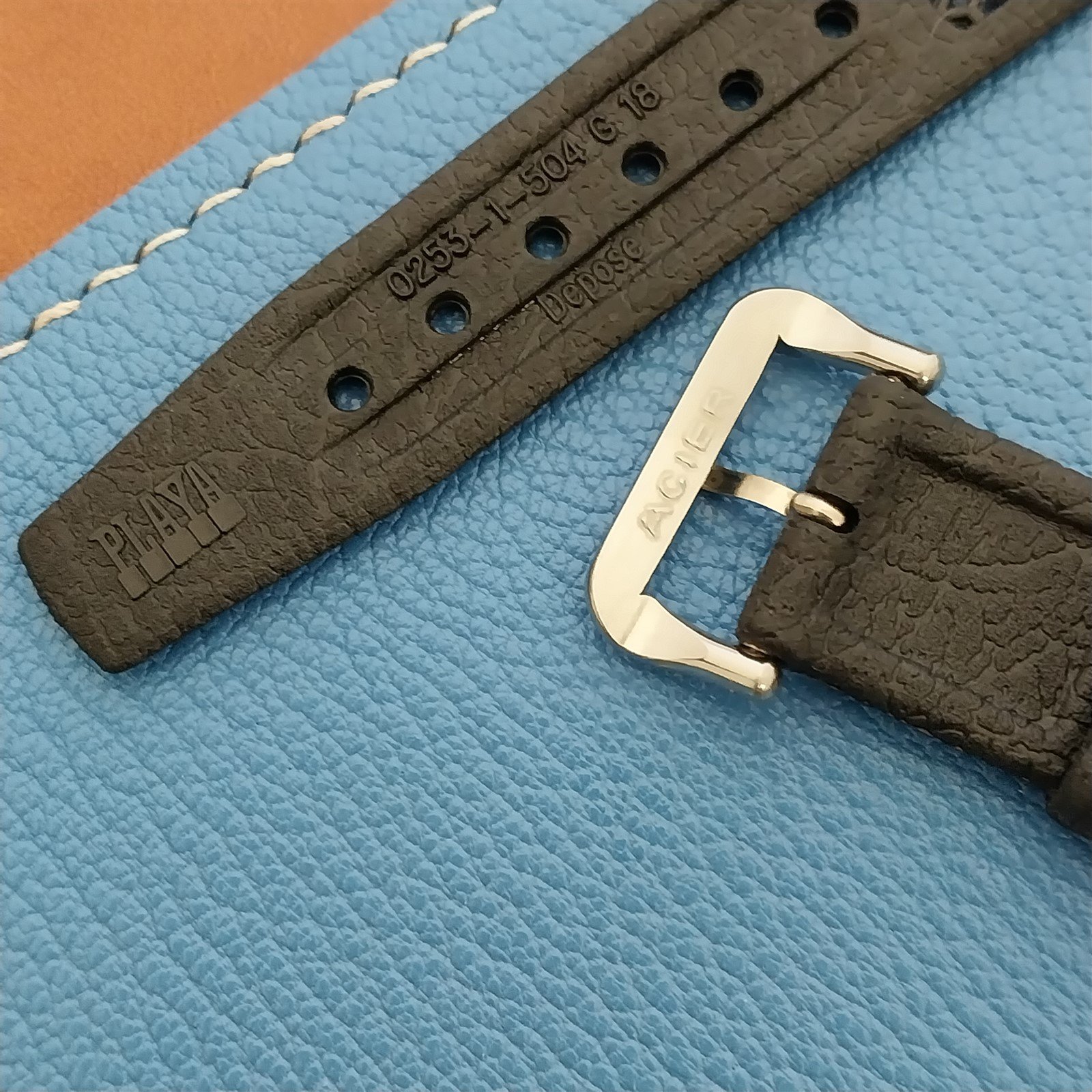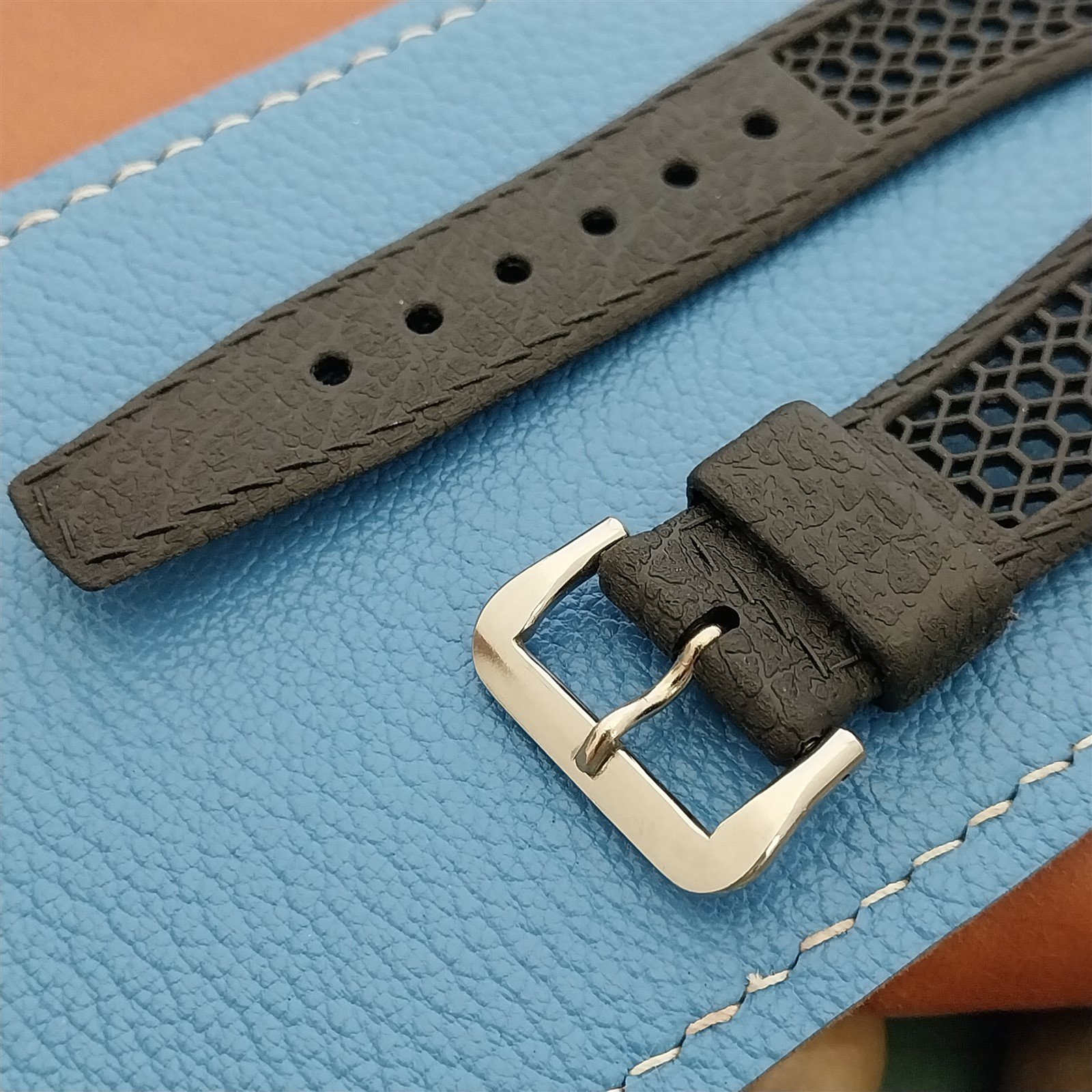 ·NOS unused 1960s-1970s old-stock Golay and Guignard Playa ventilated black synthetic diver watch strap with stainless steel buckle.