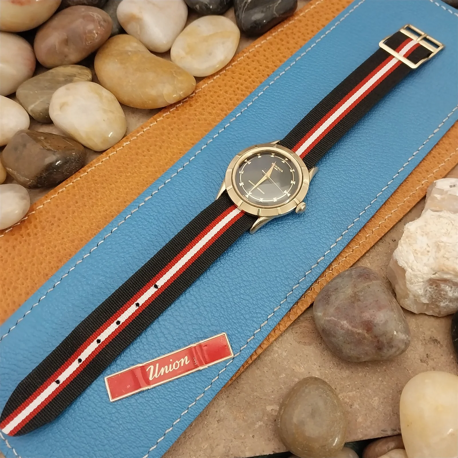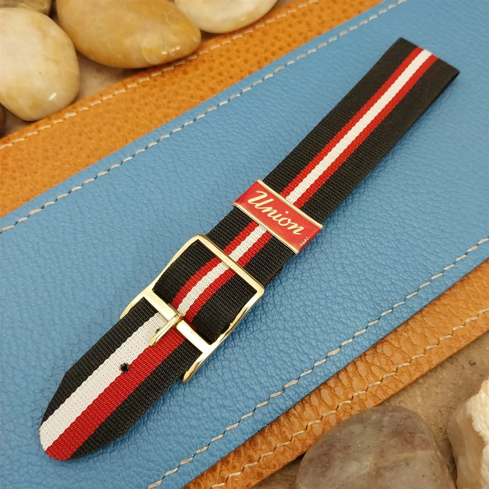 ·NOS 1960s-1970s German reversible black white & red 1-piece Perlon field watch strap.