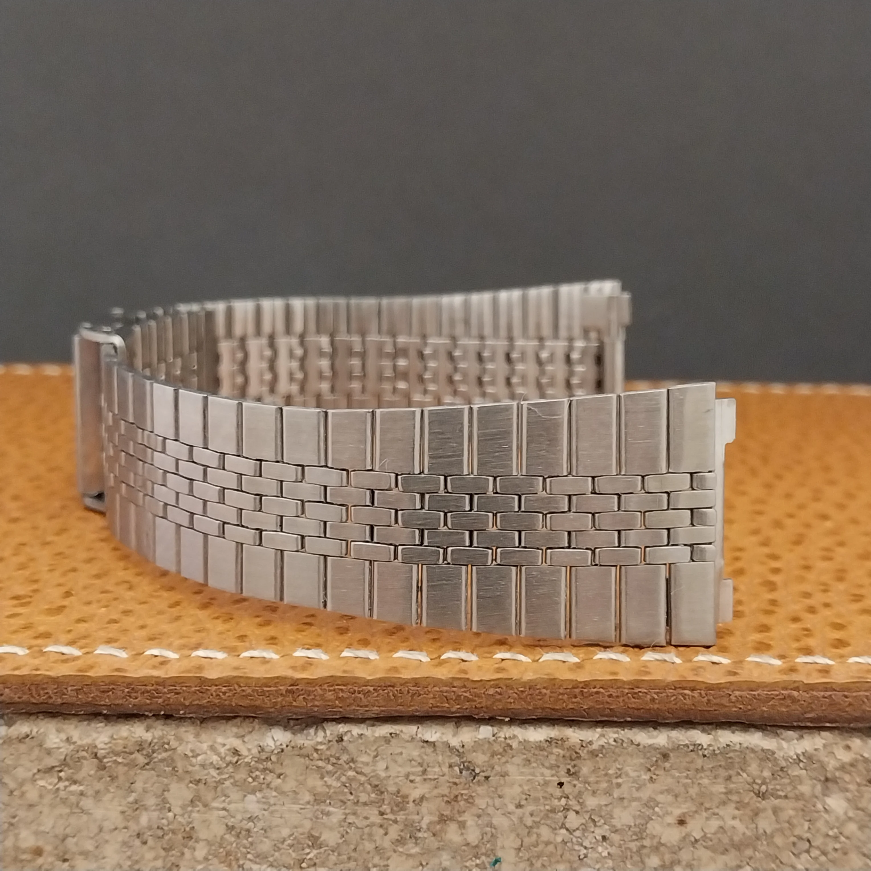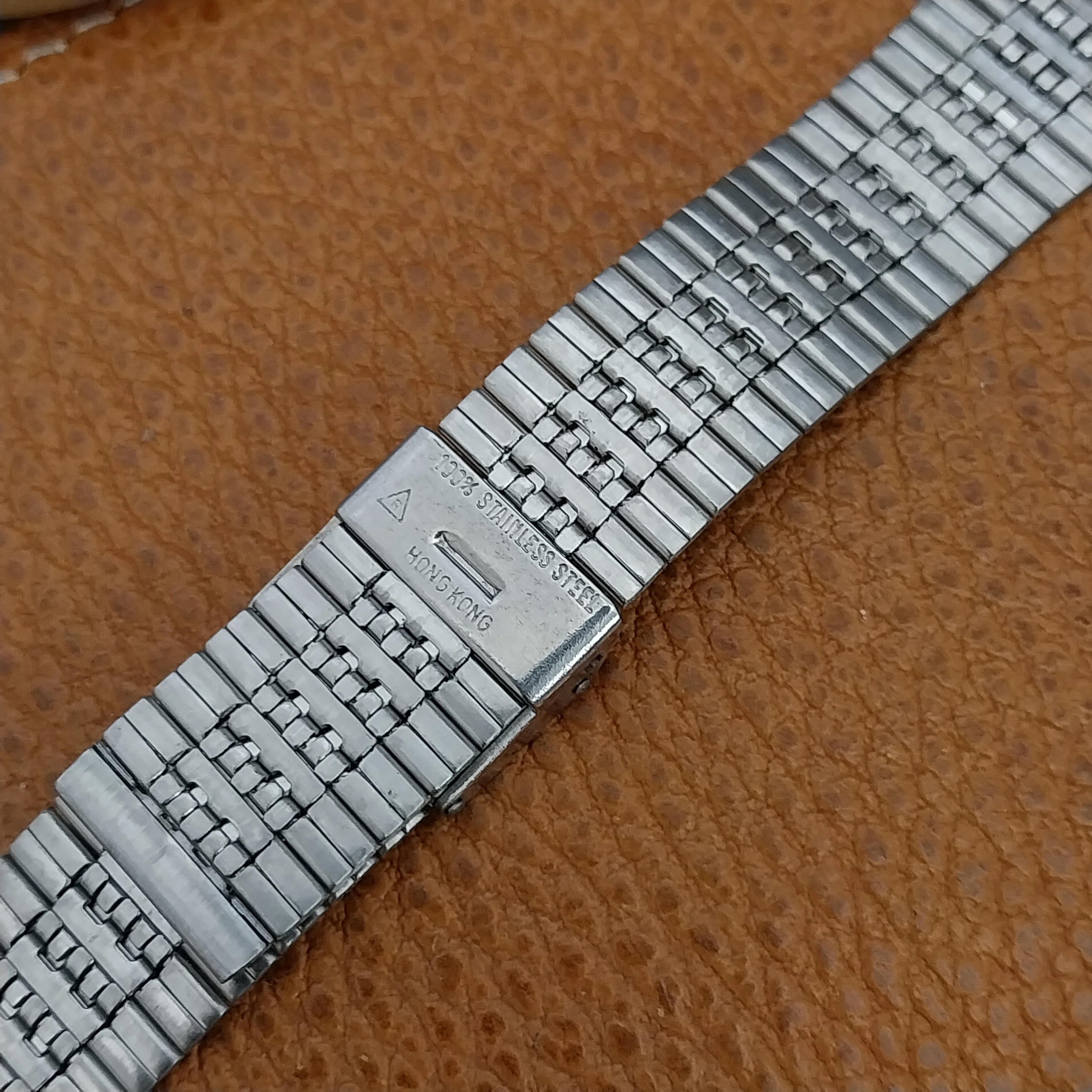 NOS unused old-stock 1970s-1980s brushed stainless steel 2-piece watch bracelet.