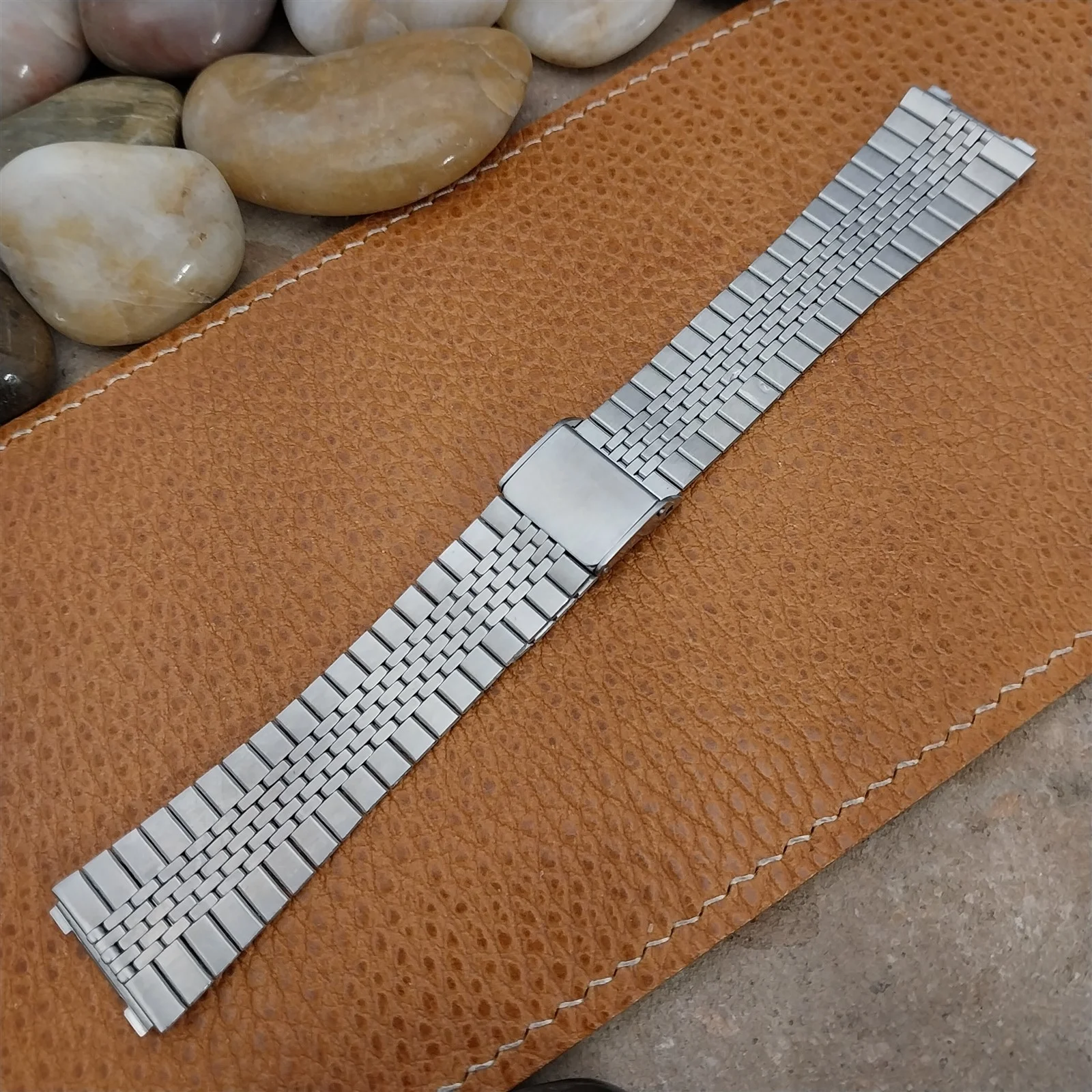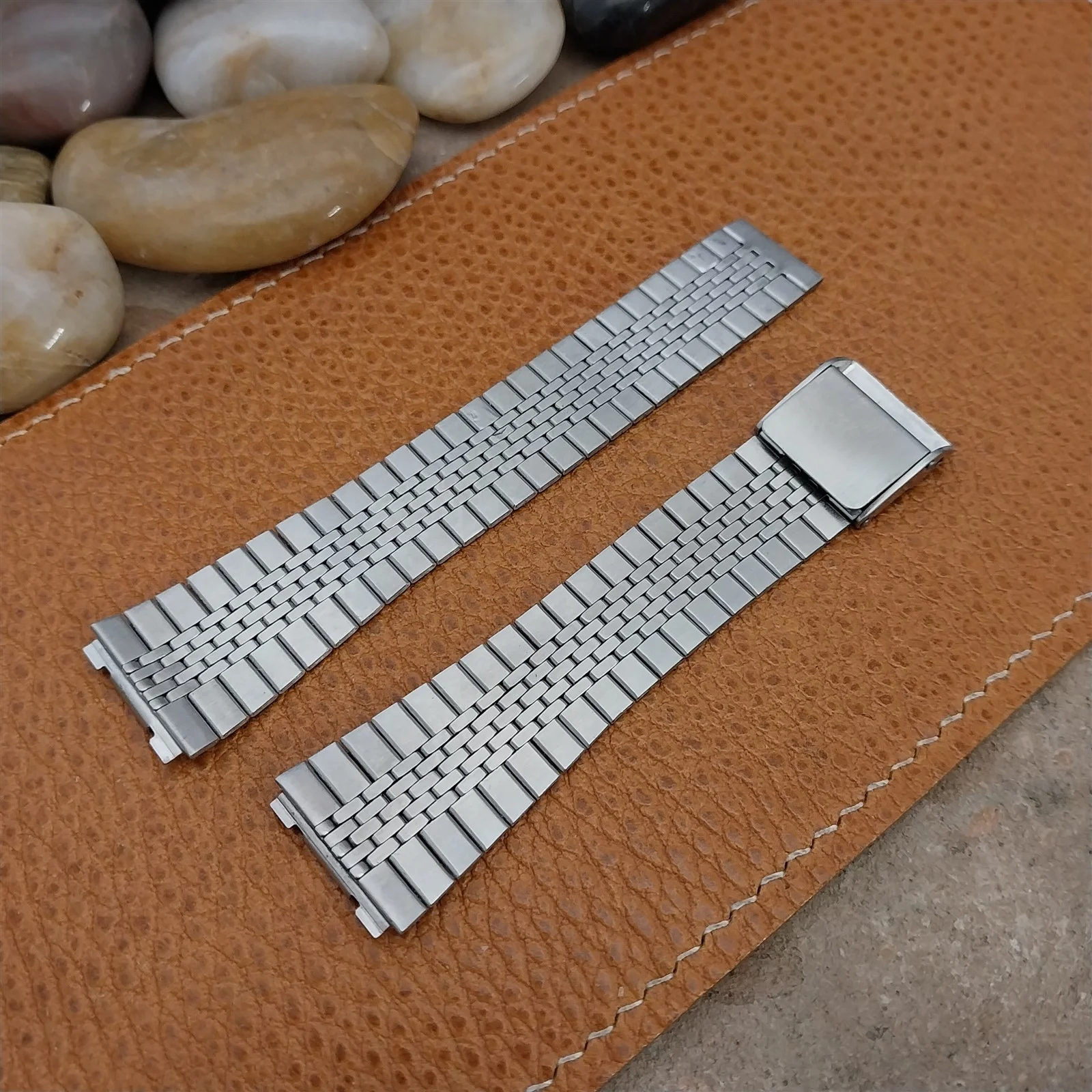 ·NOS unused old-stock 1970s-1980s brushed stainless steel 2-piece watch bracelet.