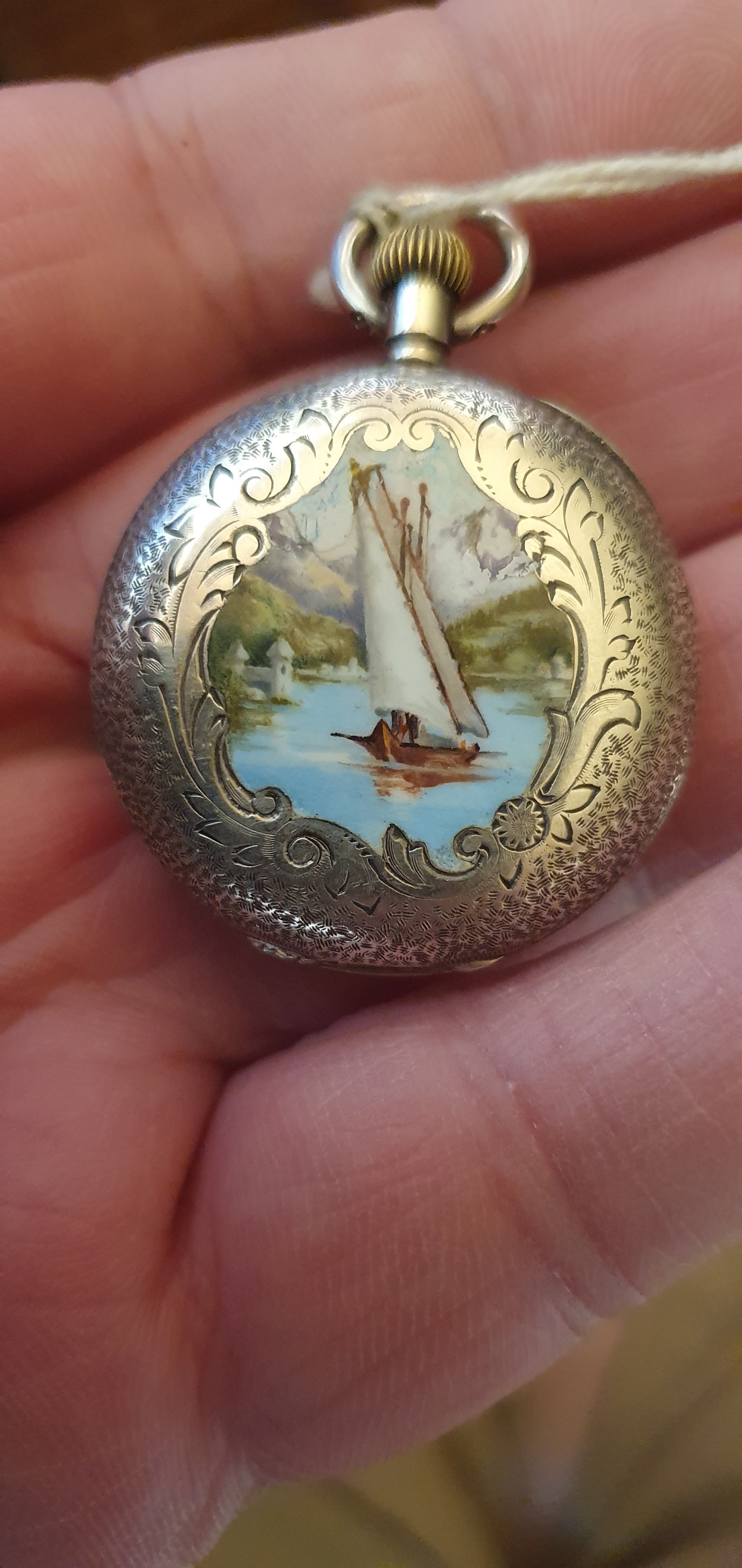 I'm sorting though some watches and I though that if anyone would like to see this, it would be the folks here. A very original Omega fob dating to 1905 with a nicely executed enamel back ... just a footnote, really, but sweet.