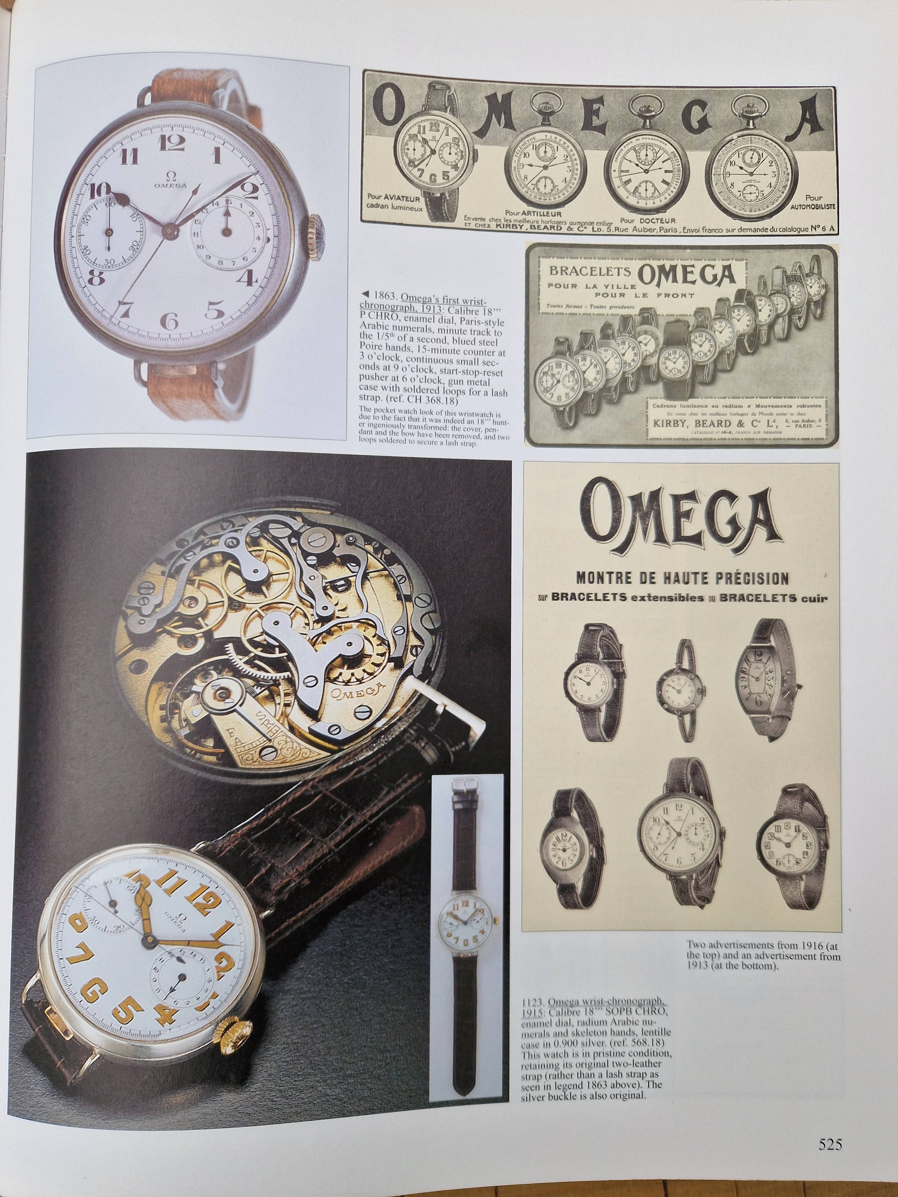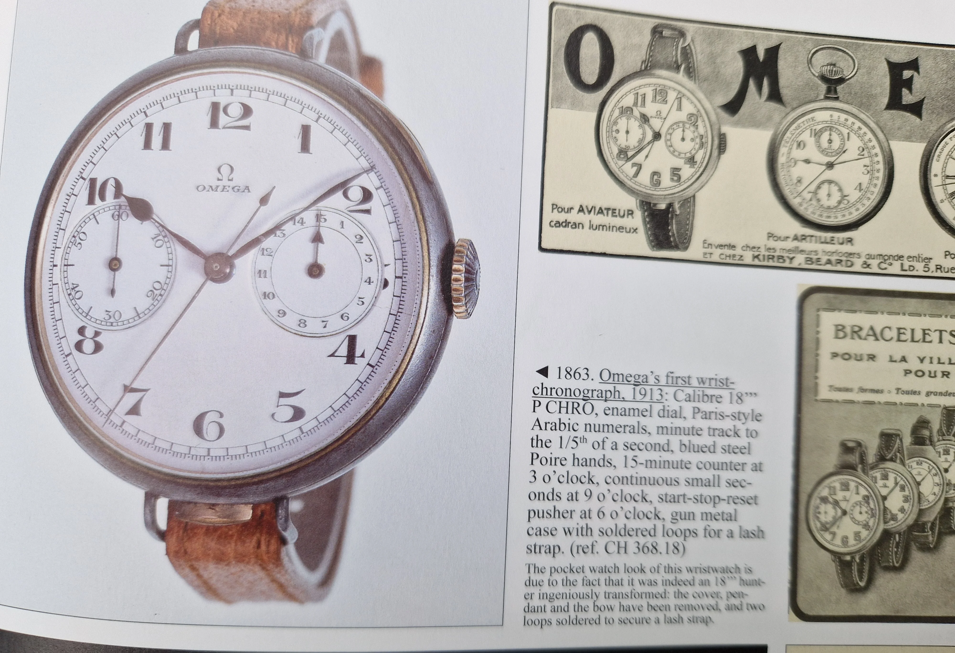 ·I have this 1915 or so Single Button wrist chronograph which i would like confirmation on its identity - inside case back is the Omega mark, 5413821 and depose 9840 - on the dust cover is again 5413821 and below it 22 - one watchmaker who looked at it but would not venture a repair said the movement number was 552067 but i cant see this number anywhere = I have included a few pics to aid in possible identification - thank you Teresa