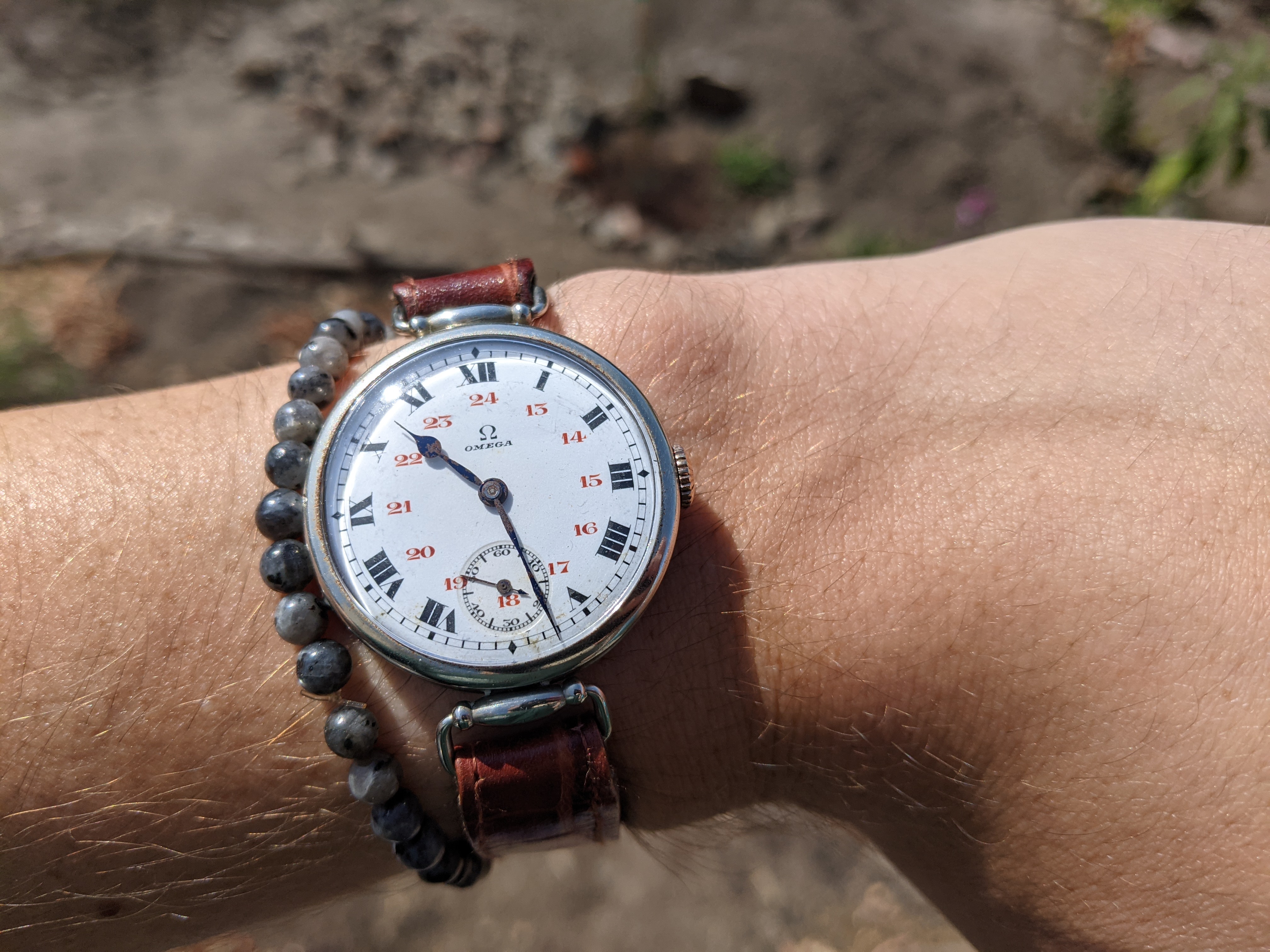 ·I've had this Omega a couple months now. I absolutely love it and ended up getting a wonderful WWI style strap for it. Which brings me to why I am here. Currently the watch is attached with some wire I found lying around. I searched all over online, went to the local jewelry store, and I couldn't find anything that looked like it would work. I've seen old pics of the watch with the OG loops attached, IDK why they're not there, but my homemade wire solution looks like shite. Also if anyone knows anything specific about this model I'd love to know more about it! Another question from a mechanical watch virgin, what would an average cost be to get taken to a jeweler if it loses time or breaks? Thanks for any info!