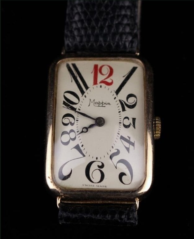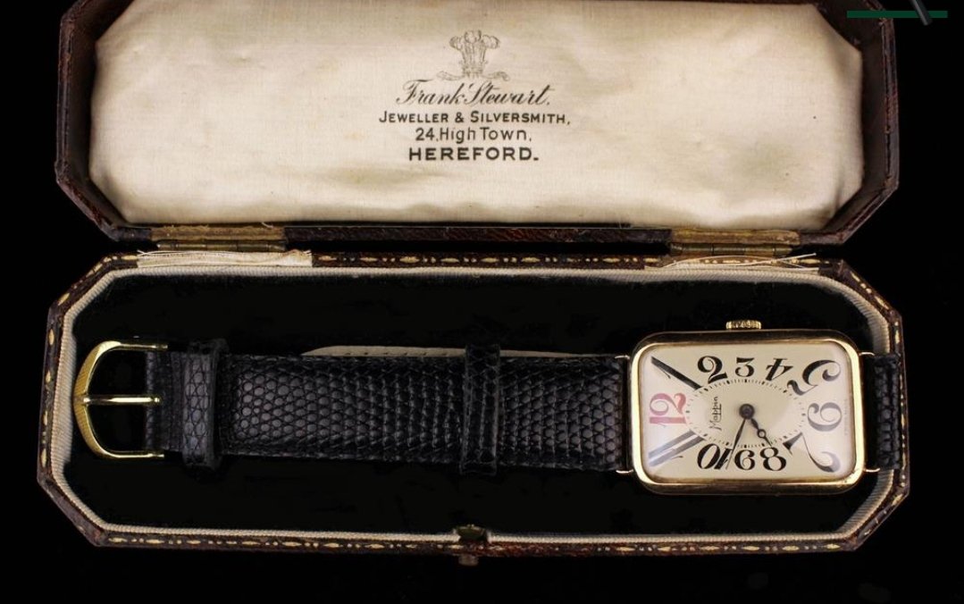 I thought the best plan was to look for the most unique element - which is when I noticed the #7 - it has a very distinctive 'flourish' to mirror the #5 opposite, in fact if you look at the #7 upside down the 'flourish' at the bottom make is look almost like a '2' - this did return only a very small number of matches, sadly no 'Mappin' equivalent, but a RWC Unicorn, 1919 Omega Banana cal. 23.7S ref. AR727AL, 1918 Tissot and a 'no name' that is also rather handsome lookin did pop up!