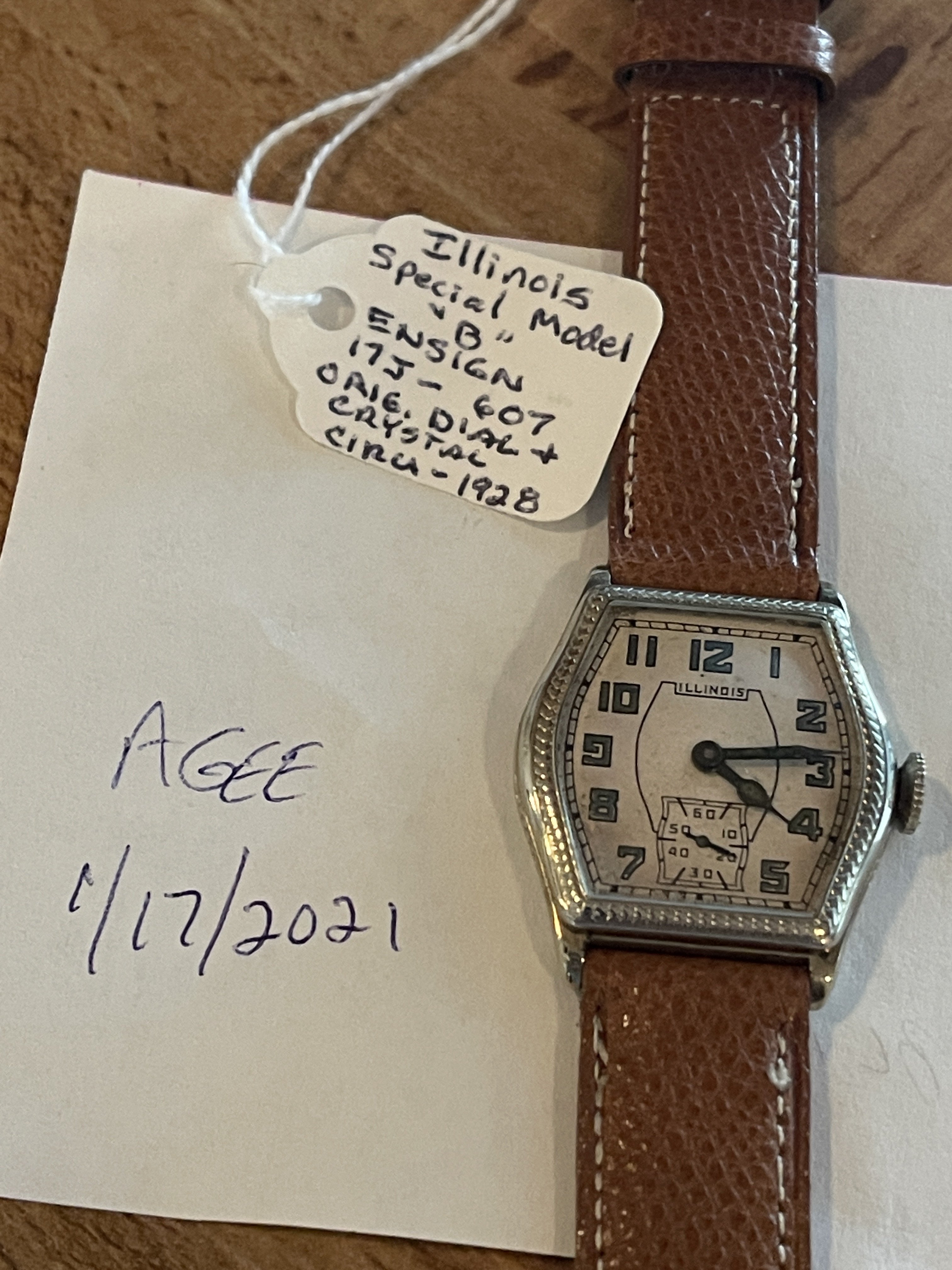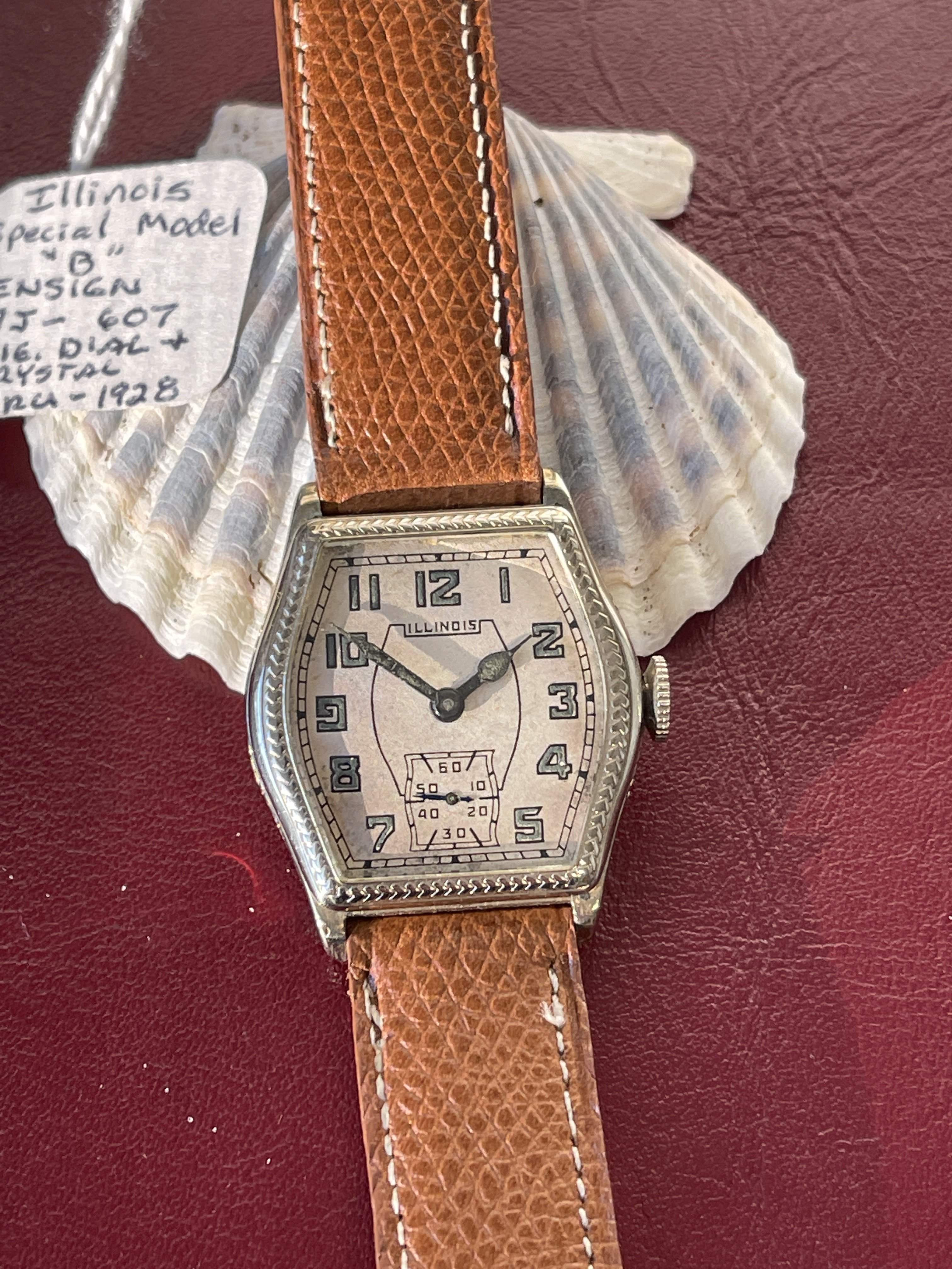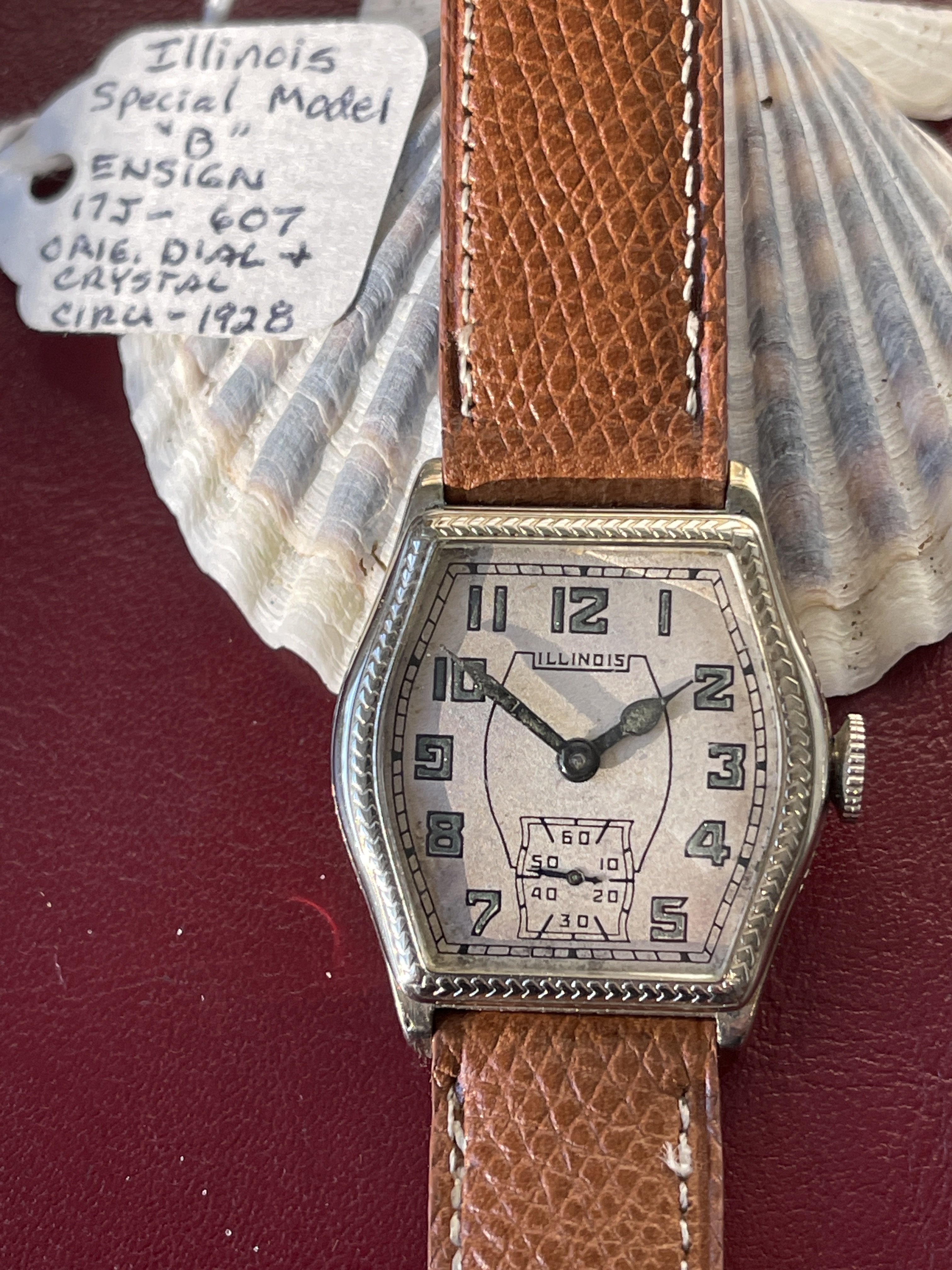 1928 Illinois Special Model "B" Ensign Art Deco Style Watch + Norwegian Calf Strap