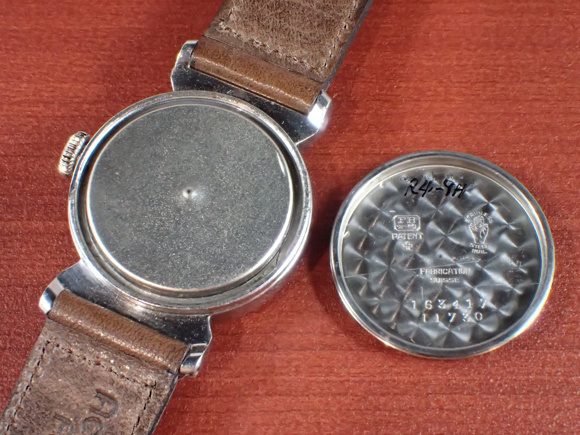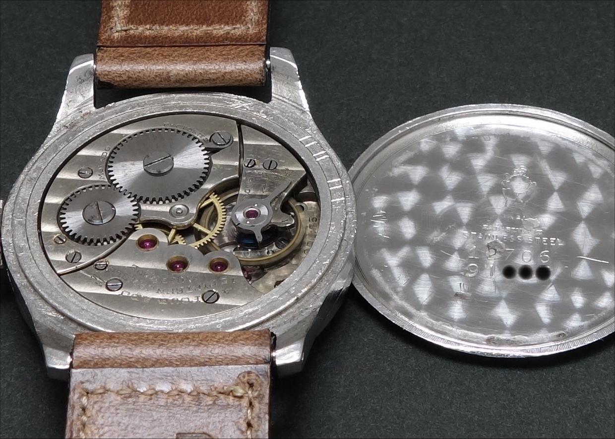 Here's another RG/SS example I have. 33mm FB cylinder case. A shame about the damage around the center post (presumably happened during hand removal), but a lovely watch nonetheless.