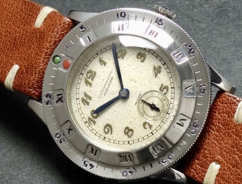 Both watches have pink gold capped lugs. This one also has a pink gold bezel with a single step