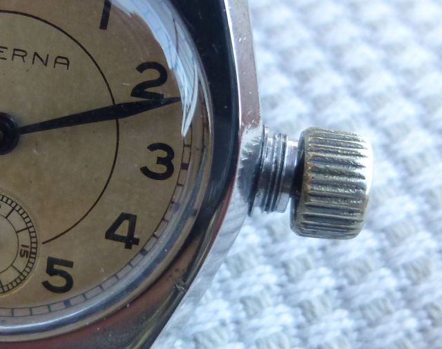 I recently purchased a 1930s Eterna that features a 'clamshell' case (serial 242xxxx so it looks to have been produced in 1931). It will need a movement service before it is ready to wear and I suspect the crown to be a service replacement from the past. I did some reading-up on the history of these cases (most notably: https://www.vintagewatchstraps.com/waterproof.php) but I was unable to find any information regarding the crown's part in providing water resistance in these '30s cases.