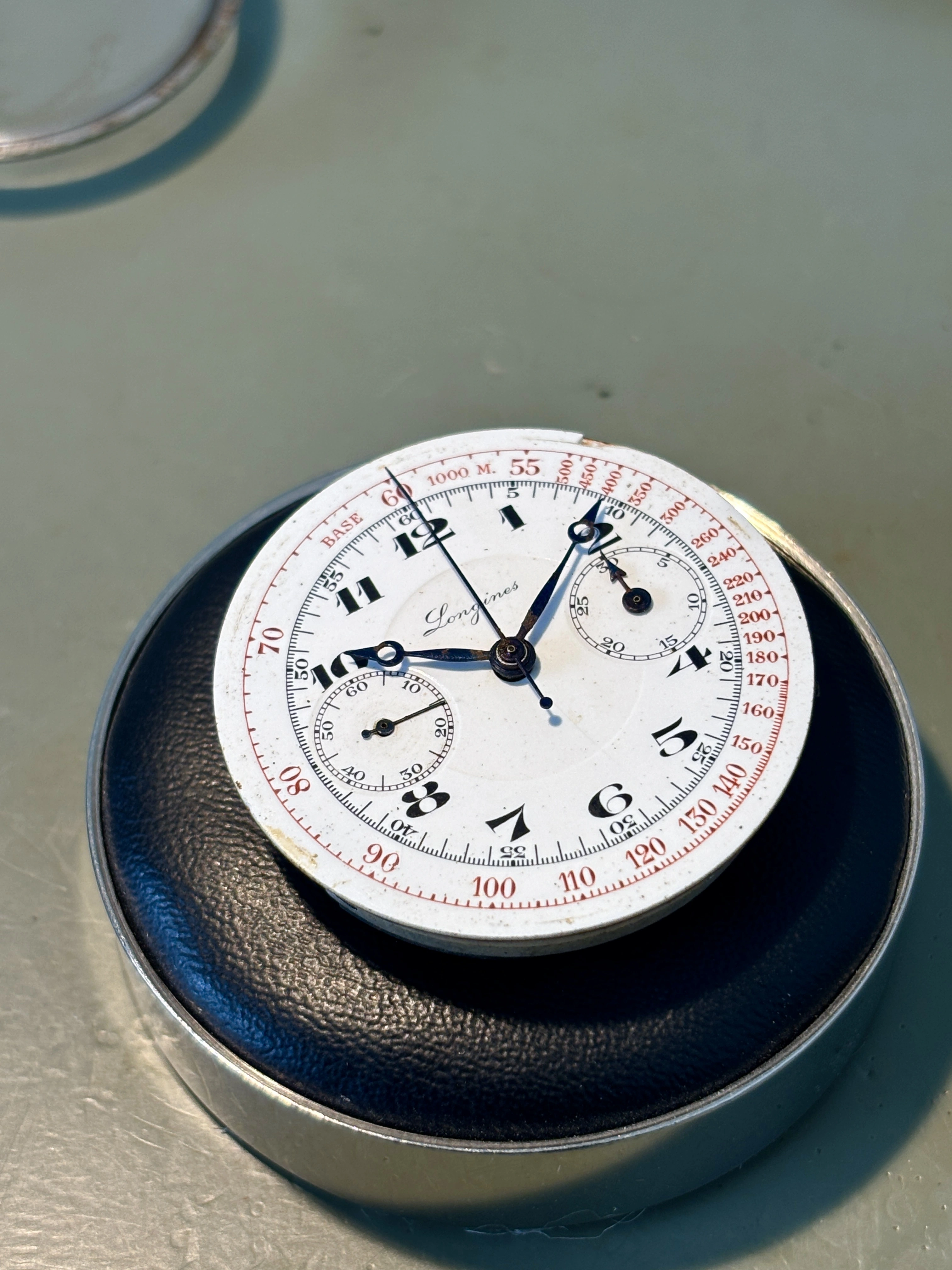 https://omegaforums.net/threads/cleaning-an-enamel-dial-cyma-with-windex.174953/). Given the rarity of your Longines, I would keep dial cleaning to a minimum in order to avoid any mishaps. I acknowledge that this might be an overly cautious stance given that it is an enamel dial.