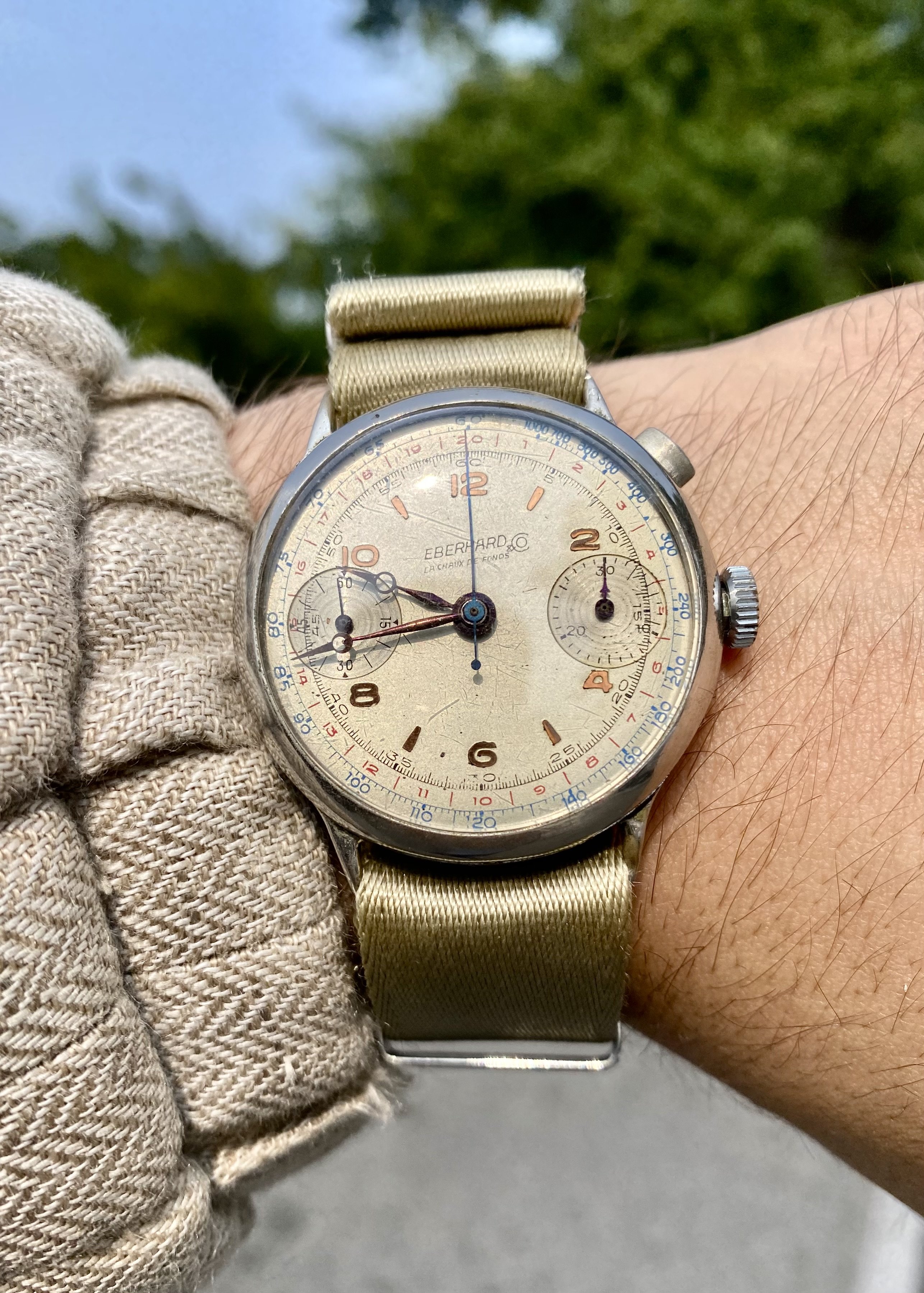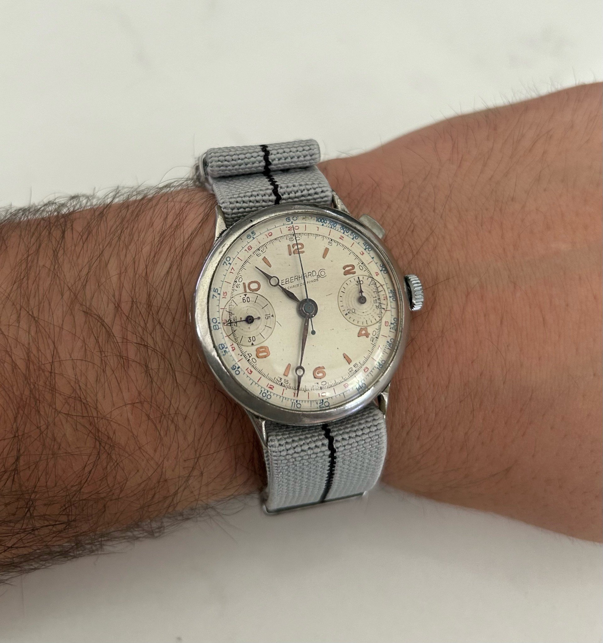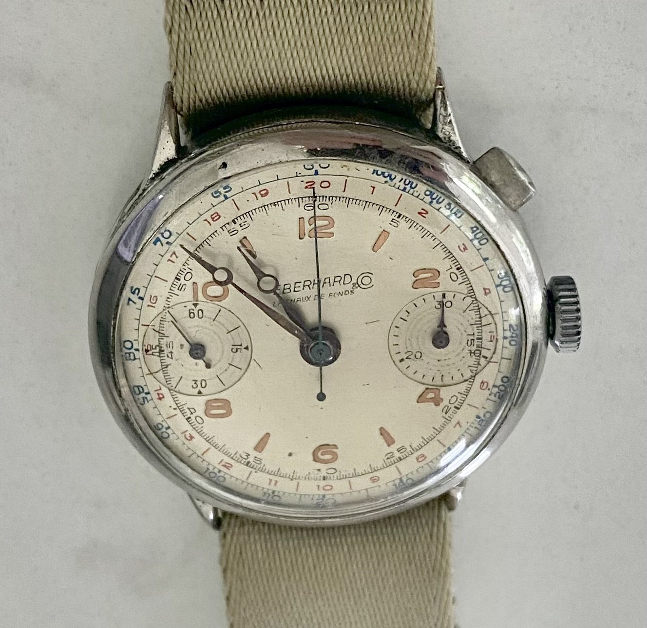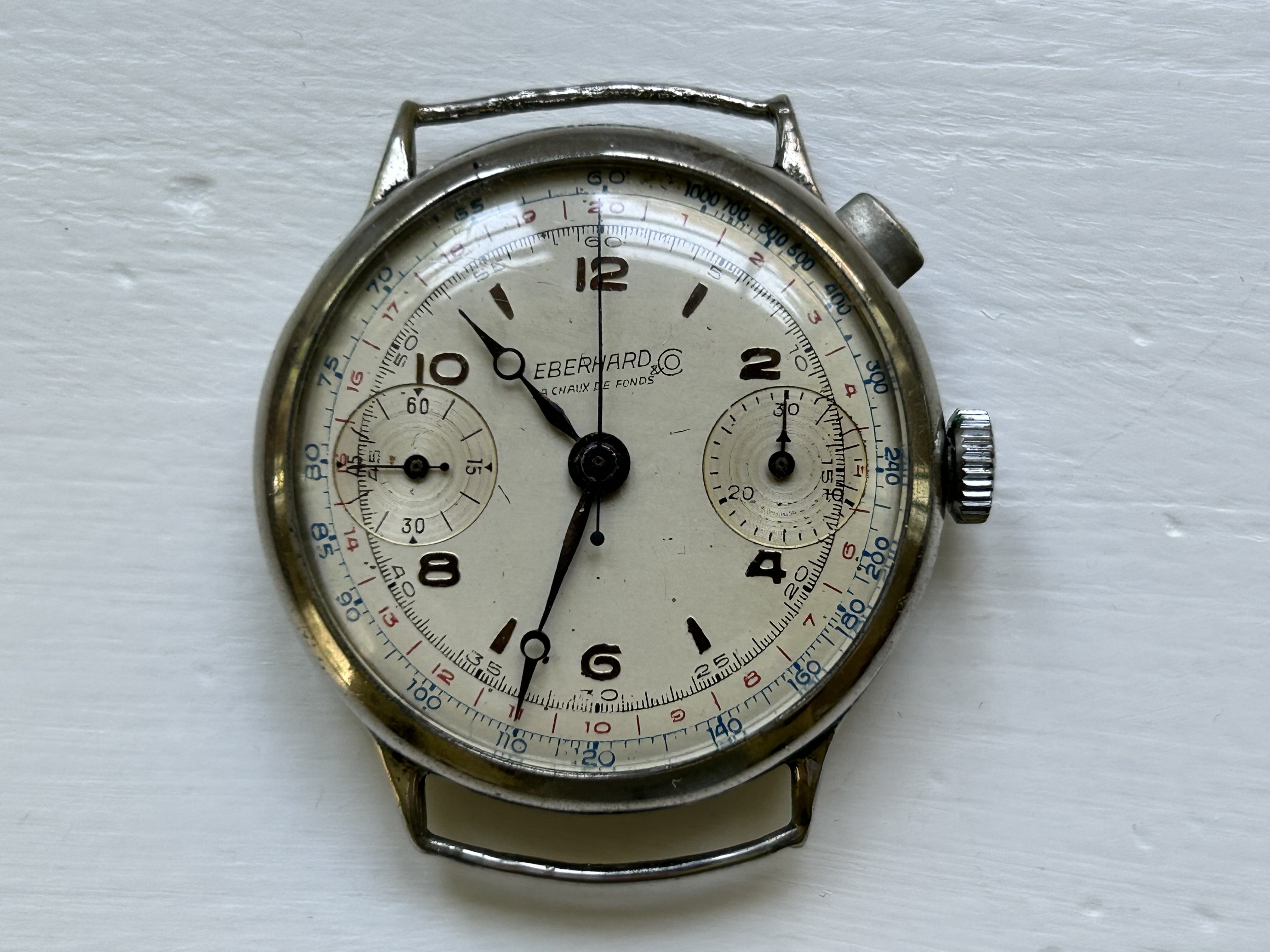 For your kind consideration is this EBERHARD 1930-1940s monopusher chronograph.