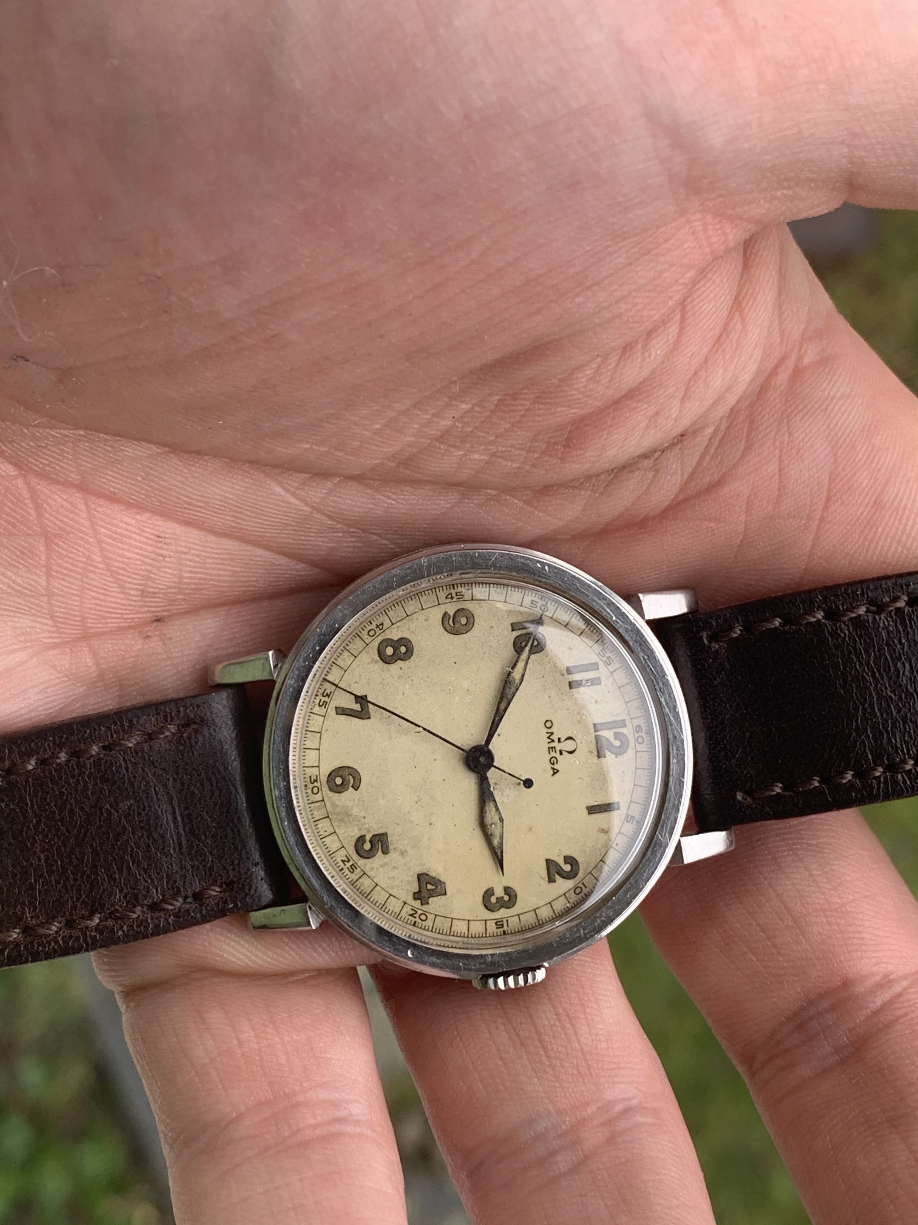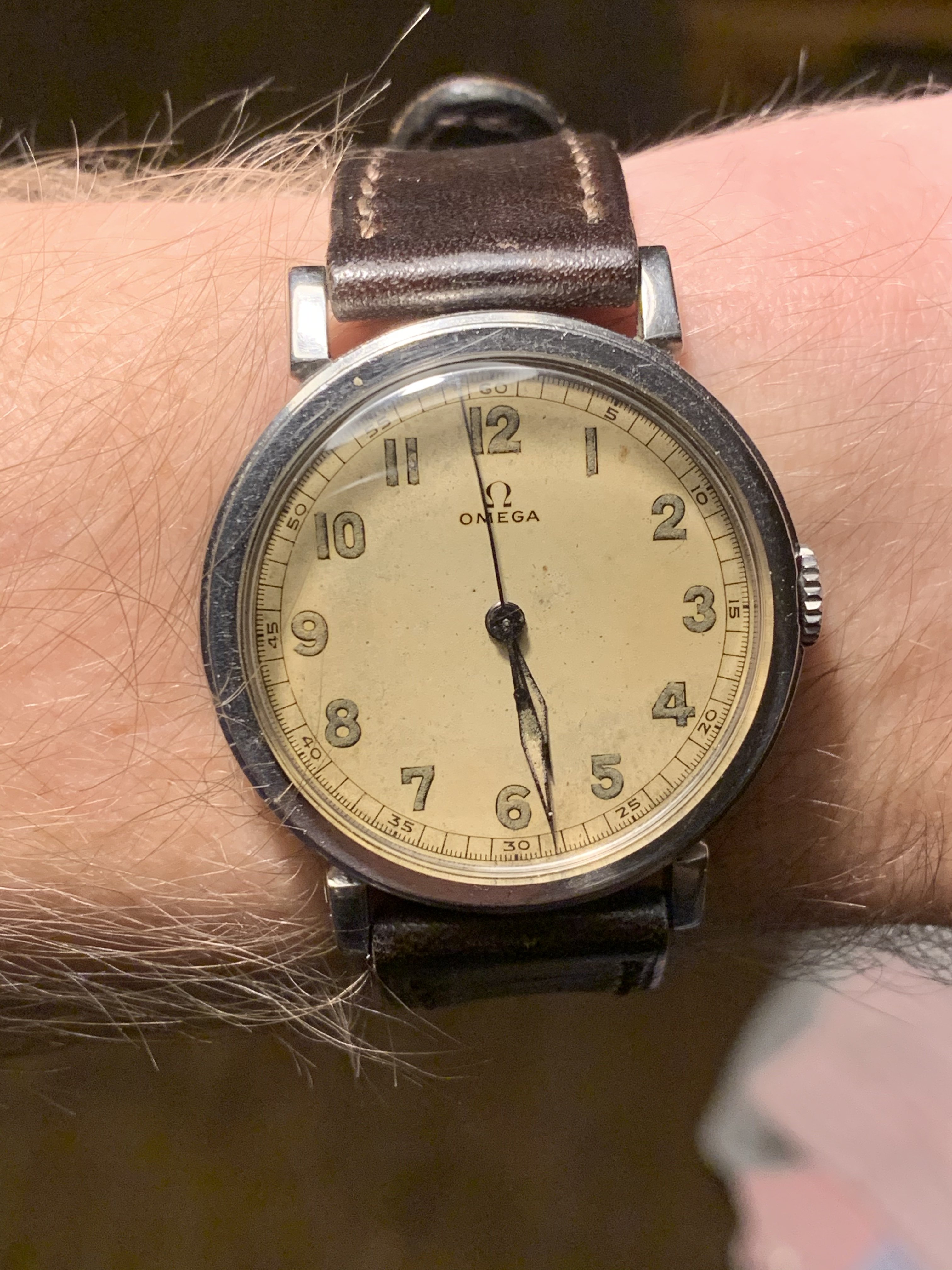 Dial The dial is in remarkable shape for a watch 83 years old. It has aged, and the lume has gone a dark colour as one would expect, but there doesn't appear to be any damage beyond the overall patina that has developed through the years. I think it's a beautiful watch.