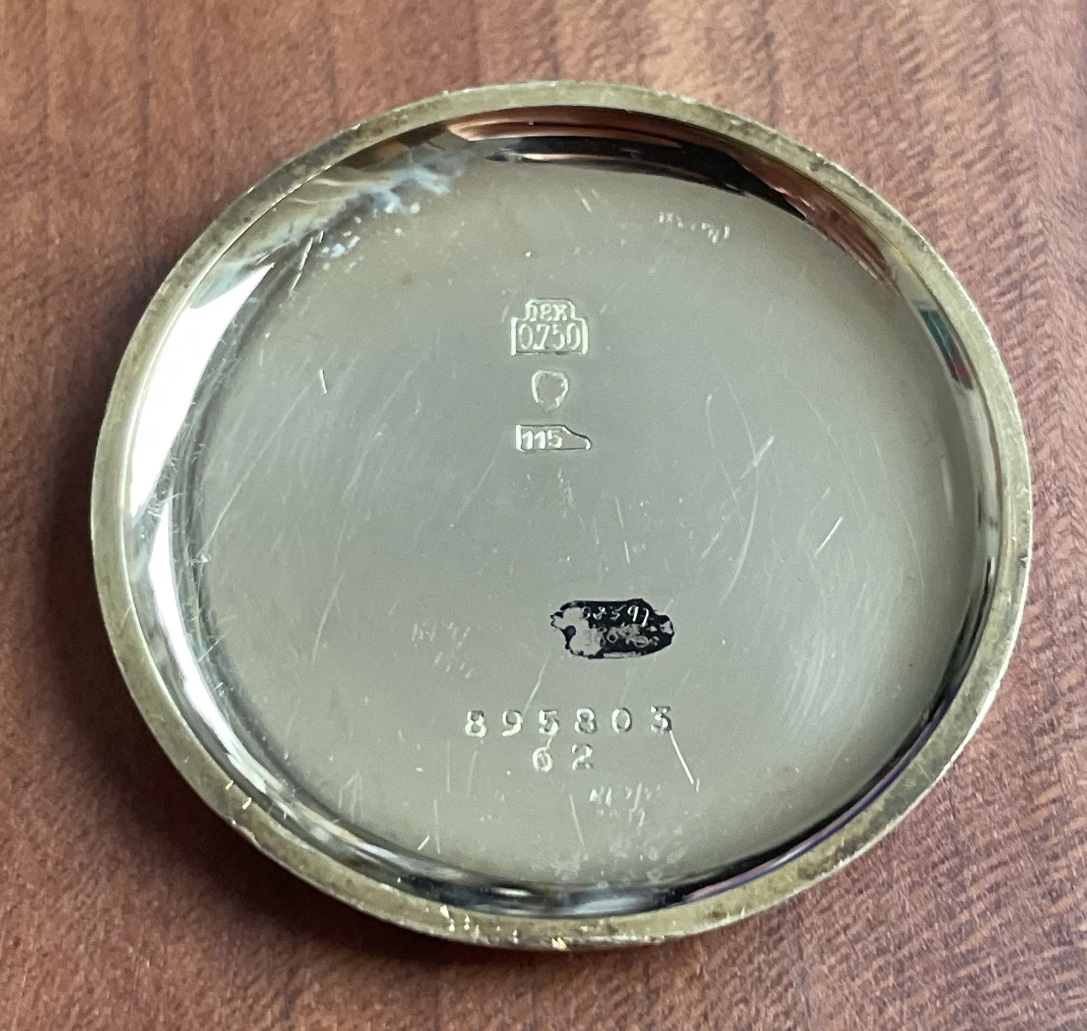 Dial and hands: Lemon-colored dial, painted black hands. The hour hands may have been replaced.