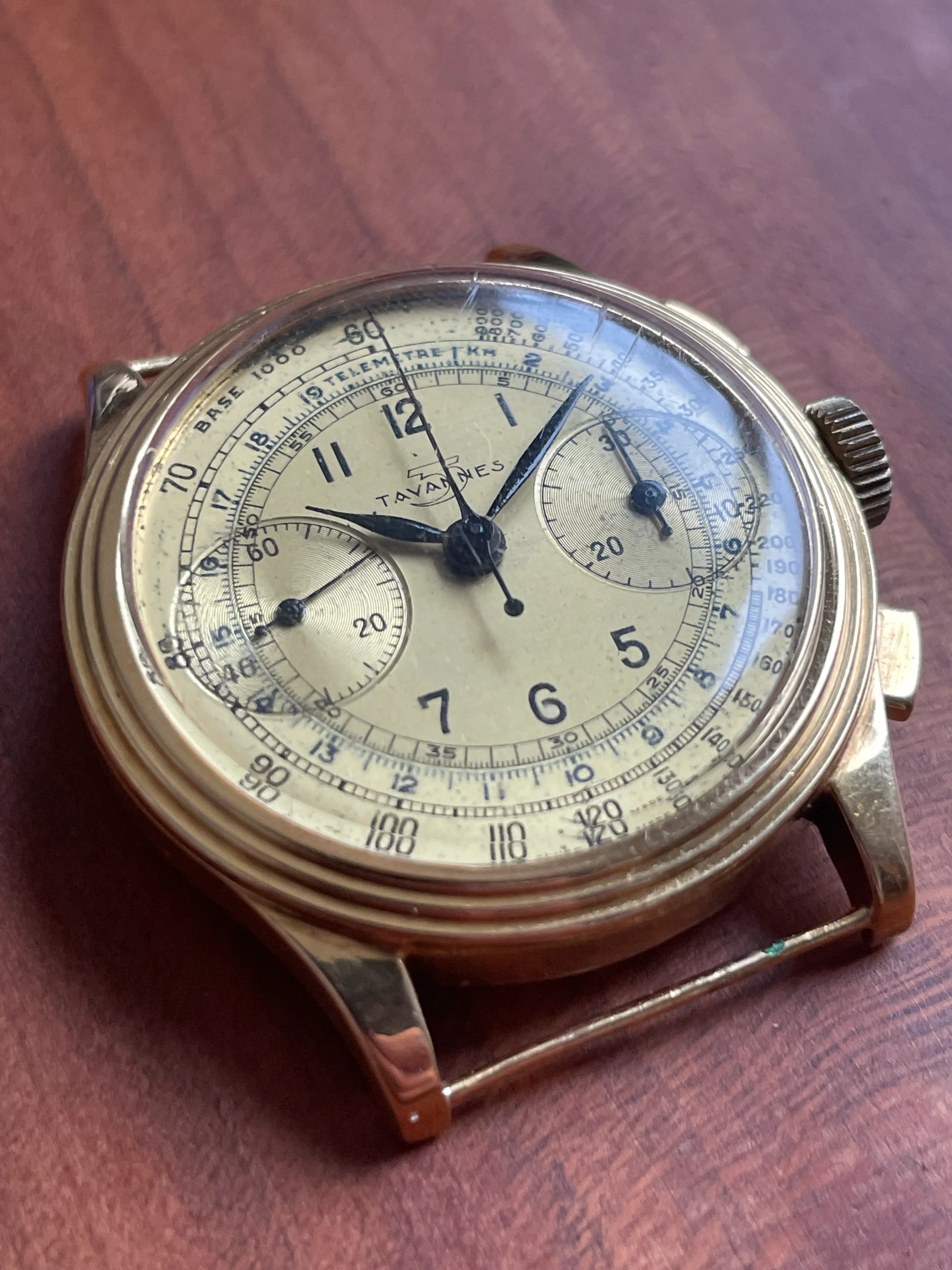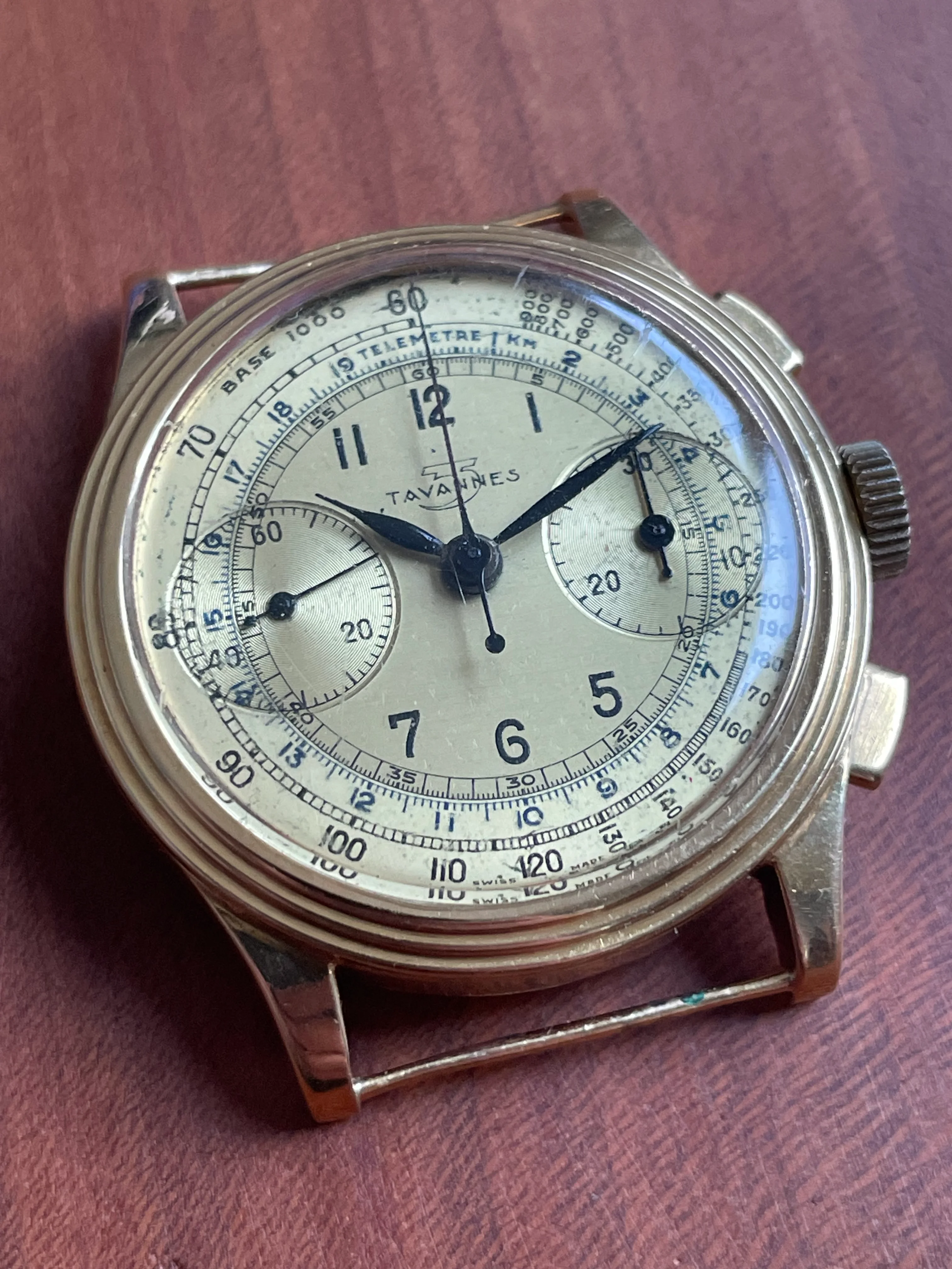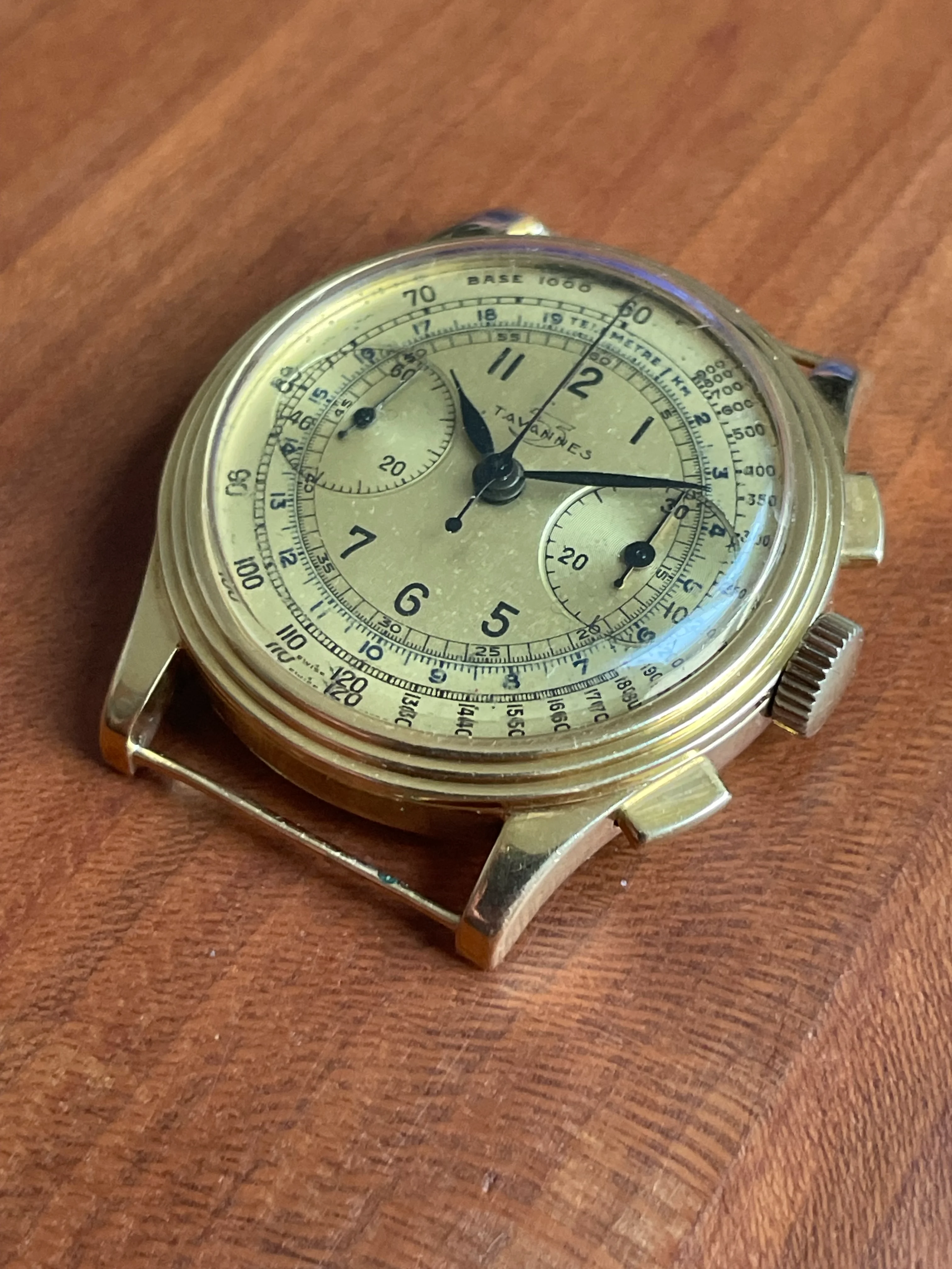 A Tavannes chronograph with the same dial but a different case sold for 2650$ last year: https://www.liveauctioneers.com/ite...nes-chronograph-wristwatch-in-18k-yellow-gold