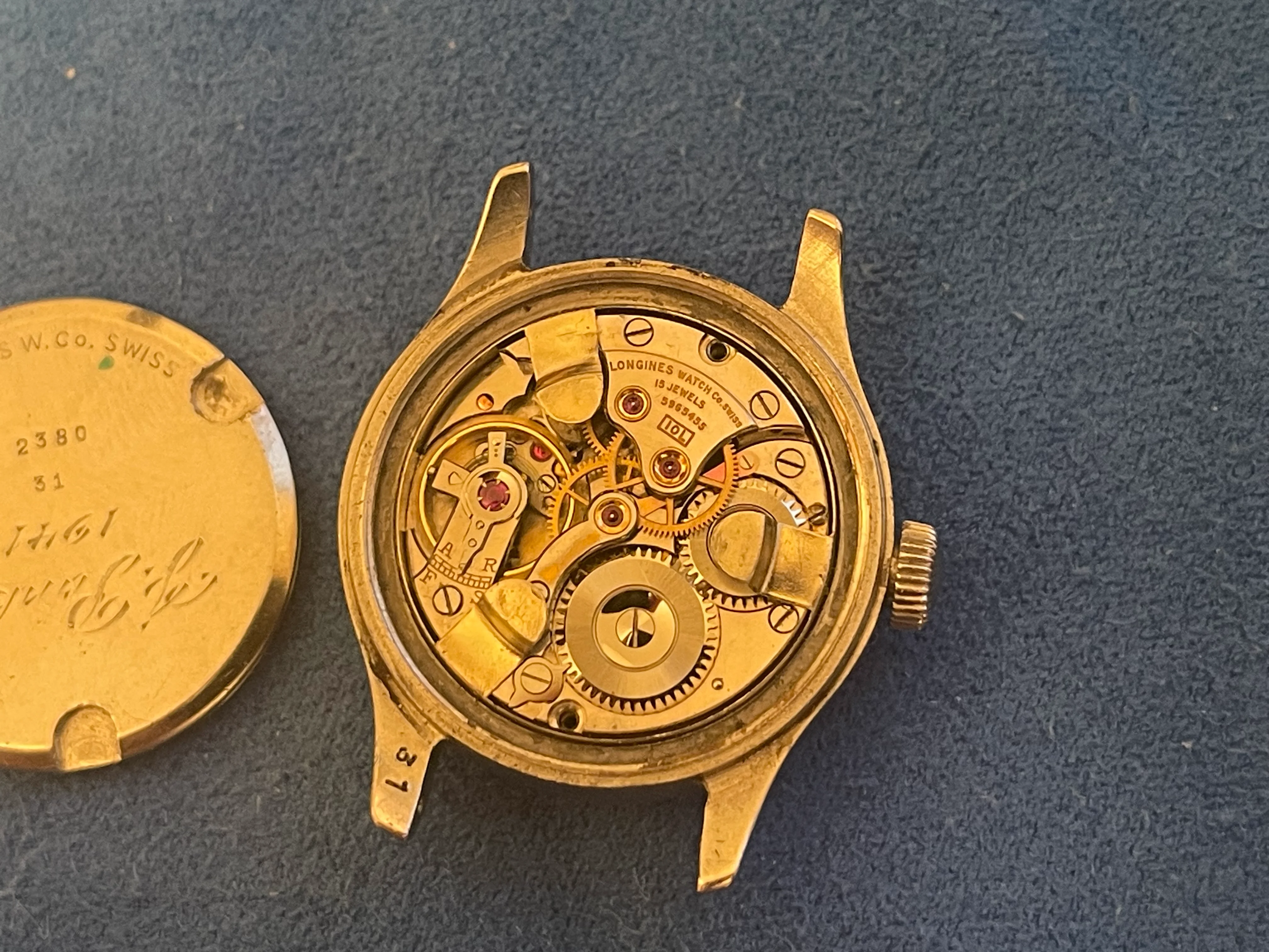 ·I recently acquired a Longines ref. 4776 with an intriguing engraving on its case-back. The engraving consists of a capital letter preceding a five-digit number, and what appear to be initials below the number. Knowing that the watch was invoiced to Canada in 1941, a bit of research suggested that the capital letter and number are a Canadian Regimental number, which were introduced for the Canadian Active Service Force in 1940 (Source: Law).