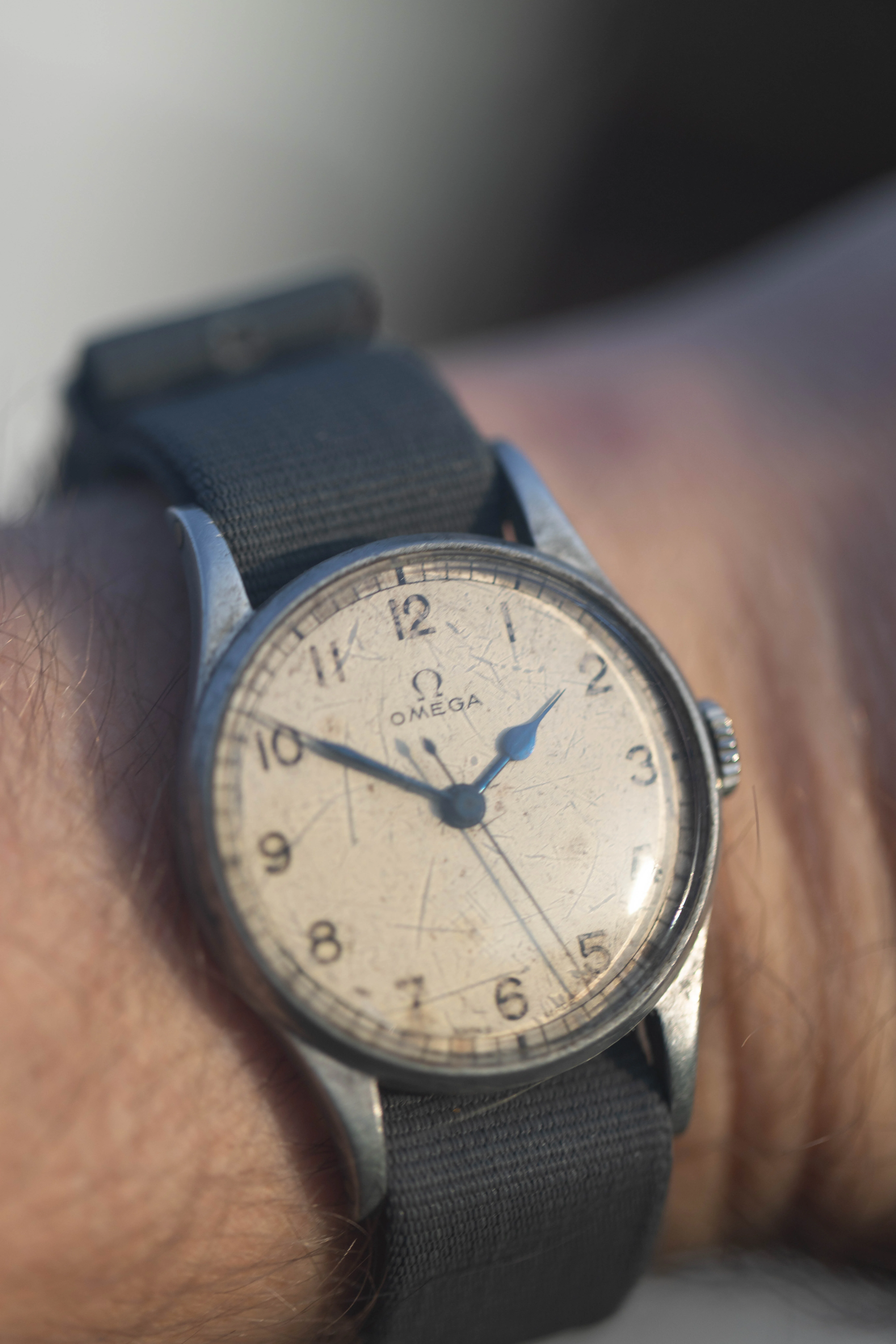 Case: The alloy case is in nice shape and retains the original long and elegant lugs, that are often missing or damaged and best of all the chamfers and edges of the case remain sharp and very honest to the original design. Unfortunately, the 6B/159 markings that would usually be present on the caseback appear to have likely have been polished away. But otherwise, everything is in great, shape and appears to be all original - including the crown. The crystal has some light grazing, but given that this is a military watch, I have decided not to have it replaced as it adds a little to the history of this piece. If a buyer would like the crystal to be replaced I can arrange this at the point of sale. The case measures 32.5mm in diameter excluding the crown, which is smaller than a modern watch, but with the long lugs it still has a beautiful presence on the wrist, and to me is an ideal size for a discrete dress watch for an elegant gentleman. Ordinarily I would replace the crystal, however given the provenance of the watch I have left the crystal as is, and as shown in the pictures there are scratches and damage to it - that said, I am absolutely happy to have a new crystal fitted for the new buyer at no extra cost, if they so desire.