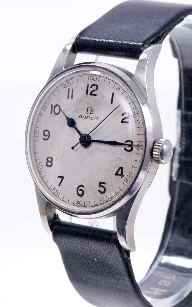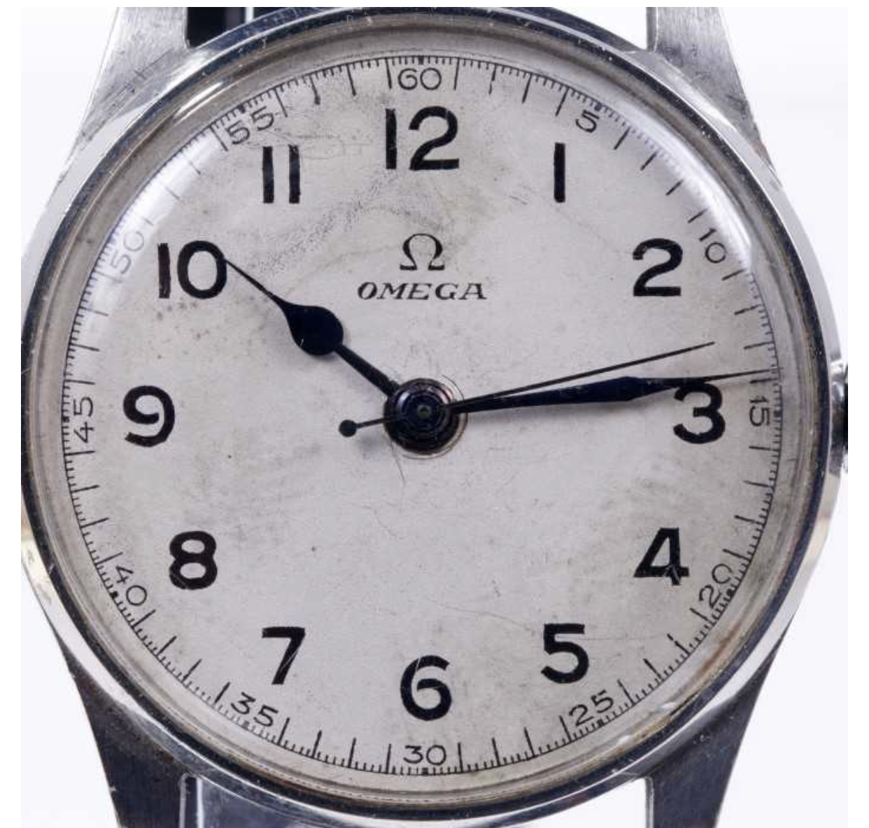 Some watches were redialled while in service, and the one below is in the Omega Museum, with a small Omega symbol, and pointed 4.