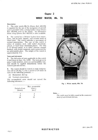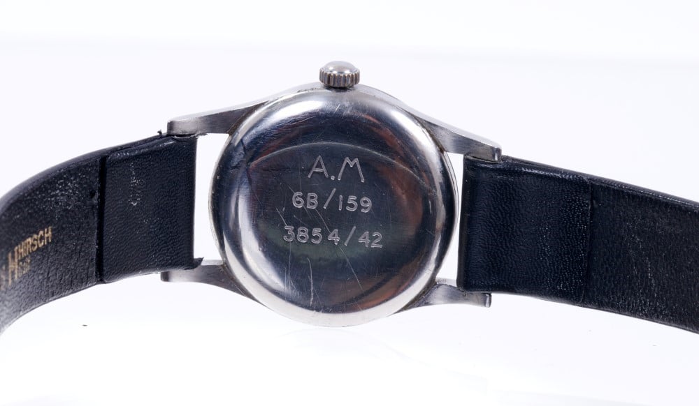 Earlier 6B/159 watches were marked A.M. but after 1943 they were marked with the pheon and the issue number with an ‘A’ prefix.