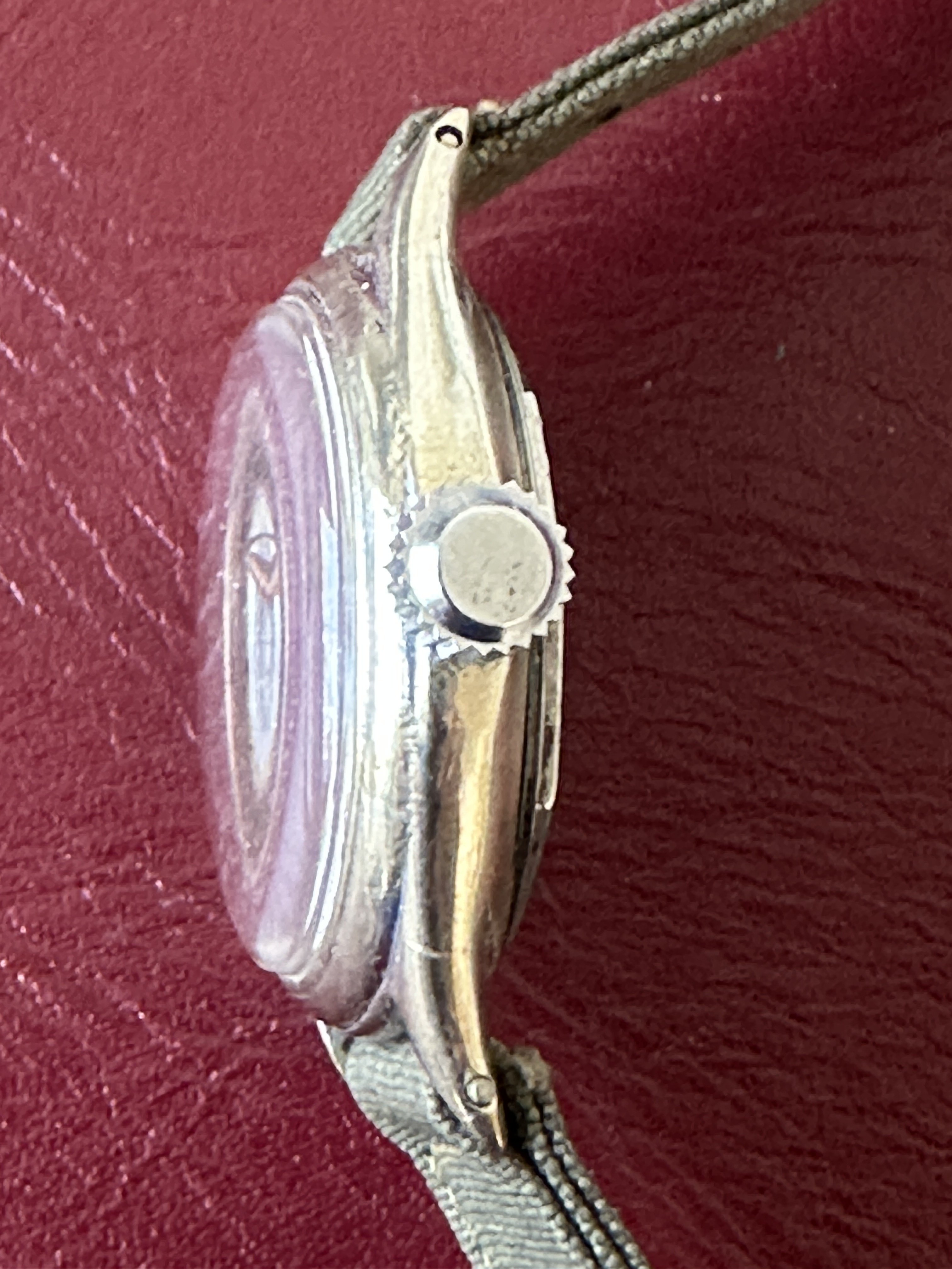 These ORD watches were made for non aviation personnel during WWII. Many of these white dialed examples have radium burned dials. This dial has none