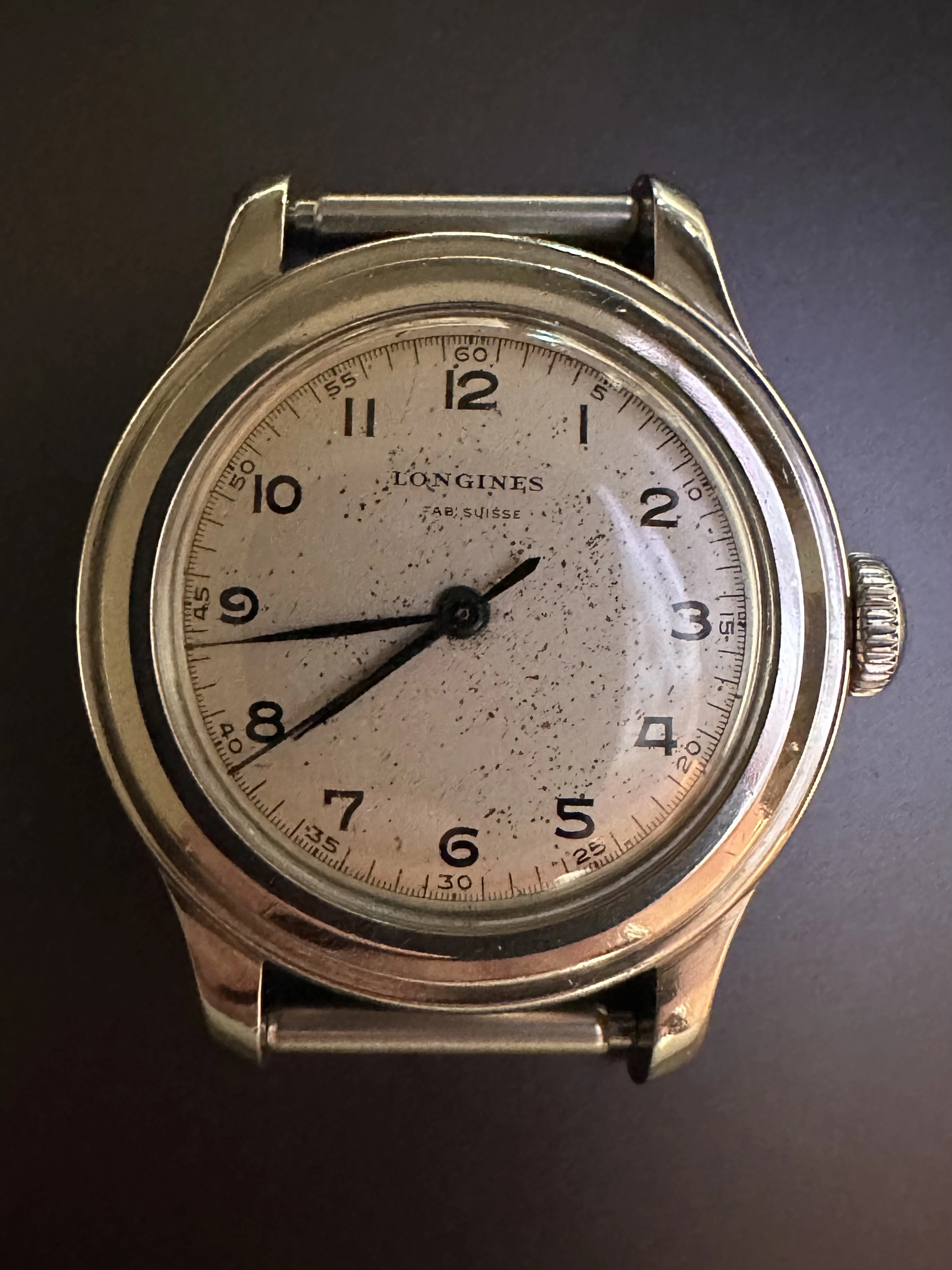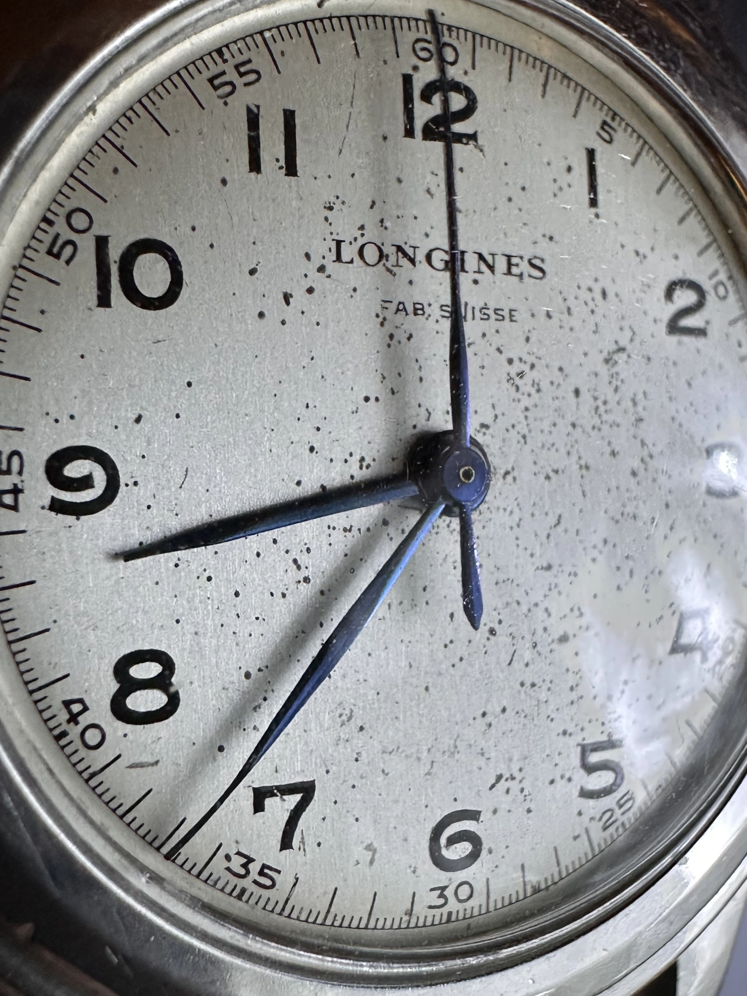 Very different case to my 1947, 35.5mm Longines Ref 5483 Sei Tacche, but similar to my 1940 Tre Tacche, though rounded step instead of sharp step on the front. (Sei Tacche on top in pic, Tre Tacche middle)