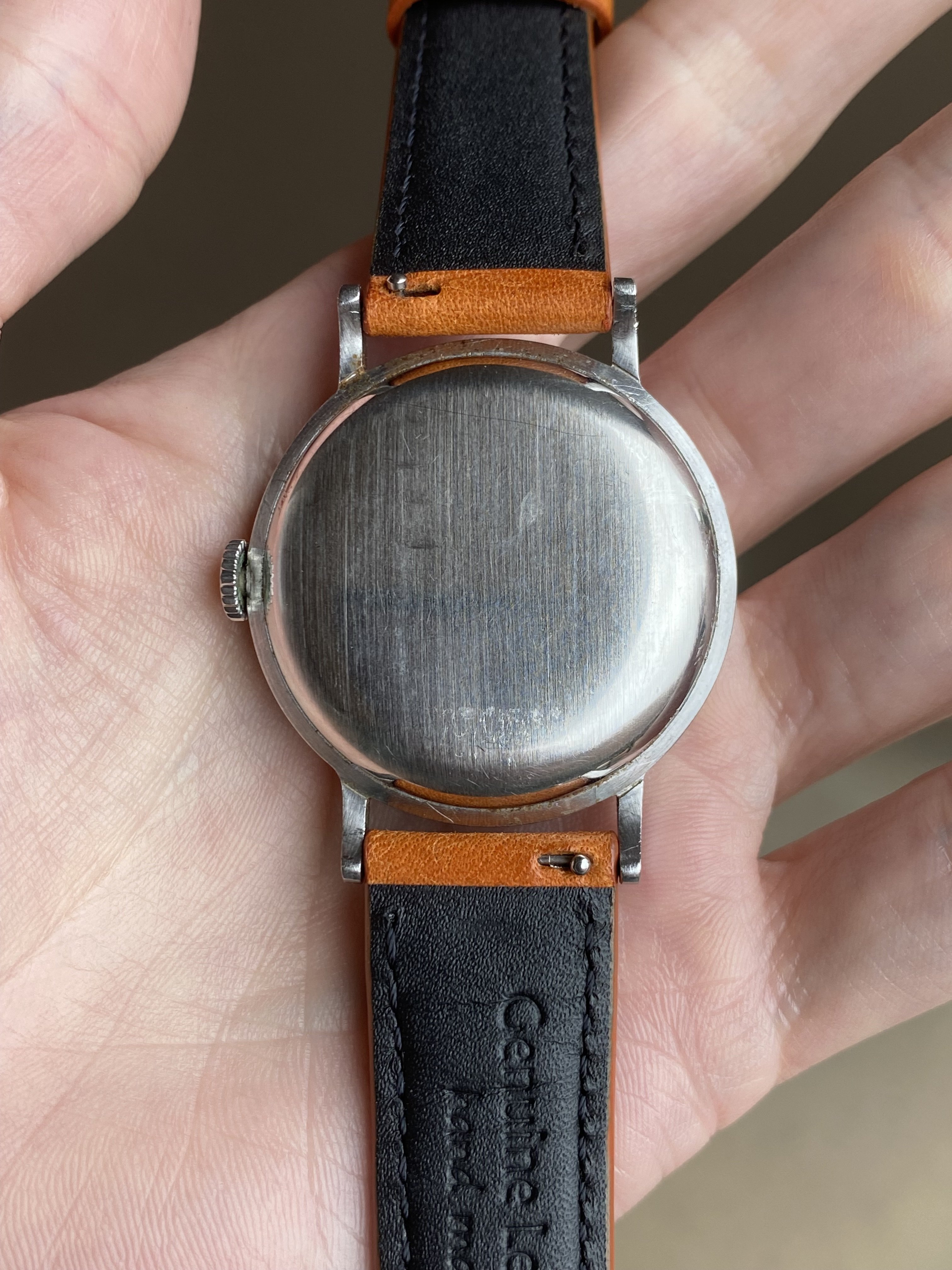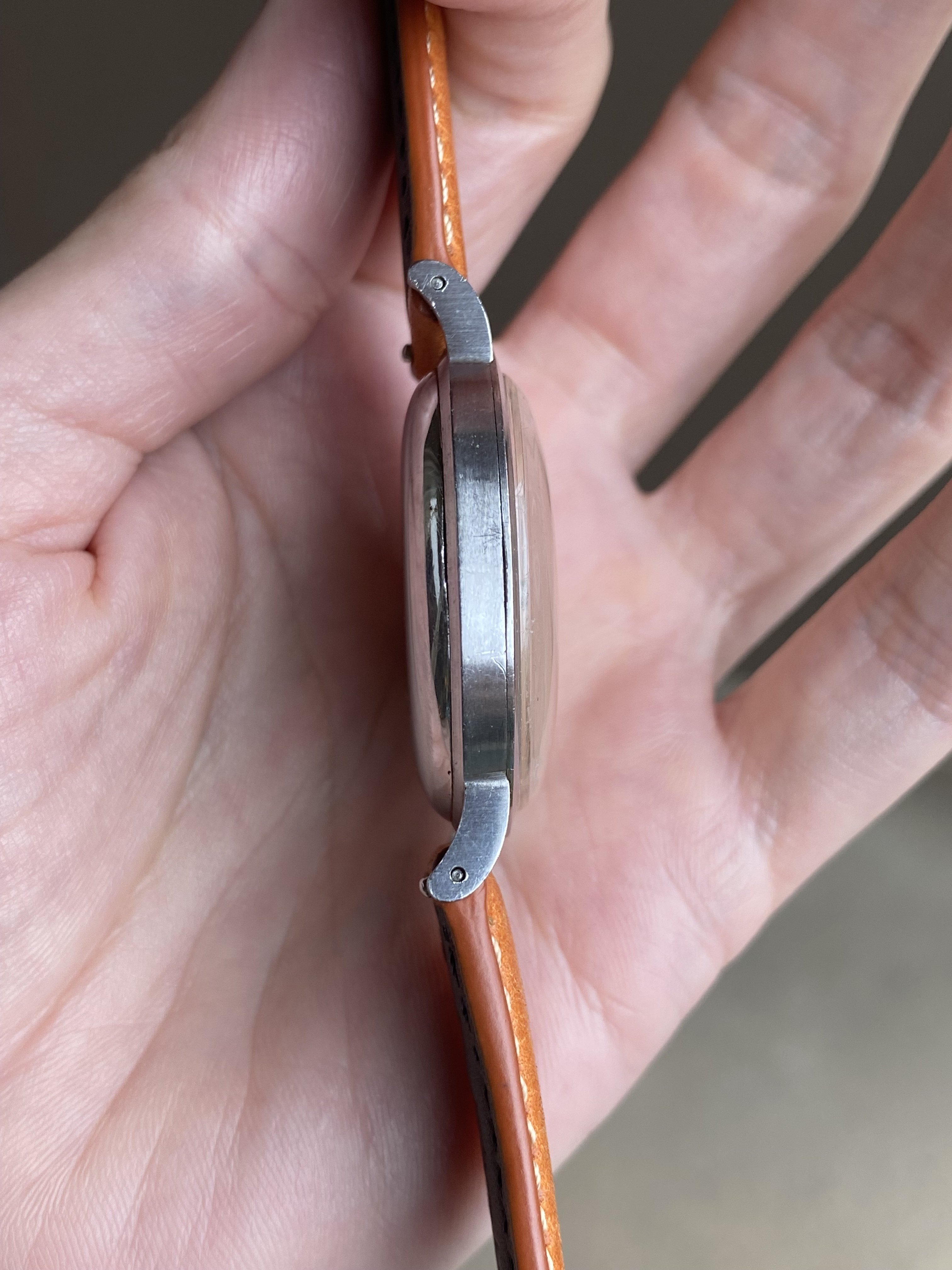 Strap: Comes on the leather strap pictured, or the vintage Soviet bracelet for an extra $50.
