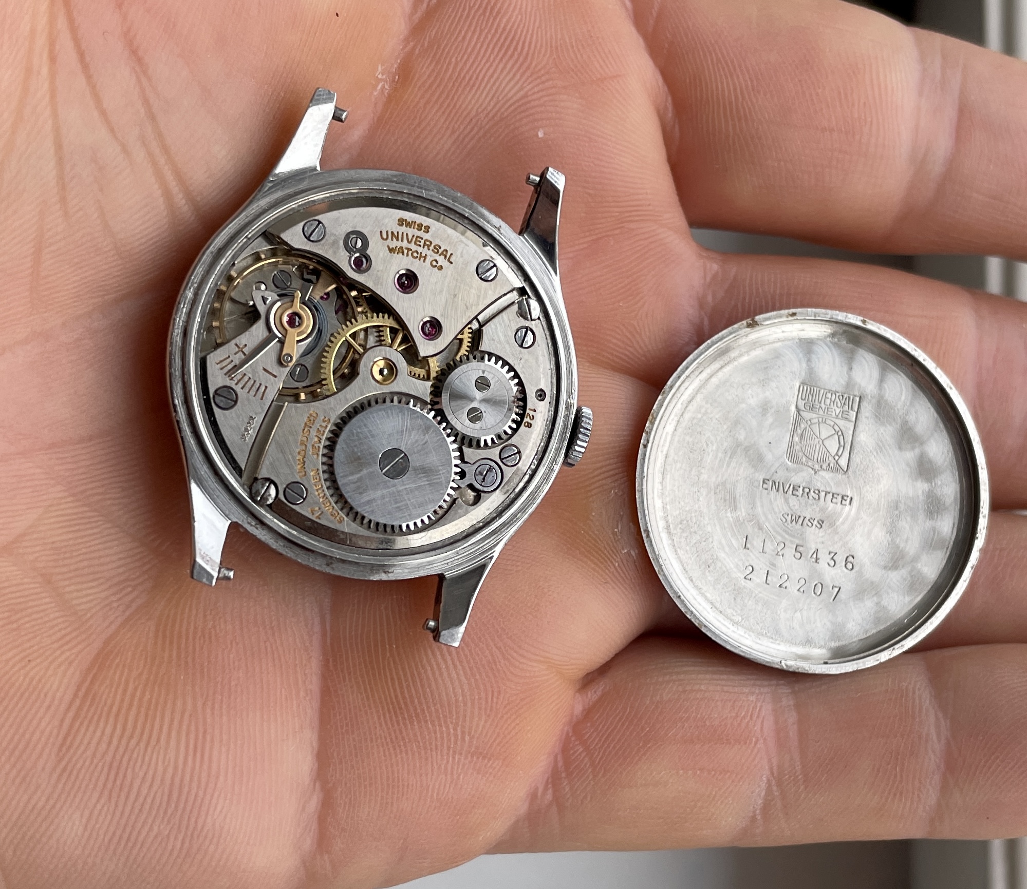 Manual cal 128 movement that is running strong and keeping accurate time, but no known service history.