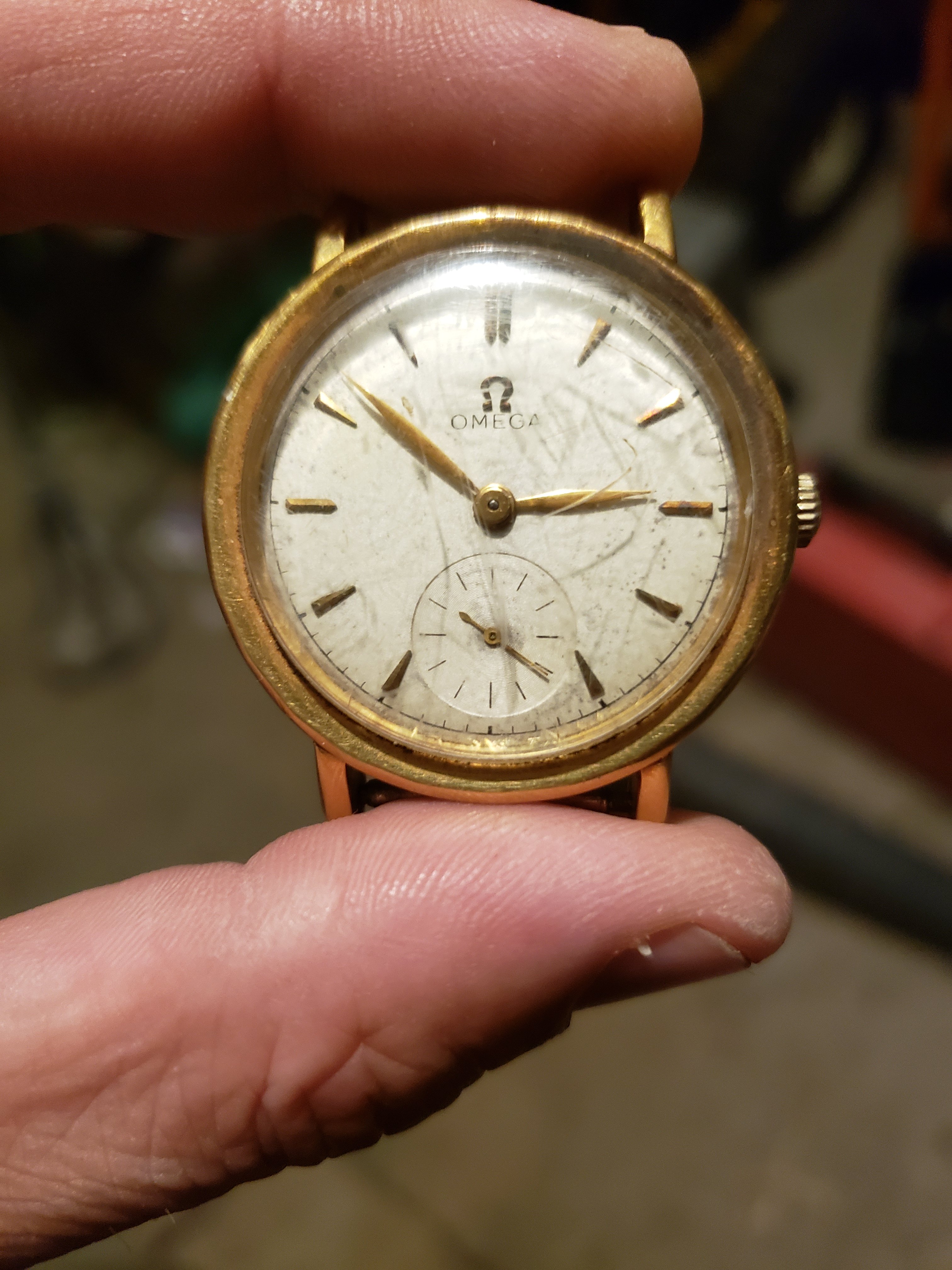 ·Hi all, im new to the forum, so forgive me if I should have posted this in another thread. I've had trouble identifying this circa 1945 18k wind-up model. It was my great grandfather's, he always loved omega, i have his '61 seamaster deville and '63 pie-pan constellation. Any ideas on what this watc is and should I restore it?