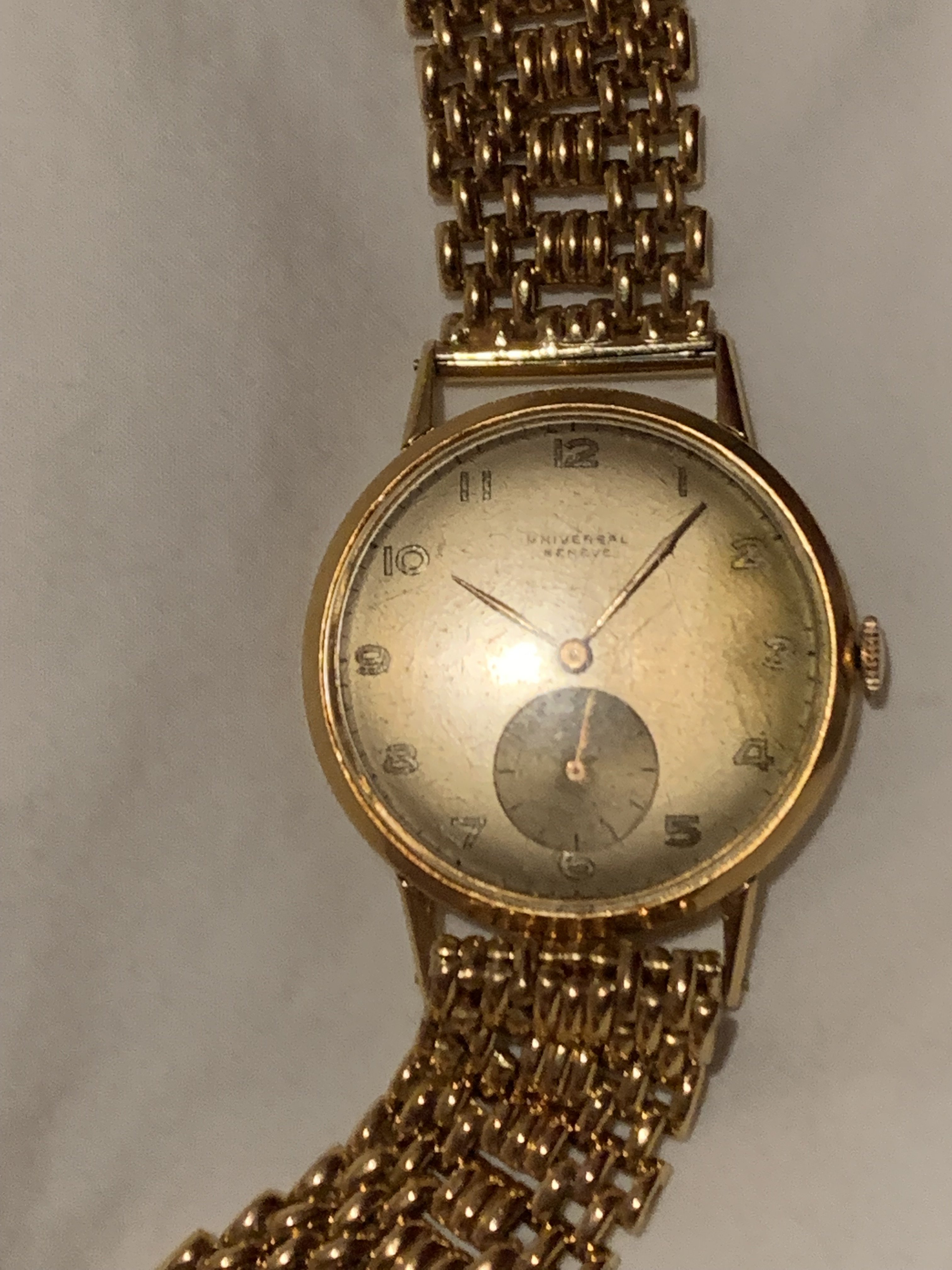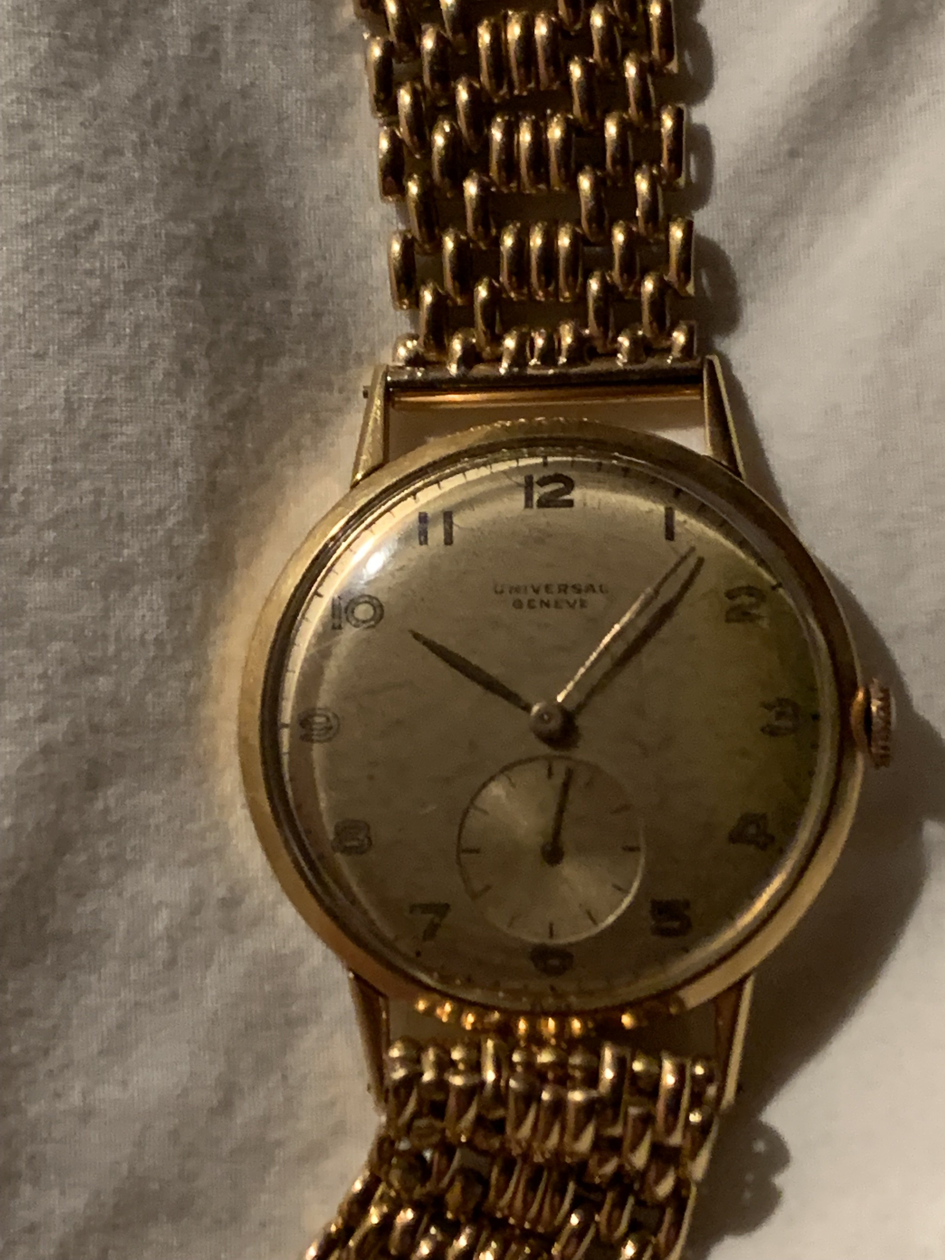 ·I have an 18k gold watch that appears to have been made in the period between 1946 and 1949 based on the serial # (starts with 135). This is consistent with the history of the watch as it was given to my grandfather in November 1951. The model # is 112140 and the first three numbers are consistent with the standard model numbers at UG. The first "1" indicates that it is an 18k gold case, the second "1" indicates that it is a time only watch, and the third number ("2") indicates the calibre (either 281, 283, or 481). The final three numbers would suggest that the case design was a "140".
