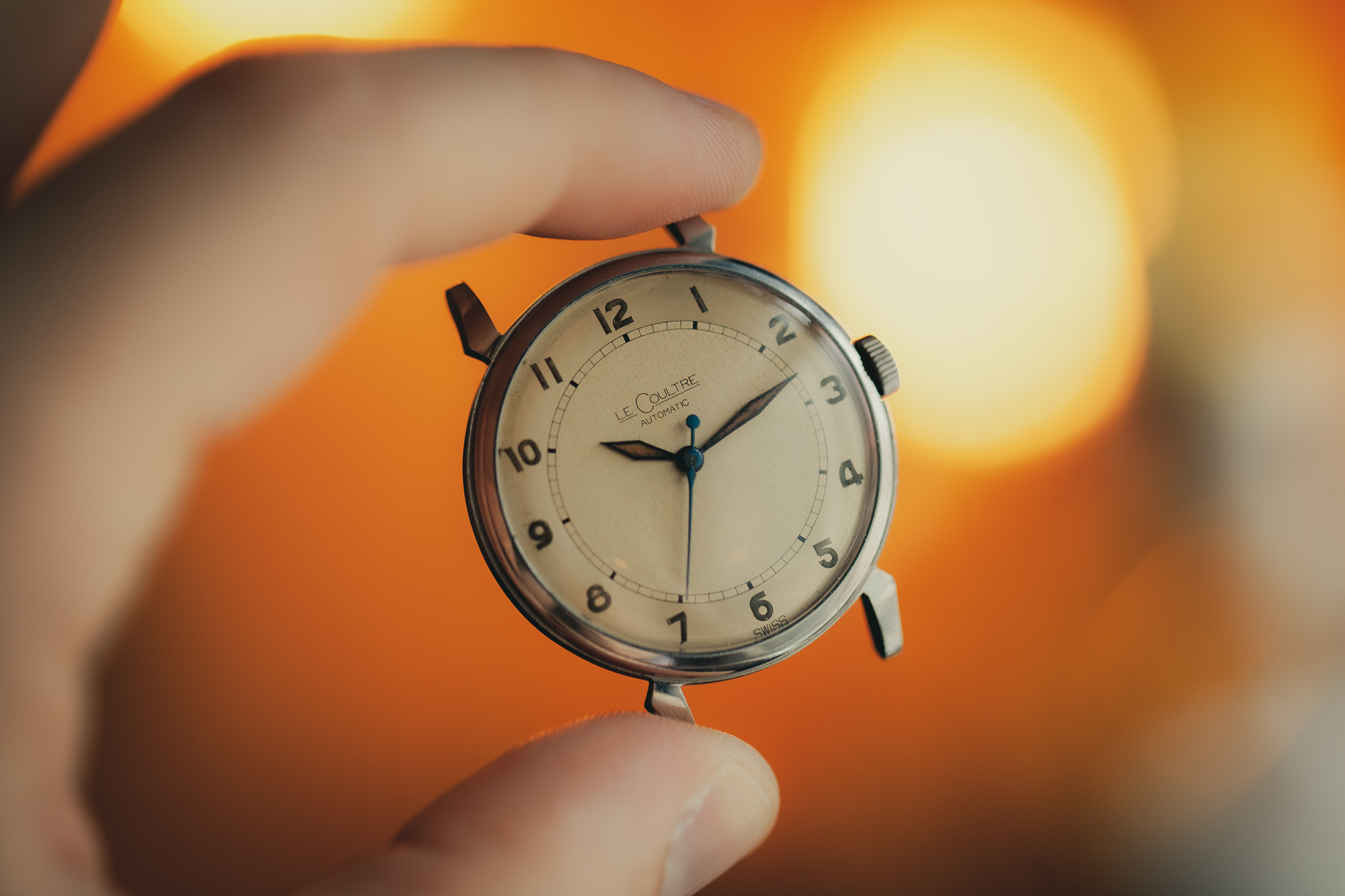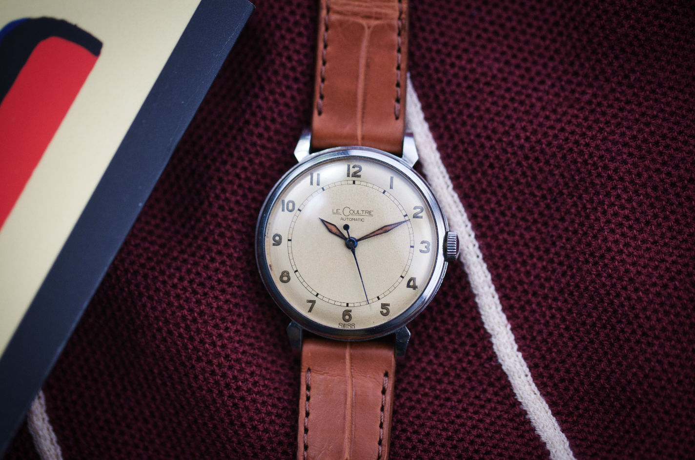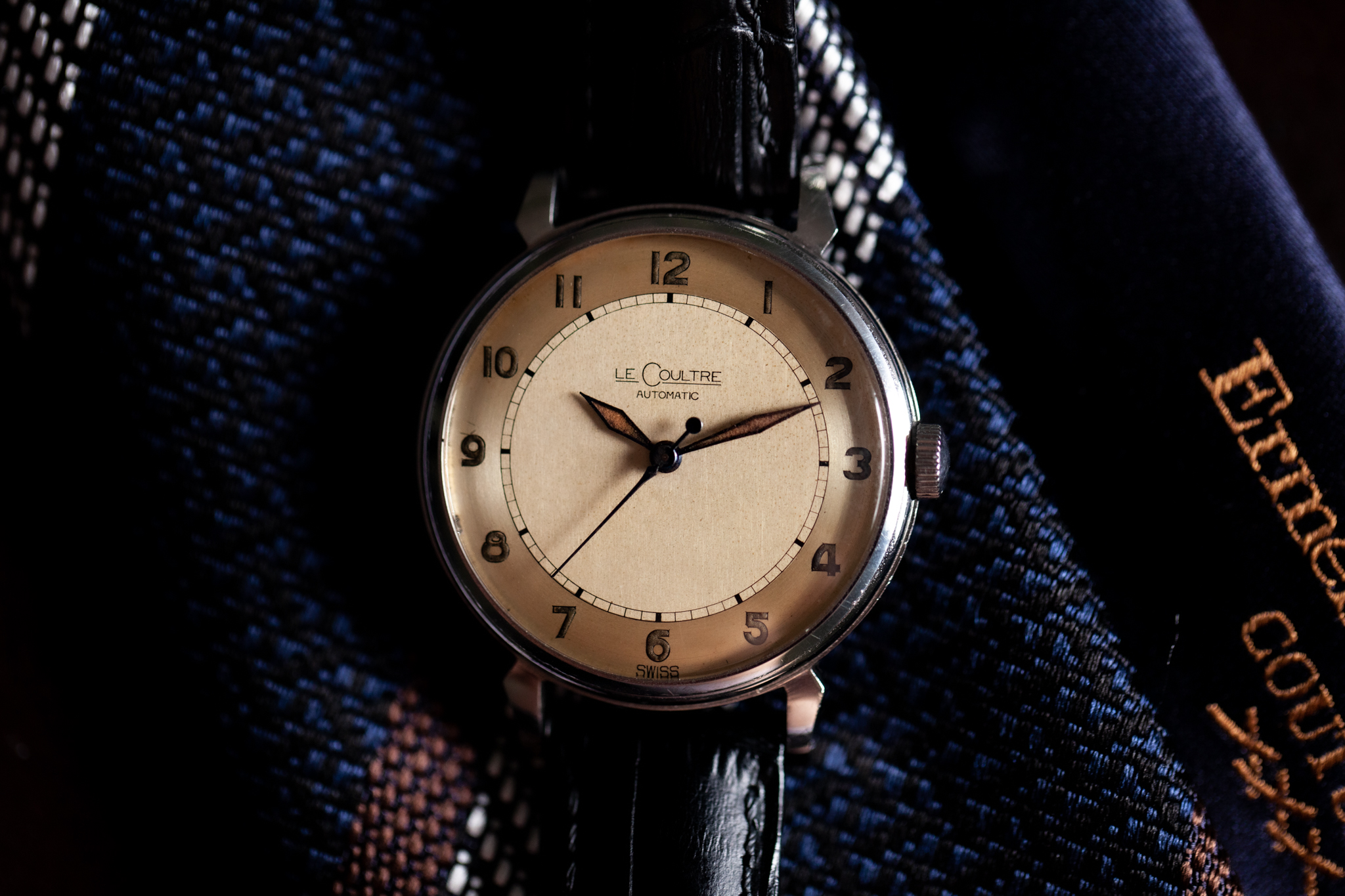 Dial: I think you’ll agree it’s beautiful. Two toned vintage dial. There’s microscopic patination best seen on macro shots, even across the dial. Arabic hour markers are all in great condition. The “LeCoultre” logo is without wear. There are some small scratches around 9' o'clock, only visible at certain angles.