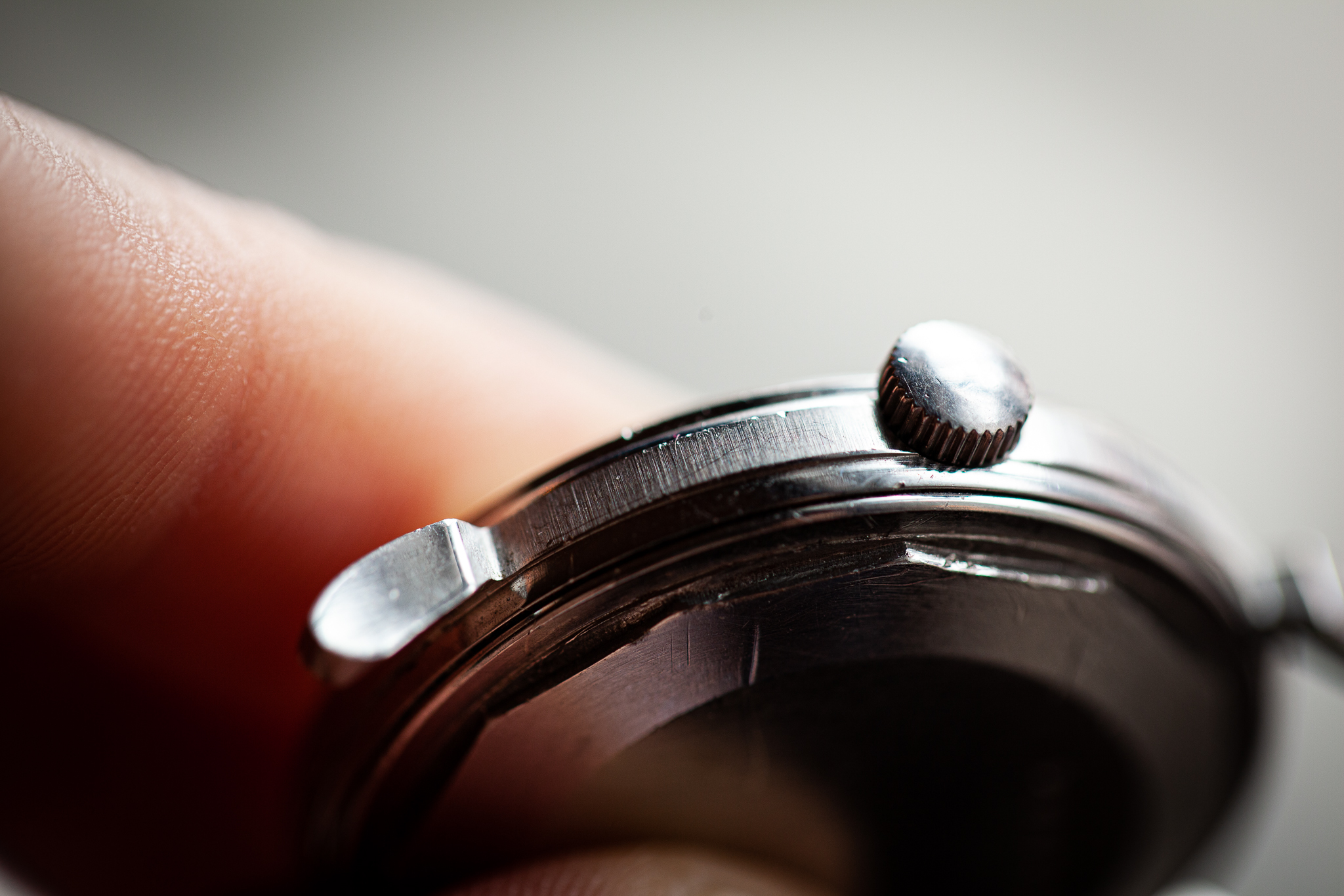 Crown: As far as I know and can tell from similar models, original to the watch. Very satisfying to wind (teeth on the gears feel nice and “chunky”).
