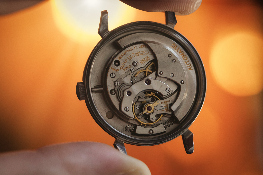 Movement: Cal 476, JLC’s first automatic movement, also frequently referred to as the Cal12A. The movement is really something (hopefully you’ll agree from the pictures below). Côtes de Genève finishing on the movement. You feel a satisfying clunk from the bumper. It was serviced in Fall of 2018 in Ottawa. It’s keeping good vintage time, probably the best among all my vintage watches despite being the oldest.