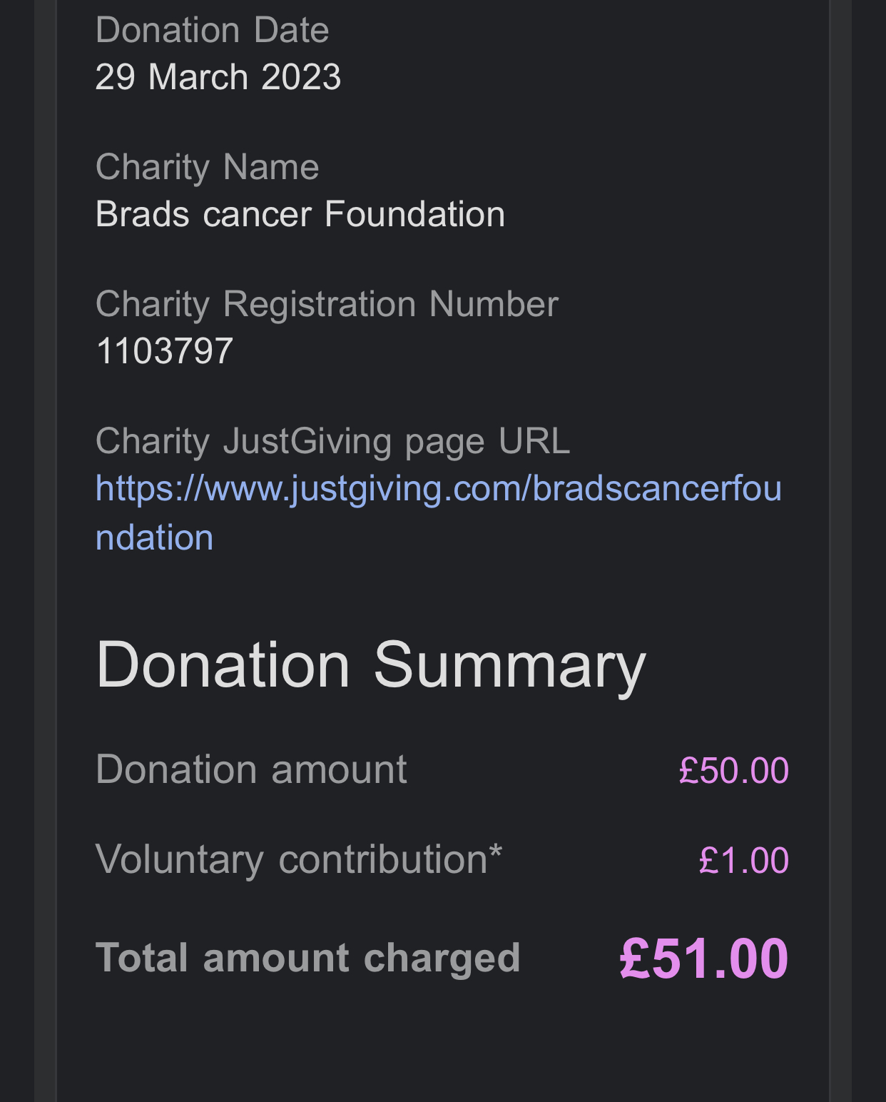 So £50 of the sale price of this watch will be donated to Brads Cancer Foundation - a charity established in September 2003, to raise funds toward providing equipment for the care and lifestyle specifically for teenagers with cancer in the East Midlands, supporting the development of a Teenage Cancer Unit, with the Teenage Cancer Trust, and providing support to teenagers with cancer and their families.