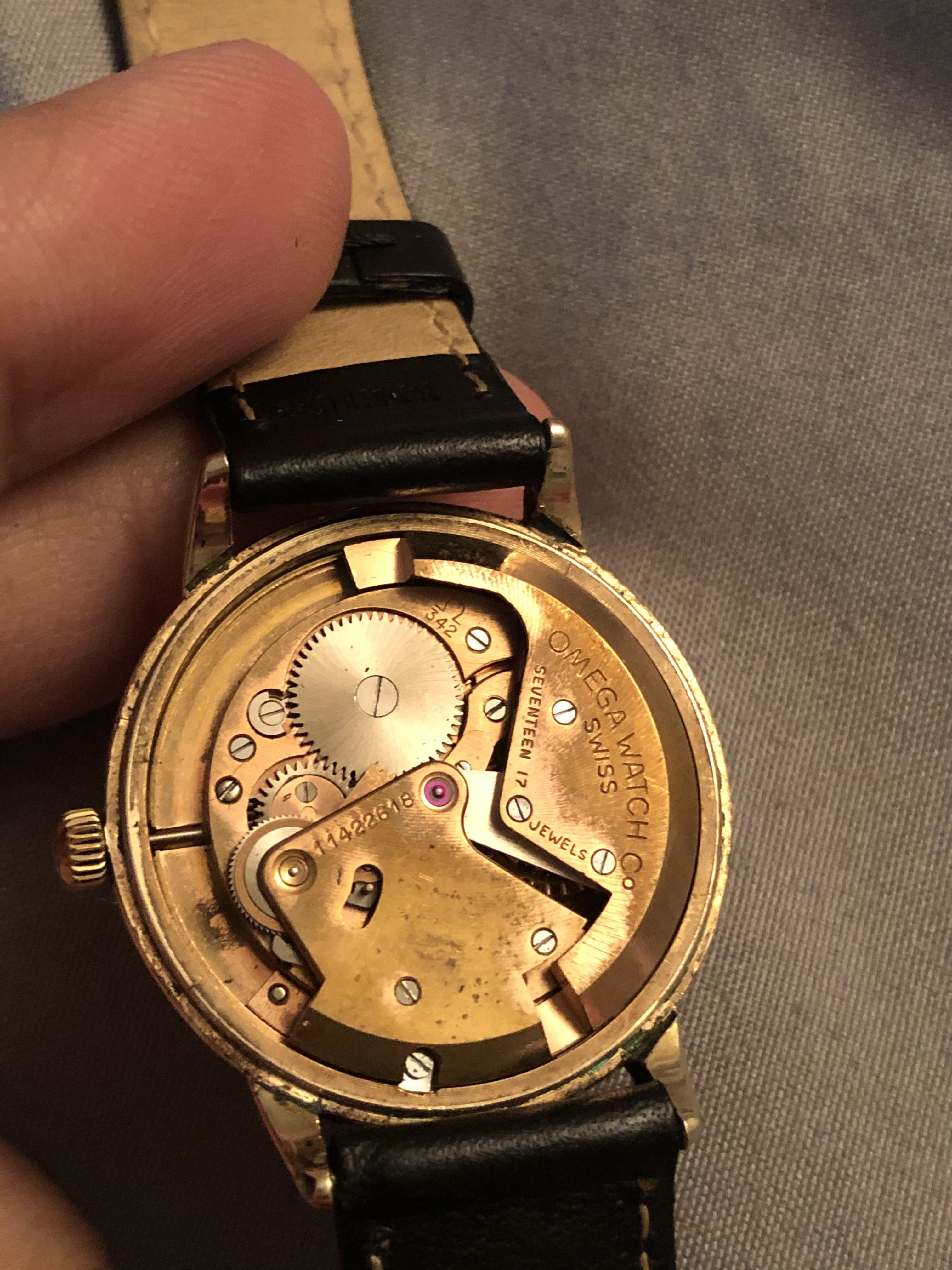 The watch is an Omega vintage 1947 Omega Bumper Watch. The photo of the movement has the Omega 342 movement stamp, which I believe is accurate. It is a 14k gold filled case. The size is 34.7mm. There are no papers or box. And the watch had been serviced recently. The dial has even numbers on it. The listed price is $450.