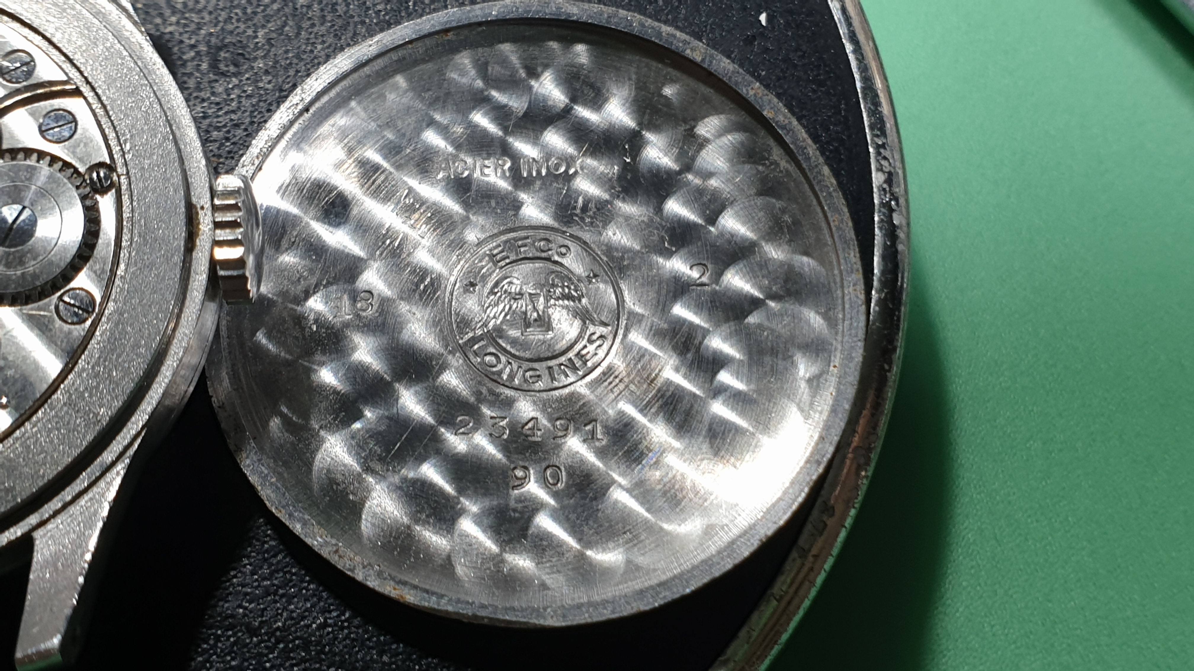 Movement: The Longines 10.68z with gold chatons is in good running condition, and the winding action is very satisfying. Snapback has the EFCO Longines symbol and is marked Acier Inox.