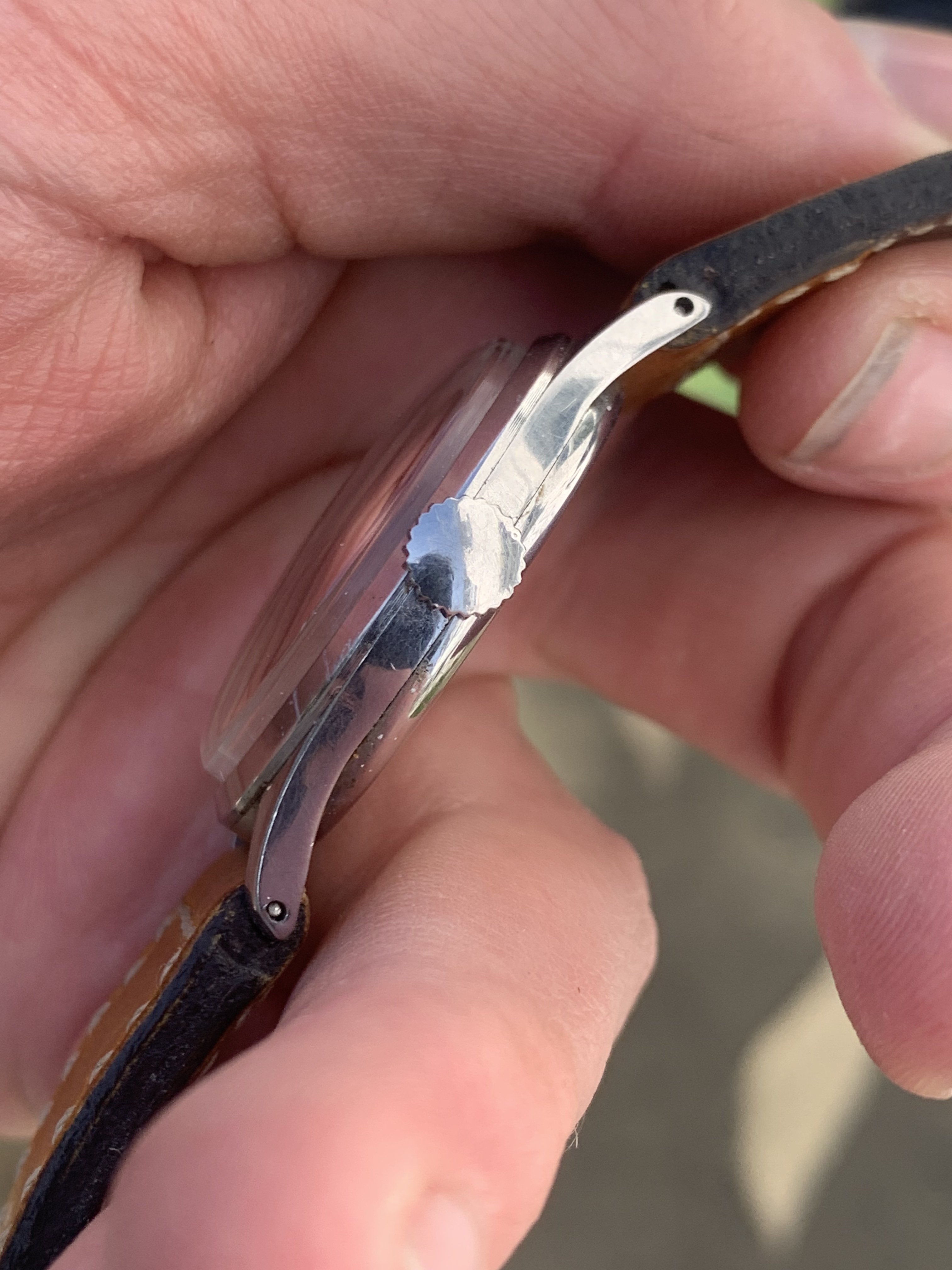 Case: The case measures 33.4mm making this a very wearable sized dress watch. It is a British made Dennison case, give a nice insight into the provenance of this piece. It's in good condition and does not appear to have been polished, retaining its original case shape found in these 1940s 113322 cases.