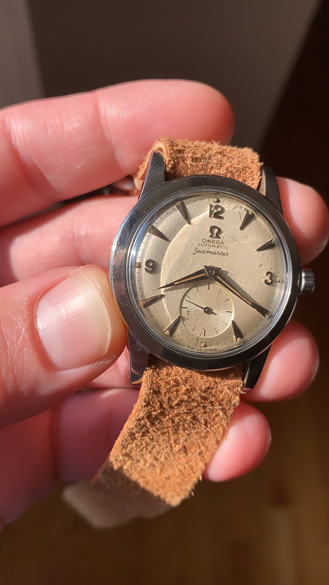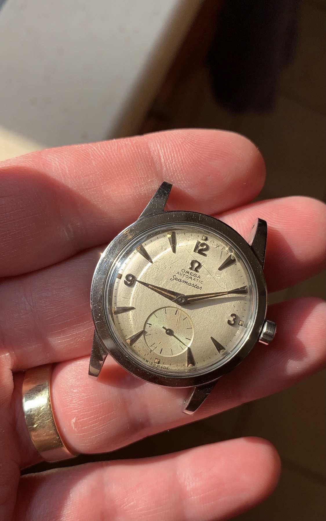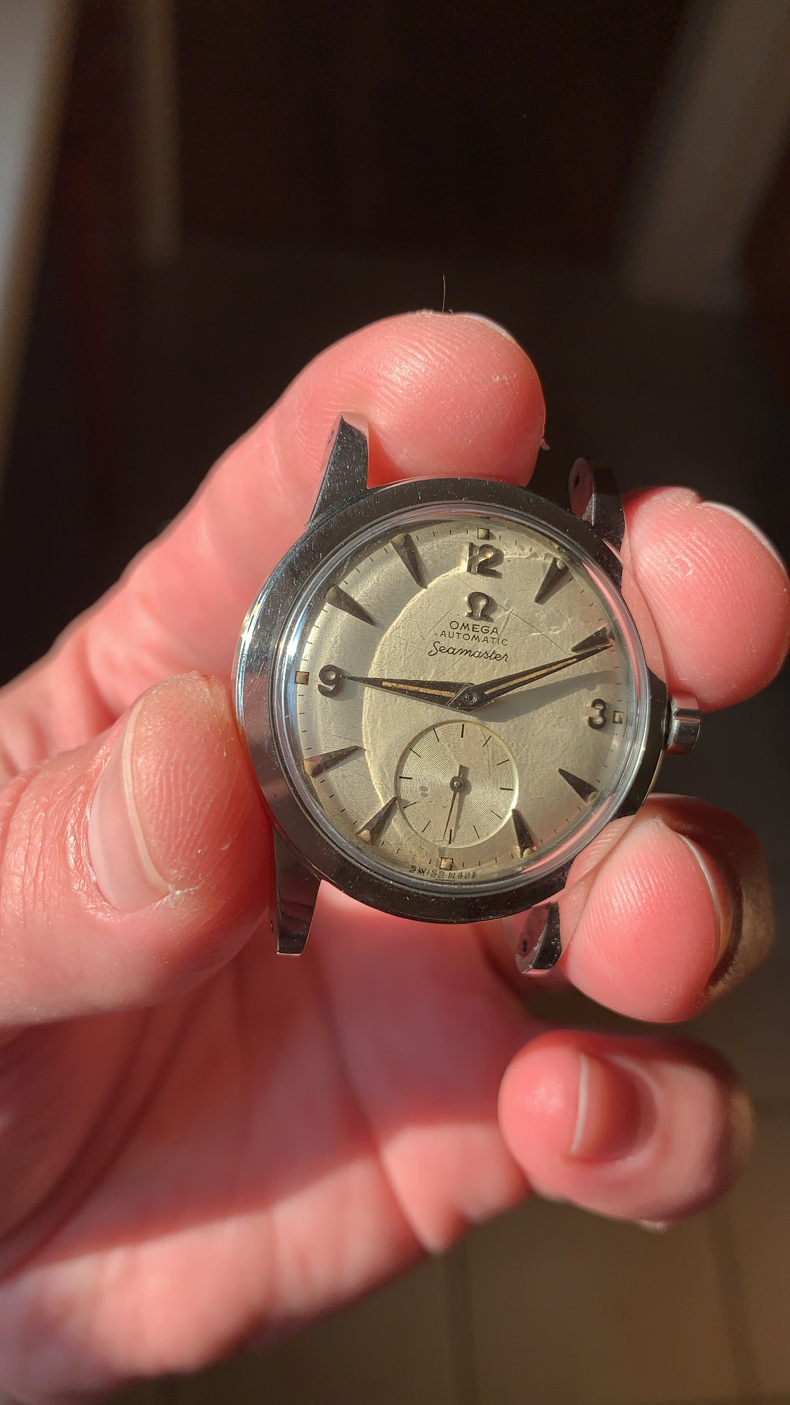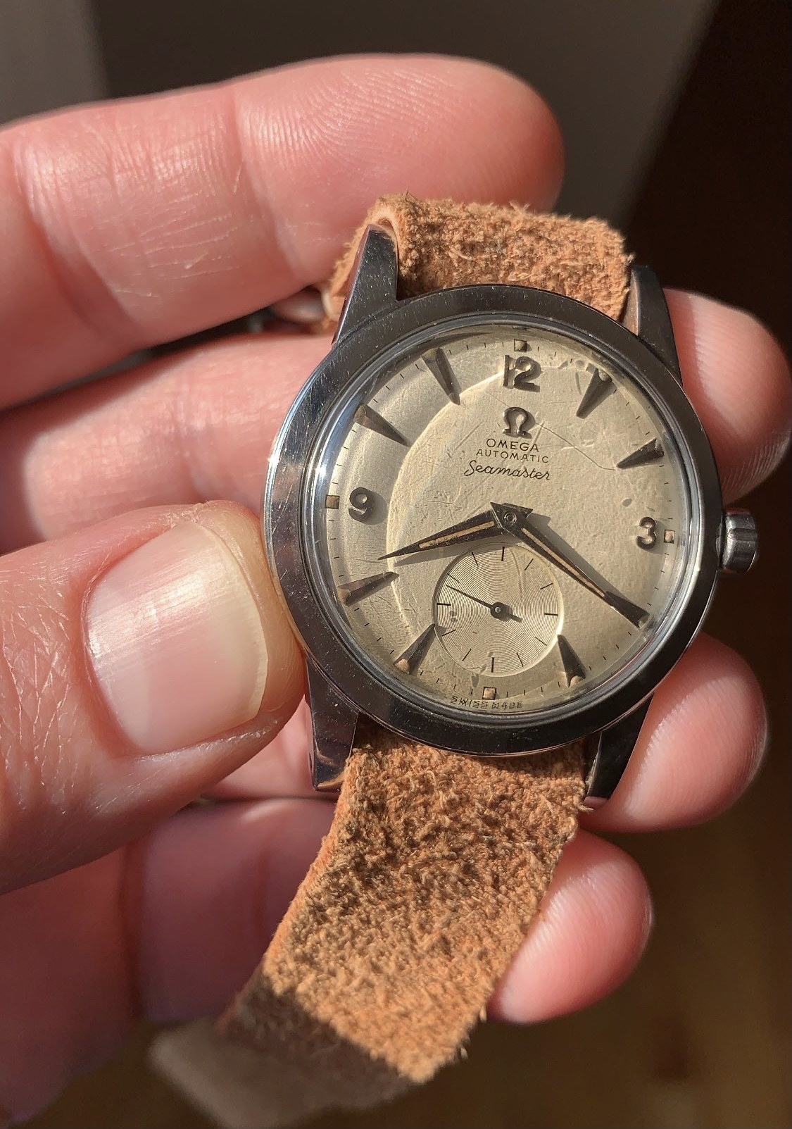 ·JUST SERVICED. Here’s ANOTHER lovely BUMPER auto steel BEEFY lug seamaster with AMAZING hand/dial lume. CLEAN dial. Running perfectly after service (2021).