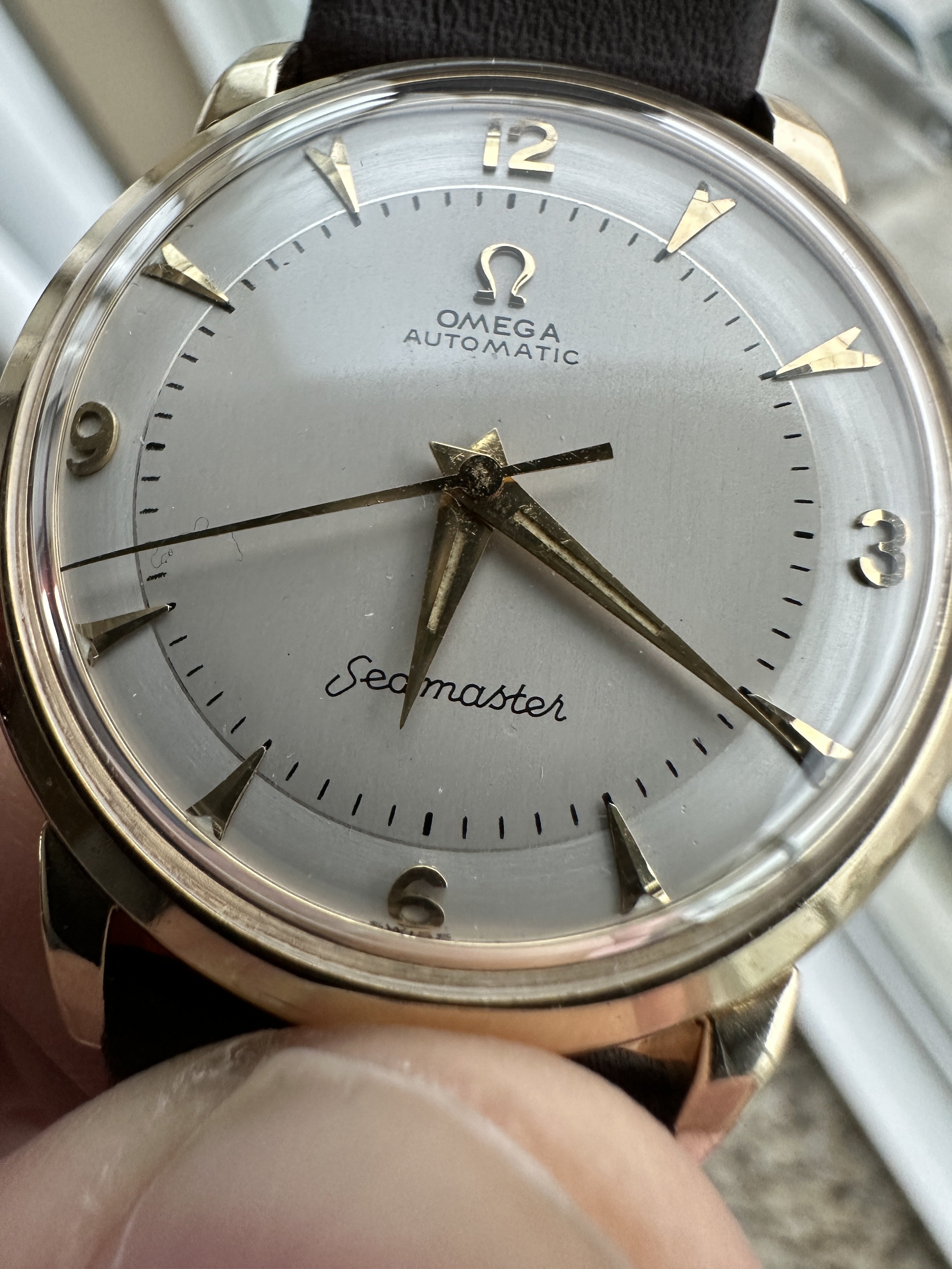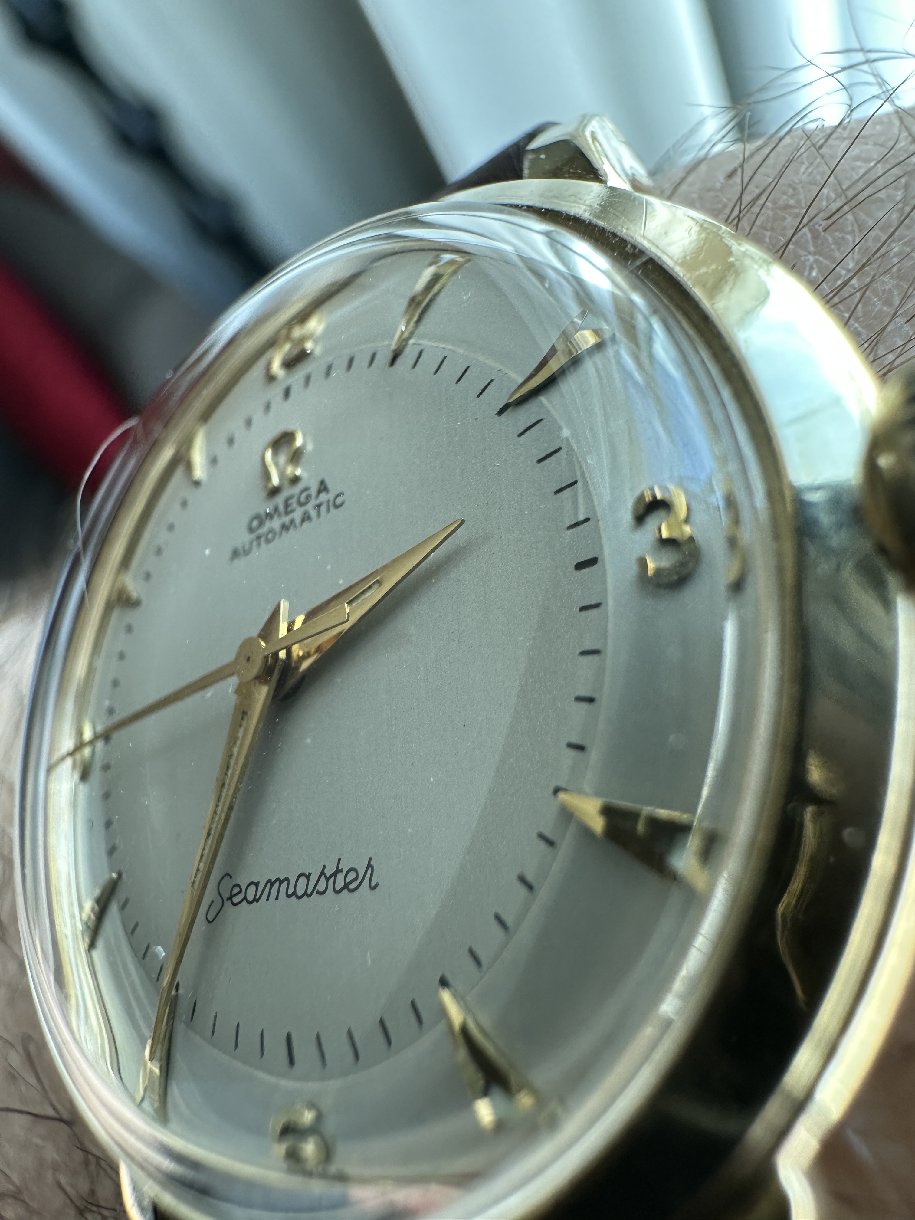 First post! And first time vintage Omega owner. I recently bought a vintage Omega Seamaster from a reputable dealer. Serial number is from 1950. Ref number is G-6525, The thing is...I can't fine another like it anywhere online. So either I have a very unique and rare piece, or something is off. Hoping the experts here have some thoughts. Pics below...