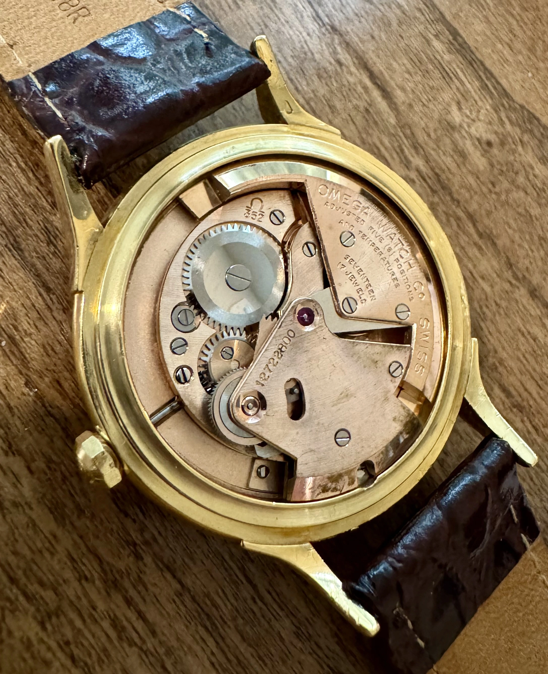 A cal. 352 chronometer rated automatic movement powers the watch. Service history is not known but manual winding is smooth and the watch is keeping time. I have not checked exact time keeping accuracy.