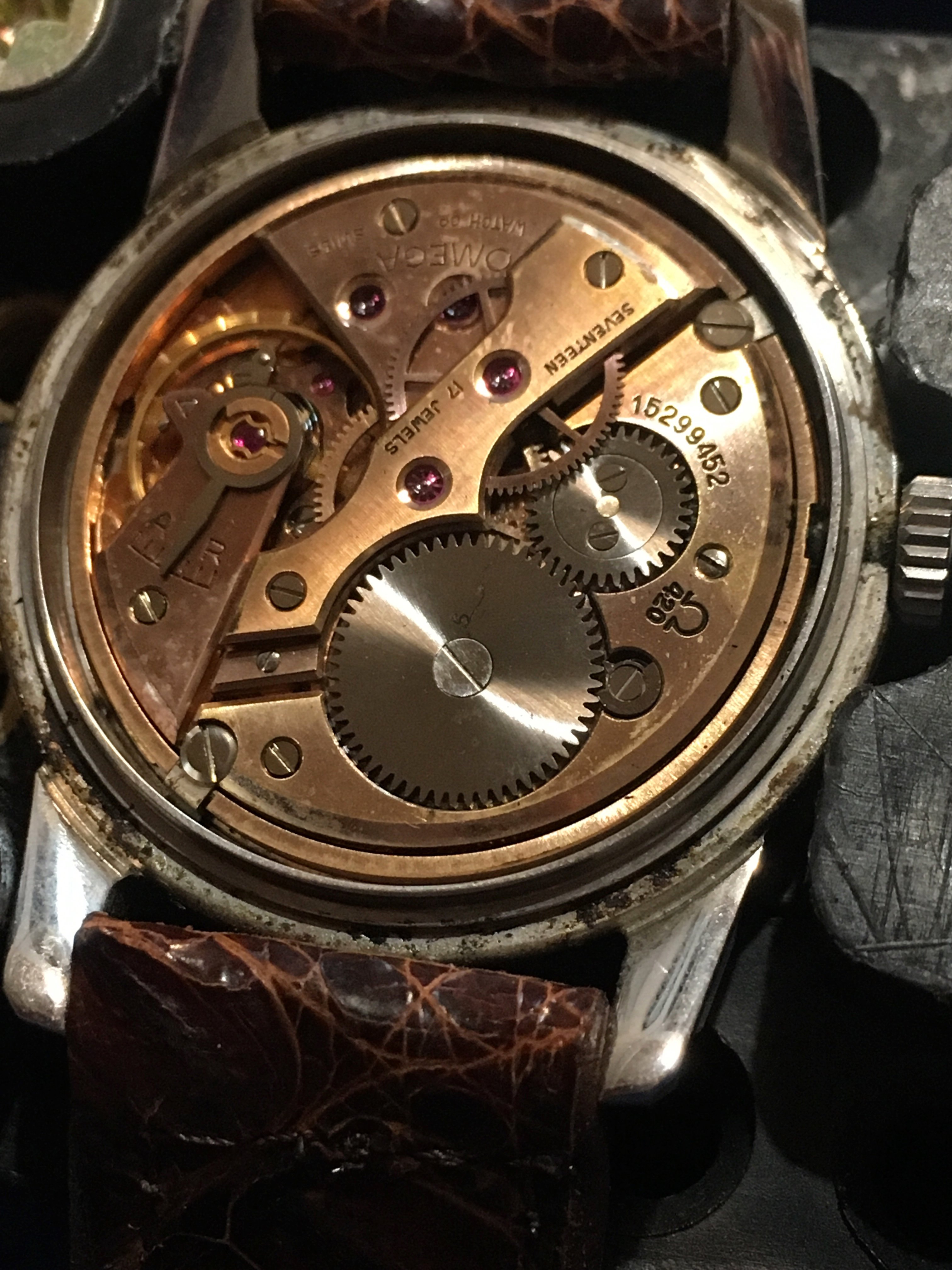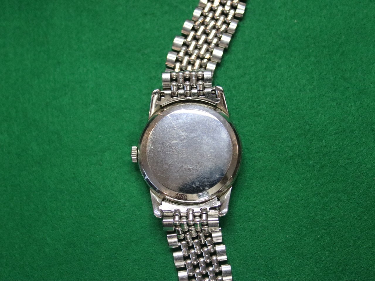 Putting my 1950s 2759-5 2761 back on sale, this time with a 1502 BoR bracelet. I’m a fan of these bracelets to the point, possibly, of overdoing it, but my watches are much less likely to be sweated right off my wrist during the summer than they would be on a leather band. That said, this watch looks really good if not even better on a rustic leather or reptile band. If you prefer a head-only sale, I’m all ears and more than willing to let my BoR bracelet collection continue to grow.