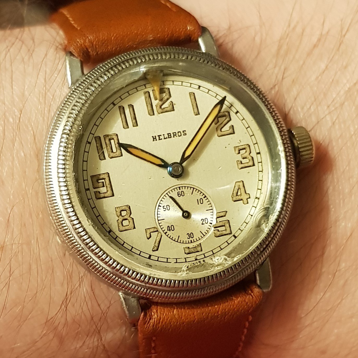 There was one site that showed one of Doc Brown's 50s watches. Notably the Helbros. The guess is the clock tower model watch is an Enicar. The brown strap right watch does not seem to be as well documented. (There may be multiple props used over the three films.)
