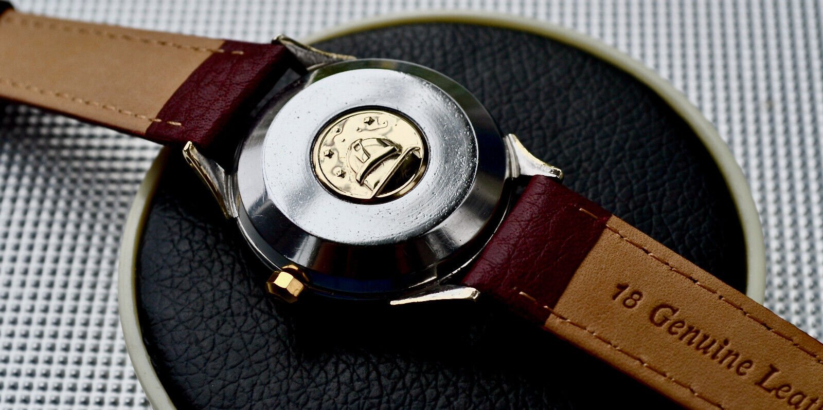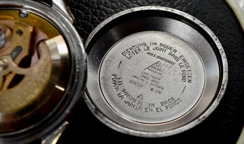 Case: 14K Gold Bezel with Gold capped lugs and stainless steel body - snap down full size case, in good condition, few minor nicks commensurate with age - measures approx 42.15mm lug to lug and 35mm across not including the Omega signed crown - Inside Caseback bears the Omega Watch Co. triangle and name - Acier Inoxydable Fab. Suisse Swiss Made Patent + Applied - 2852 4 SC - Also bears the triangular mark for Centrale Boîtes S.A., Bienne - Case makers to Omega - Outer case carries the Iconic gold Observatory Medallion