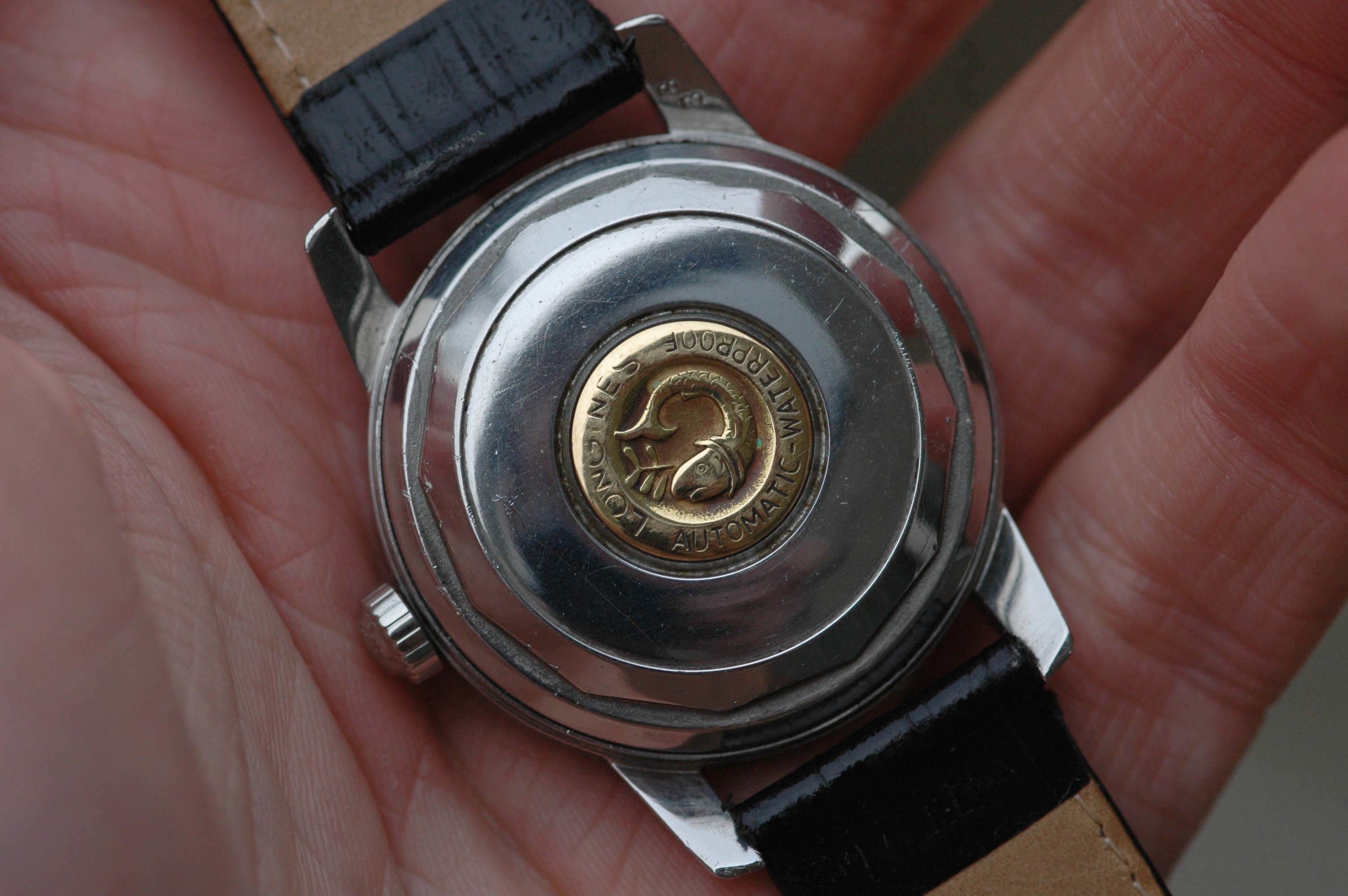 The case is stainless steel and in good shape, with clear bevels. The chunky lugs make for a nice wrist presence and they balance the chunky hour markers well. The lack of a date function means the dial is very symmetric, which I find very appealing. The hour markers are placed on a brushed reflective ring that surrounds the dial and which catches the light wonderfully. The contrasting textures create a great sense of depth. While these watches aren't incredibly rare, it is uncommon to find an example with a dial as well-preserved as this. The inner dial vertical texture is usually lost due to paint reactions.