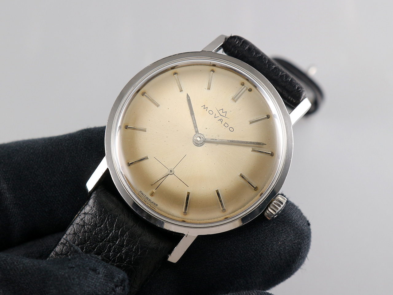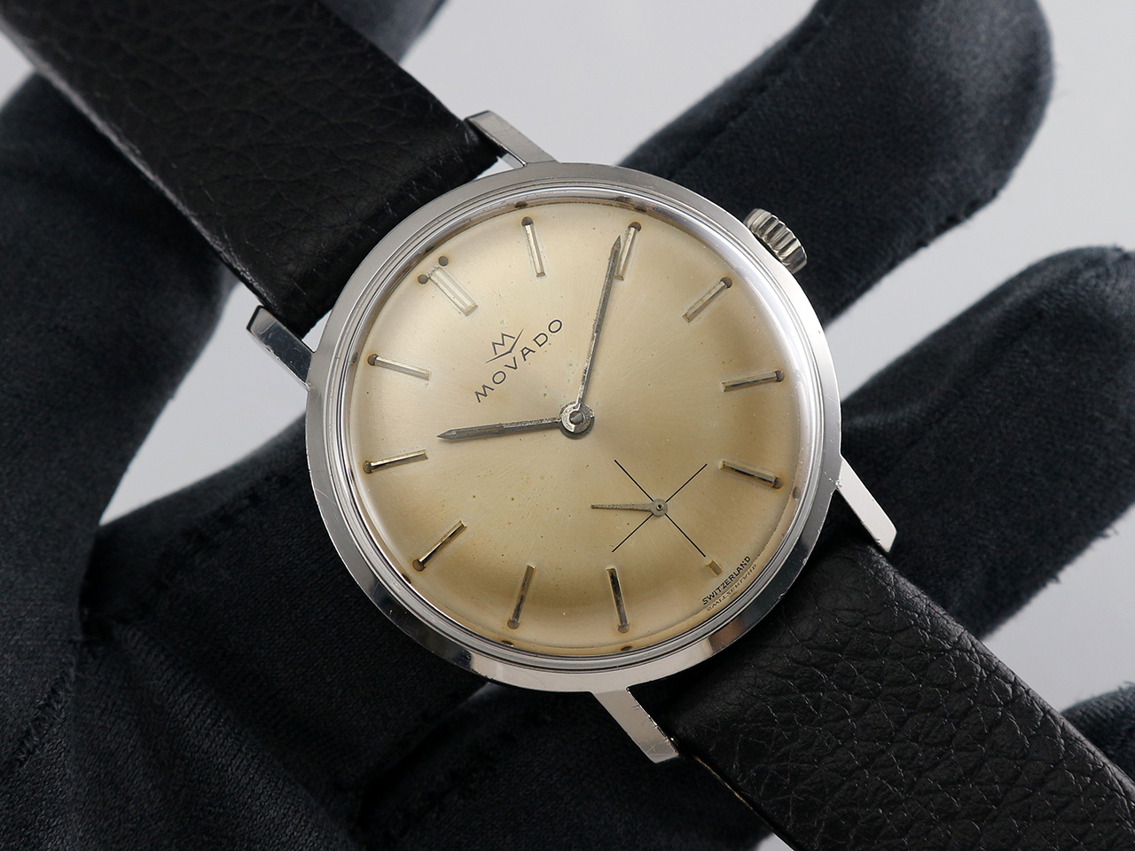 ·Up for sale is a very nice Movado dress watch from the 1950s. The silver sunburst dial acquired beautiful warm patinas. The case is unpolished and in great shape plus the original crown. It is measure 34mm wide without crown and 40mm lug to lug, lug width is 18mm. Inside is the Movado in-house caliber 125, service history unknown but still running strong & keeping good time.