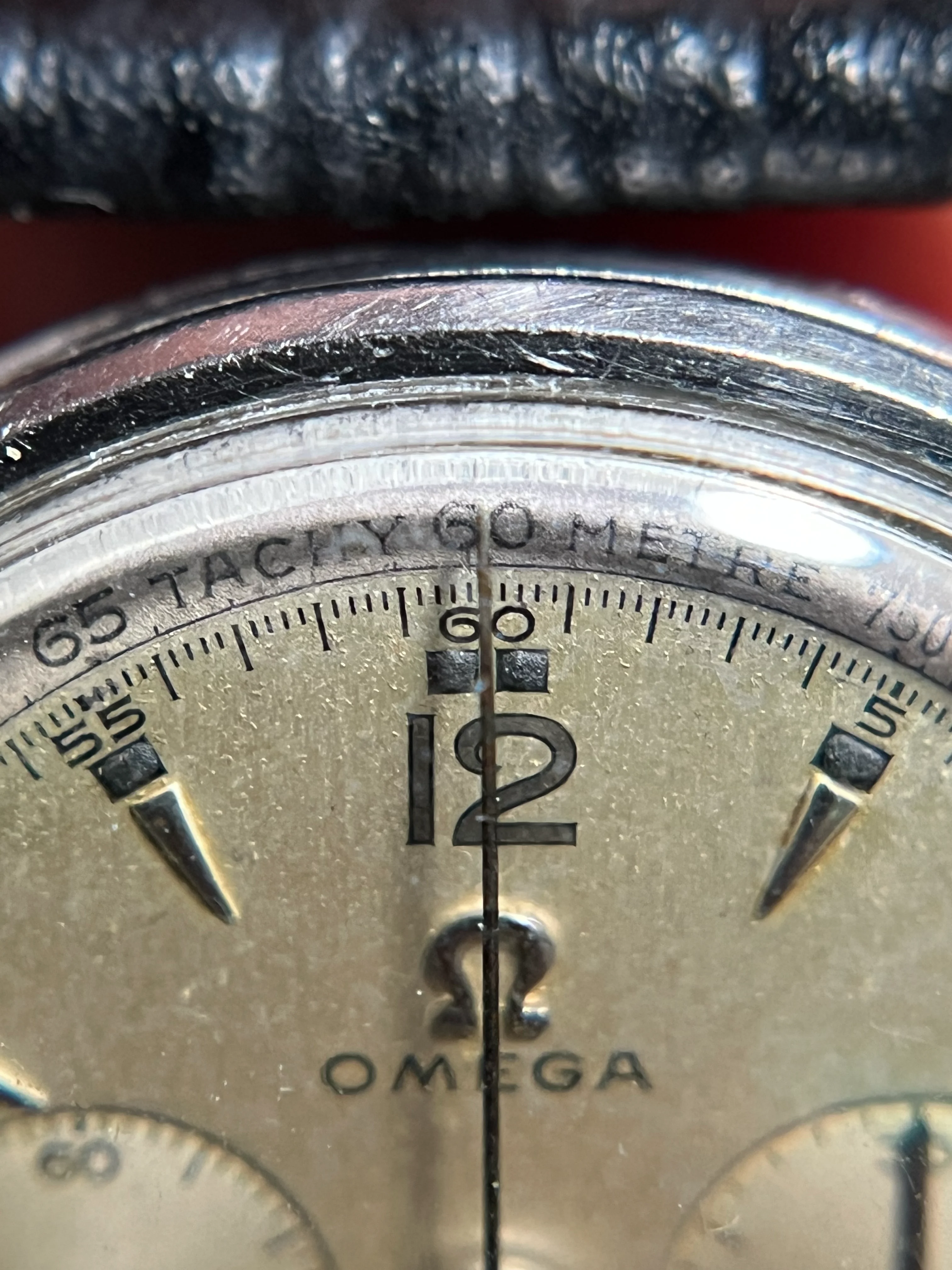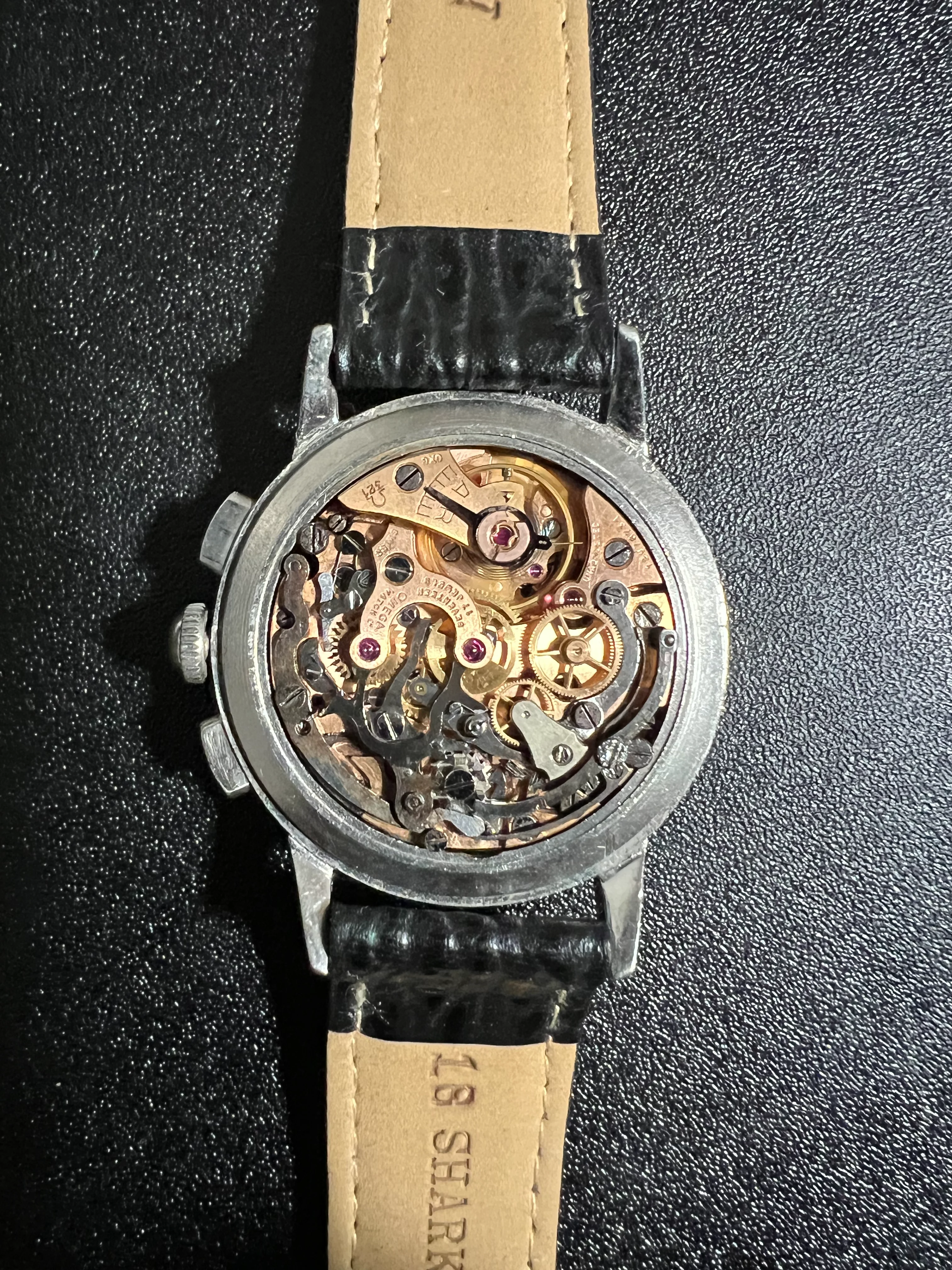 Vintage watches, especially this reference, is not waterproof even if gaskets have been replaced during service. These fine chronographs were never built to modern water resistance standards and should be kept well away from water, humidity, and steam.